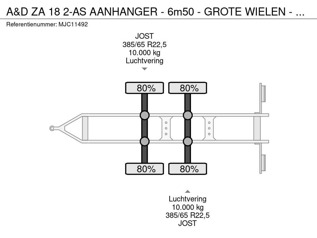 18 2-AS AANHANGER - 6m50 - GROTE WIELEN - BELGISCHE PAPIEREN - LUCHTVERING / AIR SUSPENSION