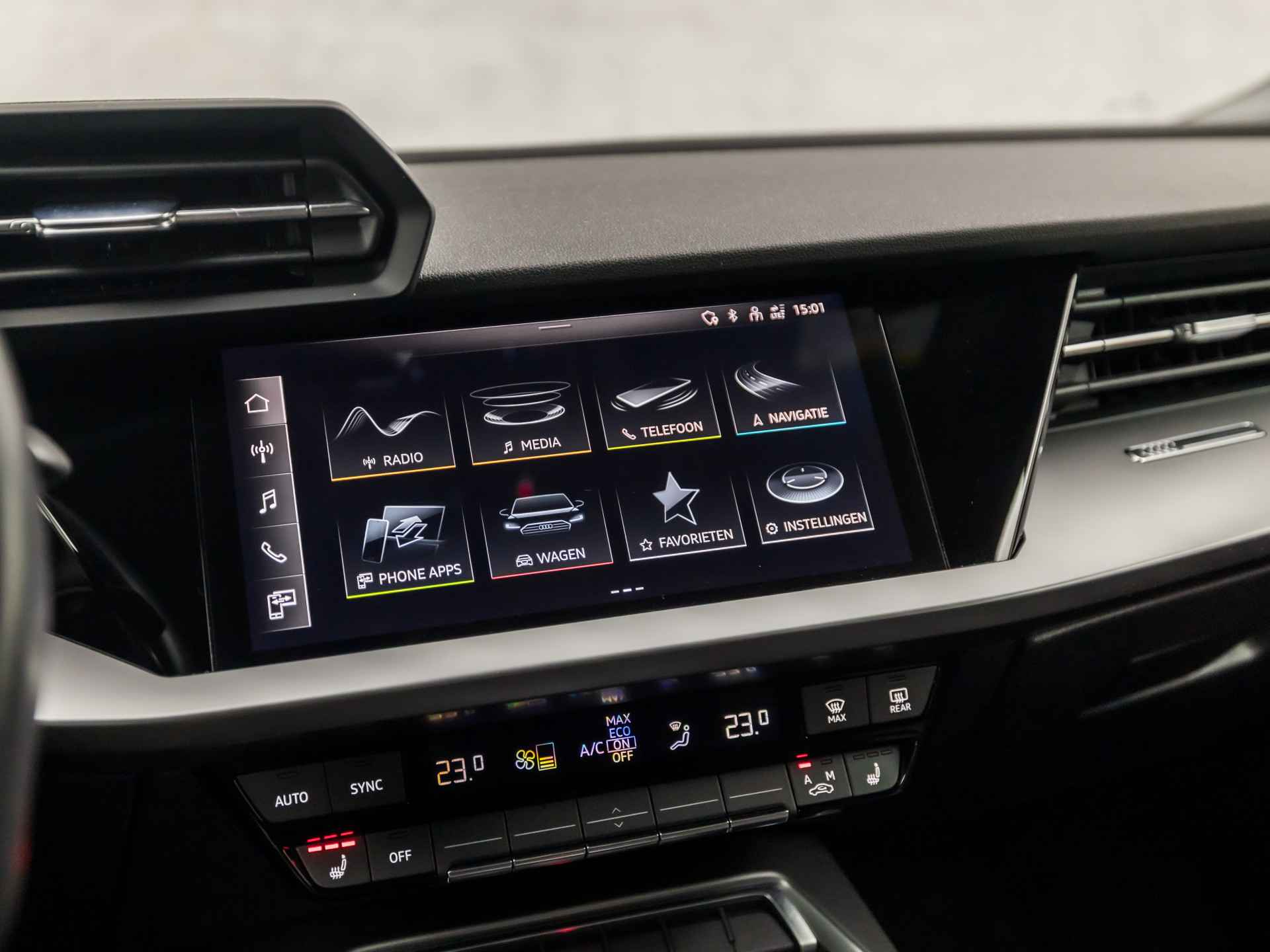 Pas de interface van uw cockpit moeiteloos aan. Het is mogelijk door het digitale dashboard in deze auto. Deze auto gaat met u in gesprek. Hij vertelt u dankzij remote services alles over de status van diverse onderdelen en laat zich desgevraagd ook activeren. Gewoon via uw smartphone. In deze auto beschikt u natuurlijk over een MMI navigatiesysteem. Het audio-installatiesysteem met DAB-radio biedt glasheldere geluidskwaliteit. U bedient dit veilig via het stuurwiel. Het comfort wordt verhoogd door de aanwezige automatische airconditioning. Soms heeft u meer parkeerruimte dan u denkt. Maar soms ook niet. De parkeersensoren vertellen precies hoeveel. De uitrusting van deze Audi is met WIFI-hotspot, sportstuur met schakelpaddels, regensensor, cruise control, keyless entry en isofix-aansluiting behoorlijk compleet.