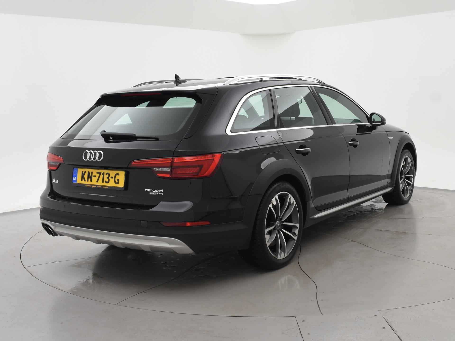 Bijzondere auto: A4 Allroad Quattro 3.0 TDI V6 272 PK Automaat met een RDW nieuwprijs van 100.002 euro en dat is wel te zien aan de uitgebreide optielijst: Bang & Olufsen premium sound, Panorama schuif/kanteldak, Head-up display, Sfeerverlichting interieur, Zwart lederen sportstoelen, 360 graden surroud view camerasysteem, Elektrisch wegklapbare trekhaak met 1900 kg trekgewicht op kenteken, Virtual cockpit digitale cockpit met verschillende tellerweergave mogelijkheden en navigatie kaartweergave modus, Apple Carplay / Android Auto appstreaming Google Maps, Flitsmeister, Whatsapp etc, Adaptive cruise control met automatisch afstand houden en lijnassistentie, 18 inch lichtmetalen velgen, Stoelverwarming, Keyless entry en keyless-drive, Elektrische achterklep, Full LED koplampen, LED achterlichten, Elektronisch kinderslot, Elektrisch inklapbare buitenspiegels, Audi Drive Select regelbare rij-eigenschappen, Thuiskomer reservewiel, 3-zone climate control met aparte bediening achterin, DAB+ Digitale radio, Draadloze telefoonlader. Exterieurkleur Mythoszwart metallic. Iedere werkdag geopend van 08.00 tot 20.00 uur en zaterdag van 09.00 tot 17.00 uur. De door ons genoemde communicatieadviesprijzen zijn inclusief onvermijdbare kosten benodigd voor levering van de auto. Optionele pakketten en-/of uitrusting zijn altijd een keuze van de consument en worden tegen meerprijs geleverd. Voor meer foto's van dit voertuig bezoekt u onze website www.hazet.nl. Inruil- en financiering van uw auto is mogelijk. Tevens financial lease beschikbaar met zeer gunstige tarieven en acceptatievoorwaarden, ook voor ZZP’ers. Ons adres: Transitoweg 2, 4051 CA, Ochten. Bellen of Whatsapp: +31344242010.