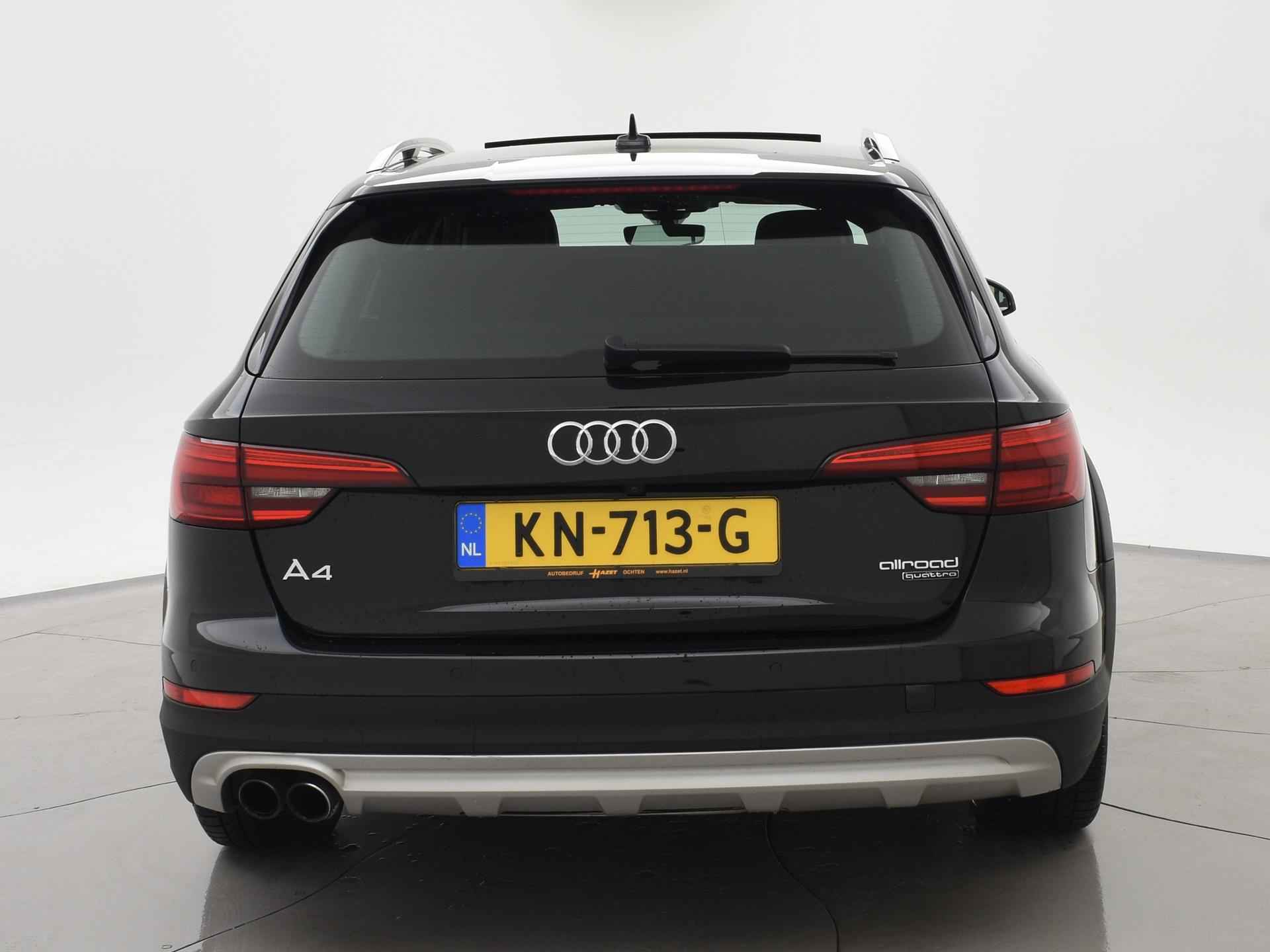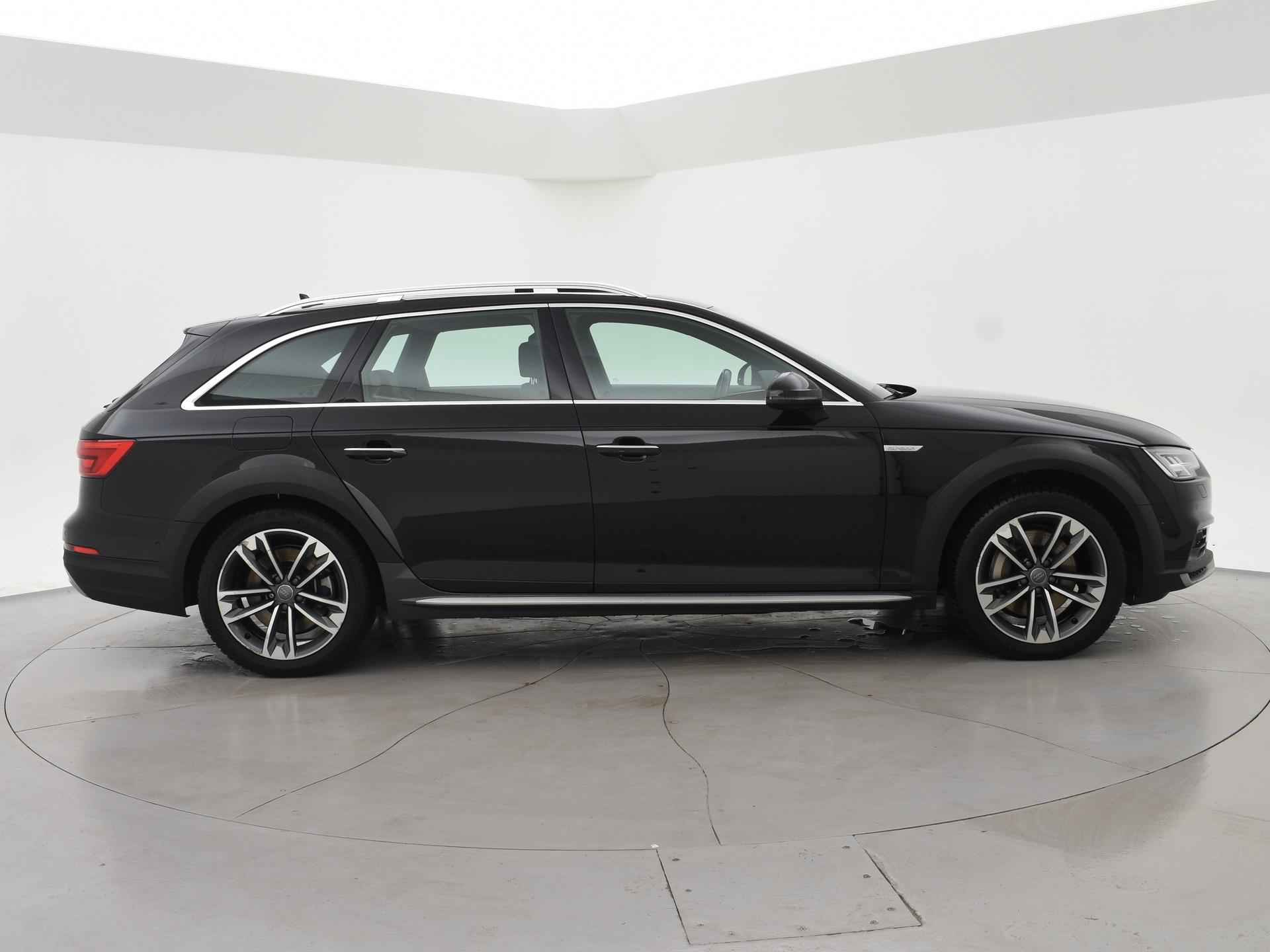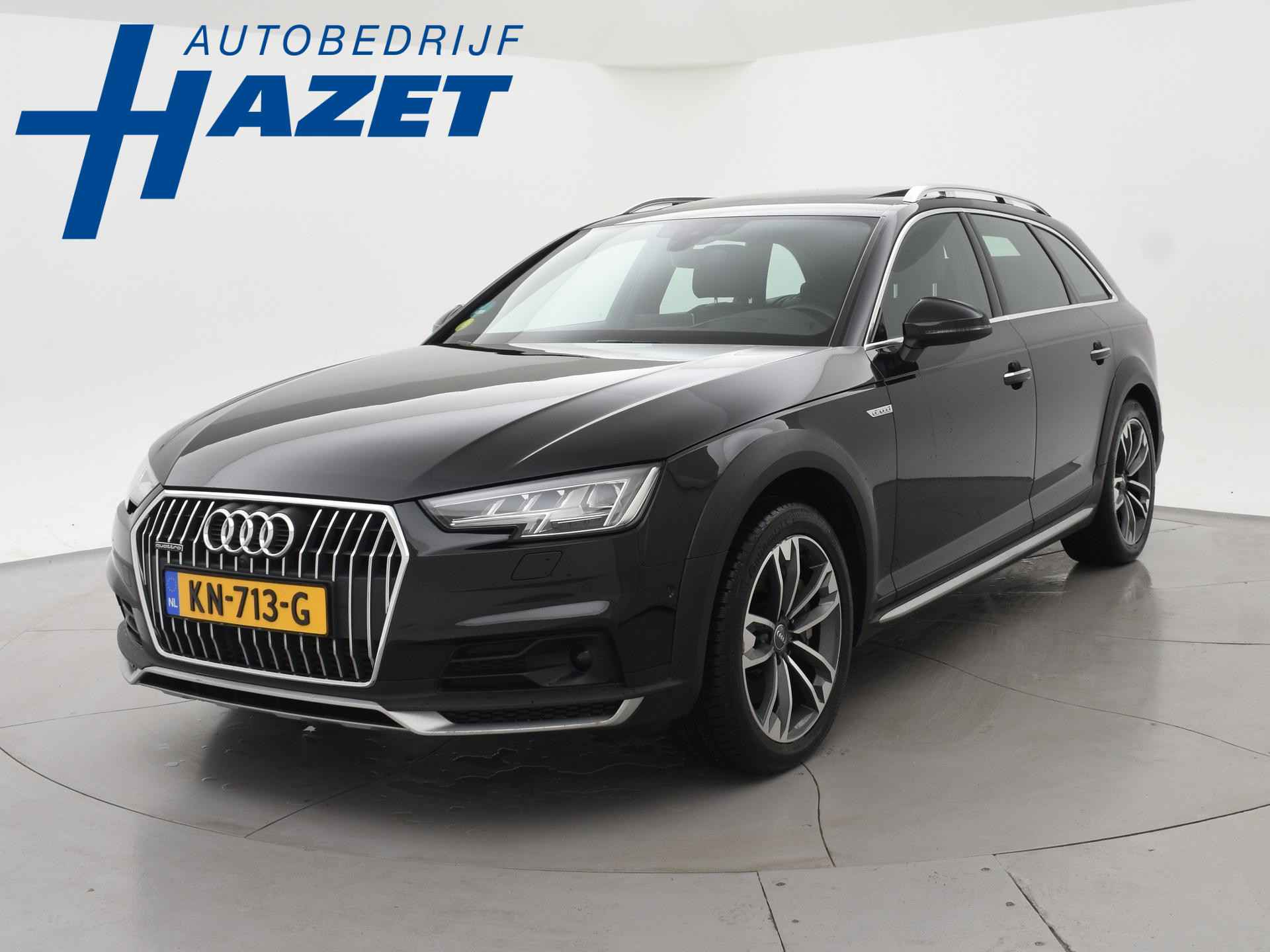 Bijzondere auto: A4 Allroad Quattro 3.0 TDI V6 272 PK Automaat met een RDW nieuwprijs van 100.002 euro en dat is wel te zien aan de uitgebreide optielijst: Bang & Olufsen premium sound, Panorama schuif/kanteldak, Head-up display, Sfeerverlichting interieur, Zwart lederen sportstoelen, 360 graden surroud view camerasysteem, Elektrisch wegklapbare trekhaak met 1900 kg trekgewicht op kenteken, Virtual cockpit digitale cockpit met verschillende tellerweergave mogelijkheden en navigatie kaartweergave modus, Apple Carplay / Android Auto appstreaming Google Maps, Flitsmeister, Whatsapp etc, Adaptive cruise control met automatisch afstand houden en lijnassistentie, 18 inch lichtmetalen velgen, Stoelverwarming, Keyless entry en keyless-drive, Elektrische achterklep, Full LED koplampen, LED achterlichten, Elektronisch kinderslot, Elektrisch inklapbare buitenspiegels, Audi Drive Select regelbare rij-eigenschappen, Thuiskomer reservewiel, 3-zone climate control met aparte bediening achterin, DAB+ Digitale radio, Draadloze telefoonlader. Exterieurkleur Mythoszwart metallic.
