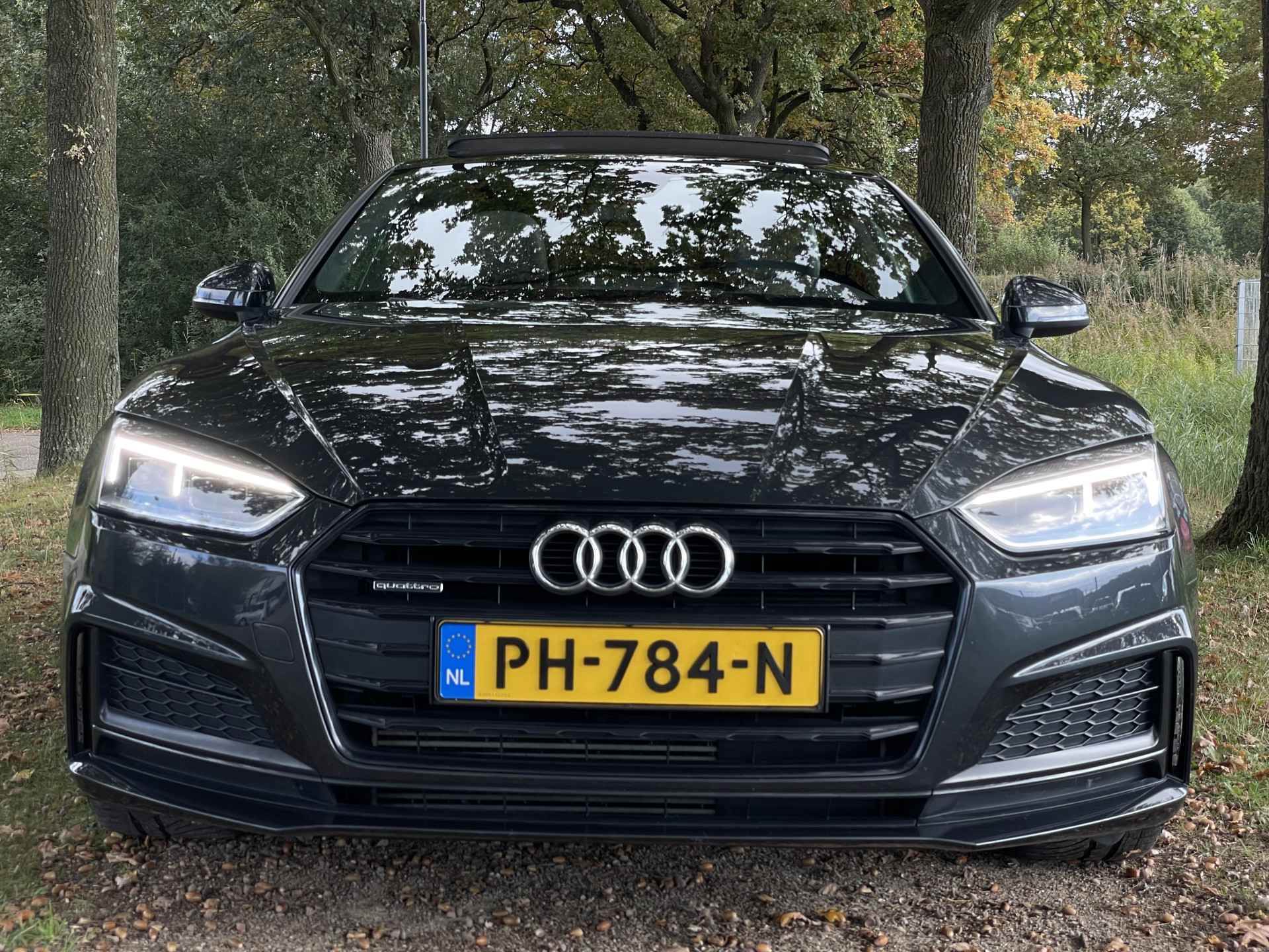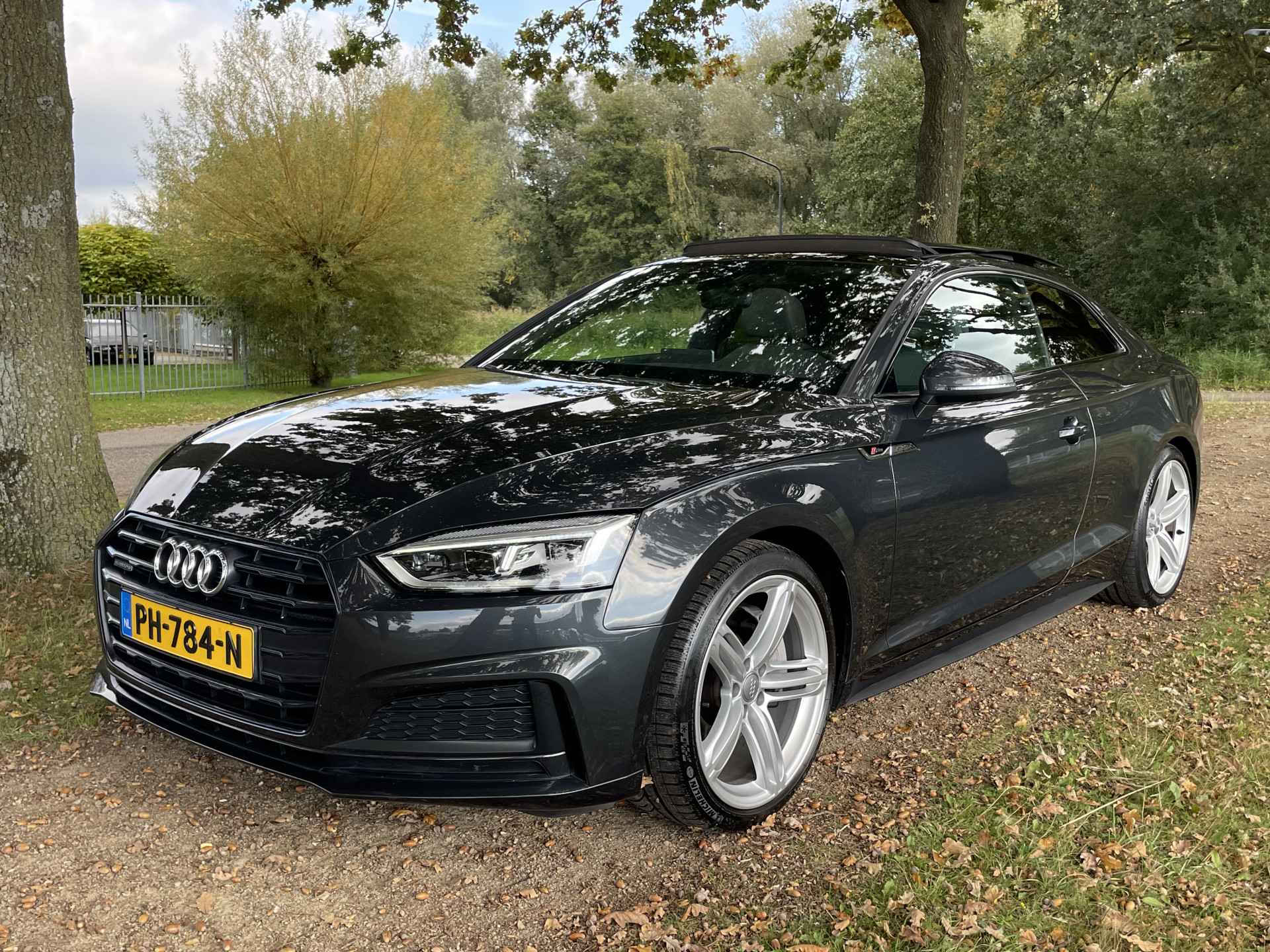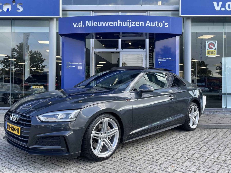 De Audi A5 Coupé is gebouwd met hoogwaardige techniek en maakt het rijden van lange ritten, maar ook korte stukjes, tot een feestje. De S-Line styling geeft dit model een elegante en opvallende uitstraling. De krachtige benzinemotor staat garant voor uitstekende prestaties. Uitstekende zitsteun en een strakke look? Daar zorgen de sportstoelen voor! Dankzij het elektrisch bediende glazen panoramadak lijkt het of u altijd met open dak rijdt. Natuurlijk behoren 19 inch lichtmetalen velgen, LED koplampen, sportonderstel, halflederen bekleding, warmtewerend glas en in delen neerklapbare achterbank ook tot de uitrusting van deze complete auto.