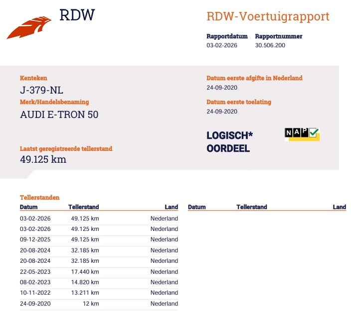 Deze Audi e-tron heeft 12 maanden BOVAG garantie.