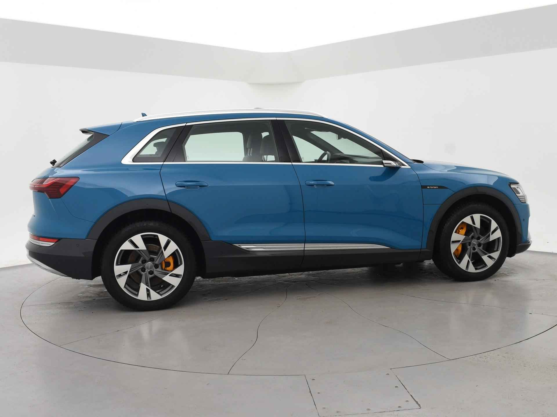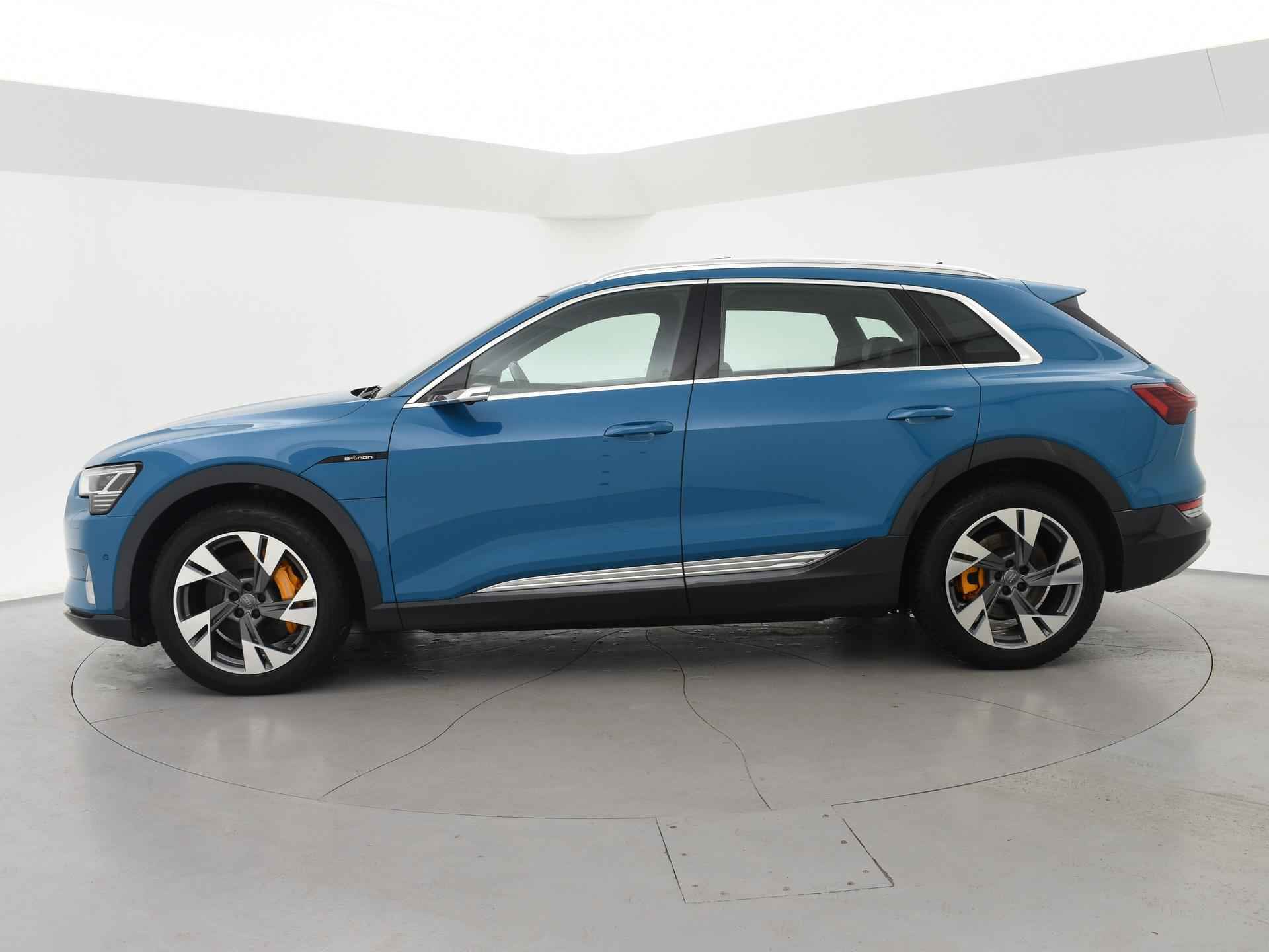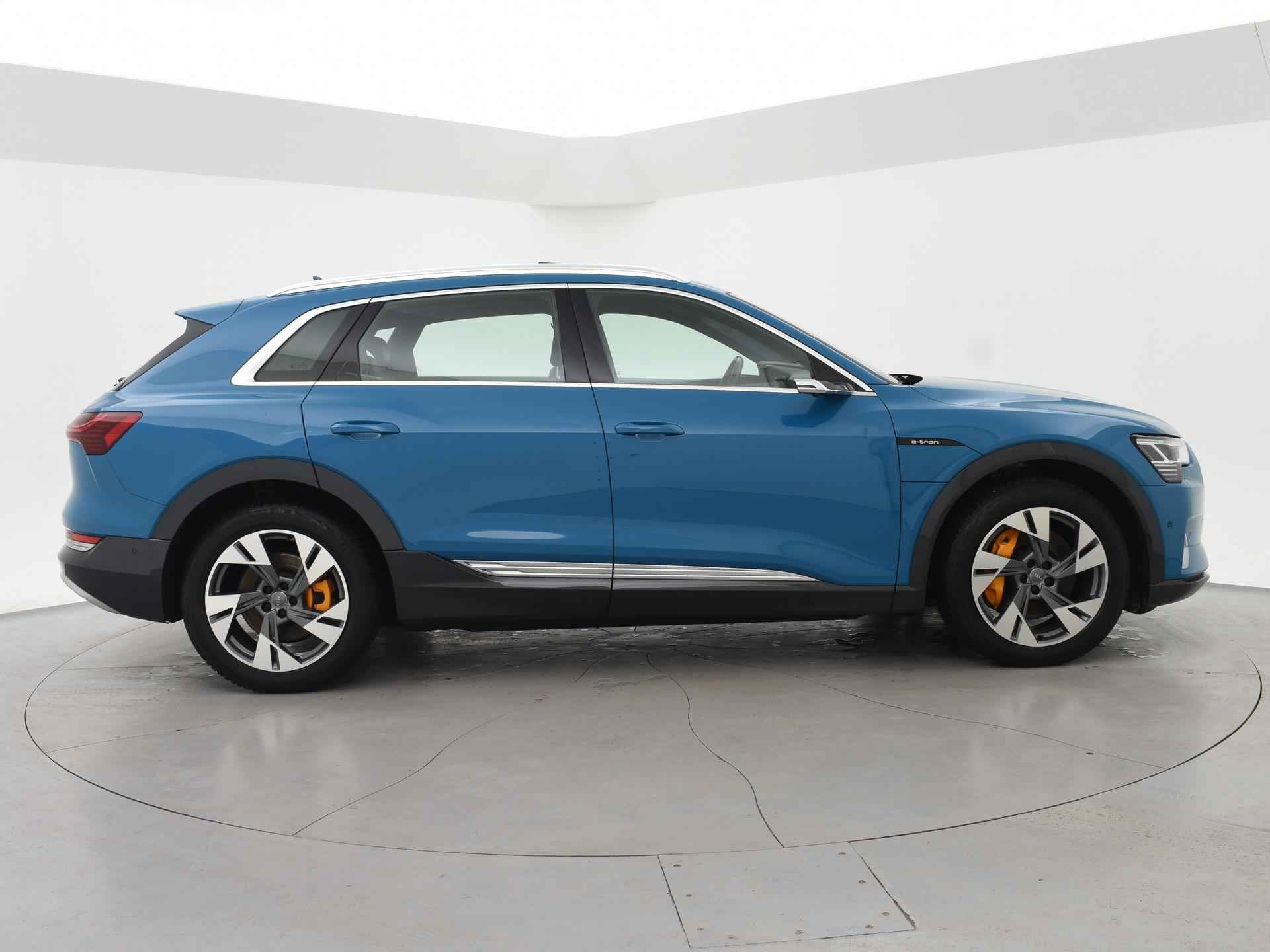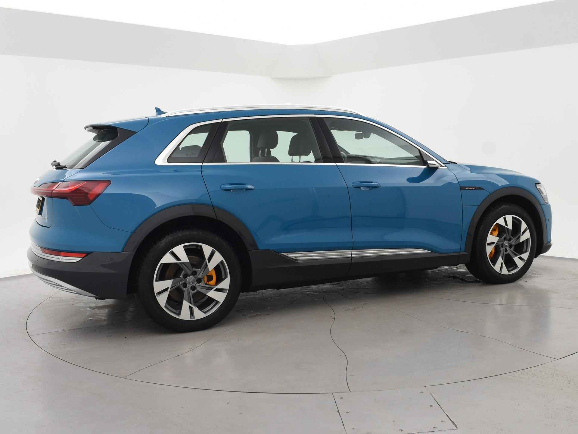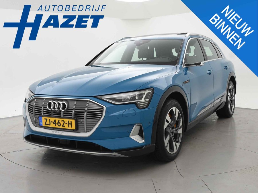 Edition One uitvoering - de introductie uitvoering van de E-Tron met zeer veel extra's en die het meest de introductiekleur Antiguablauw metallic uitgegeven is met oranje remklauwen origineel vanaf fabriek. E-Tron 55 408 PK Quattro, BTW verrekenbaar, prijs is inclusief BTW. Zwart volledig leder sportinterieur met stoelverwarming, 4-Corner Luchtvering met regelbare rijhoogte, Sfeerverlichting interieur met verschillende kleuren, Bang & Olufson premium sound, Panorama schuif/kanteldak, 360 graden surround view camerasysteem, Navigatie, Adaptive cruise control, Cameraspiegels, Parkeersensoren voor en achter, Elektrische stoelverstelling, Zwarte hemelbekleding, Keyless-entry en keyless-drive, Elektrische achterklep, Full LED koplampen, LED achterlichten, Chromen raamlijsten en dakrailing, Apple Carplay / Android Auto, 4-zone climate control, Elektronisch kinderslot. Bijzonderheden: Deze auto kan wel gewoon aan de laadpaal laden, maar niet aan de snelladers zoals Fastned. Dit komt door een isolatiestoring die het snelladen beveiligd. De oplossing hiervoor is ons niet bekend, wij verkopen de auto in de huidige staat.
