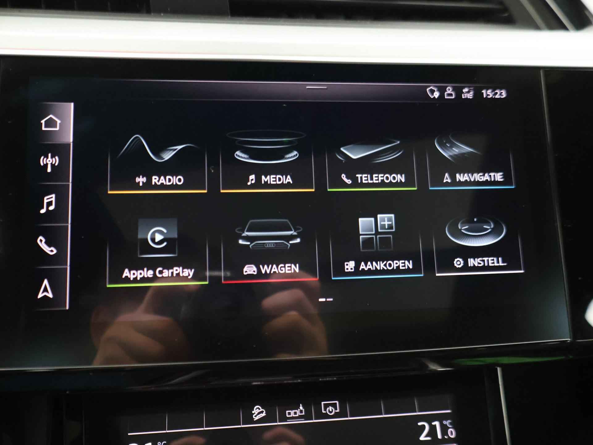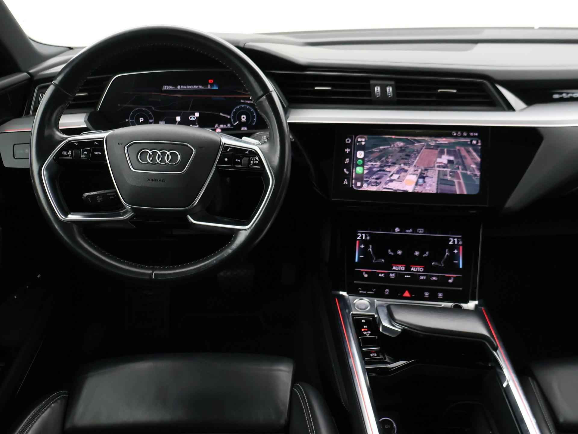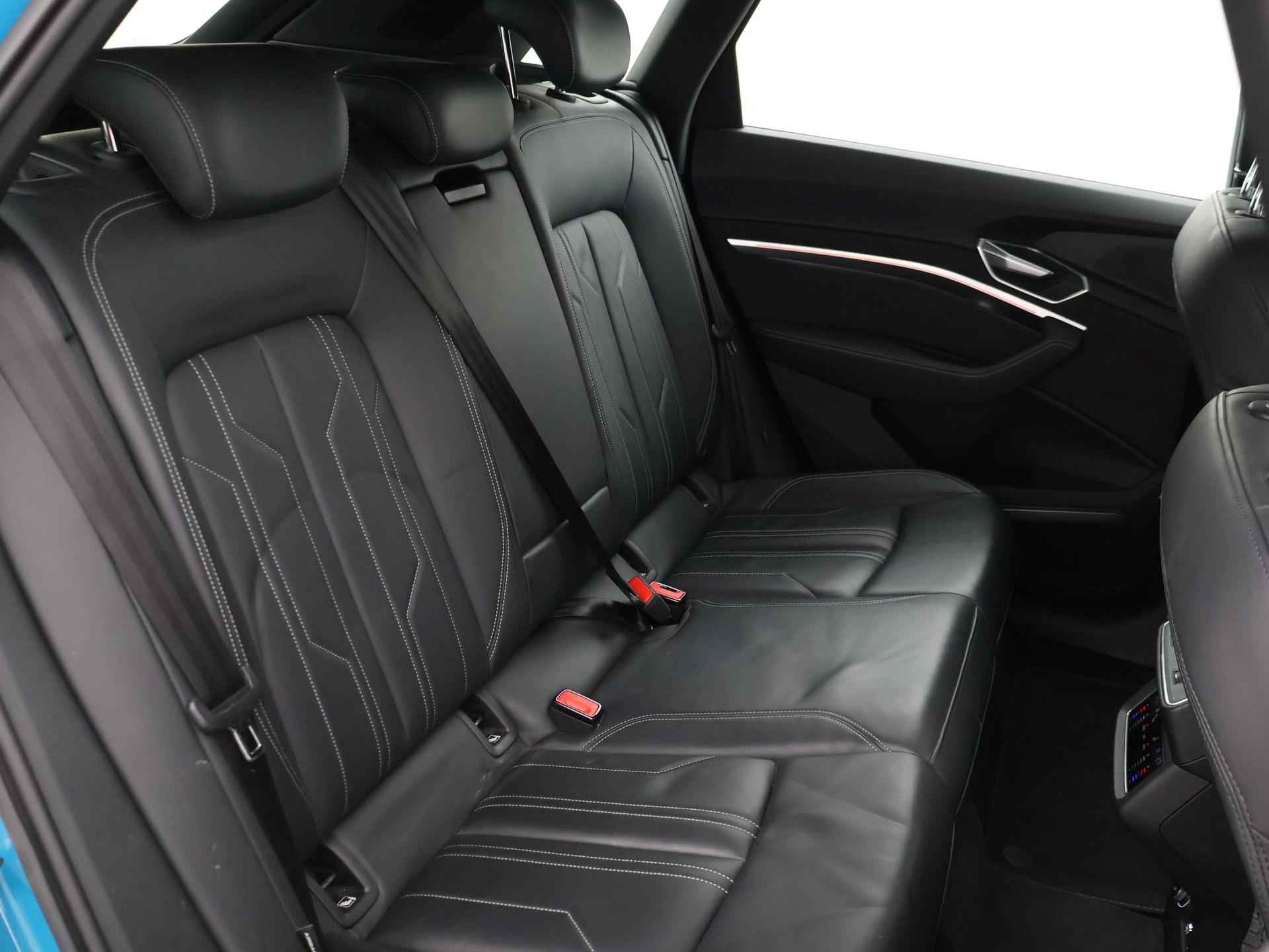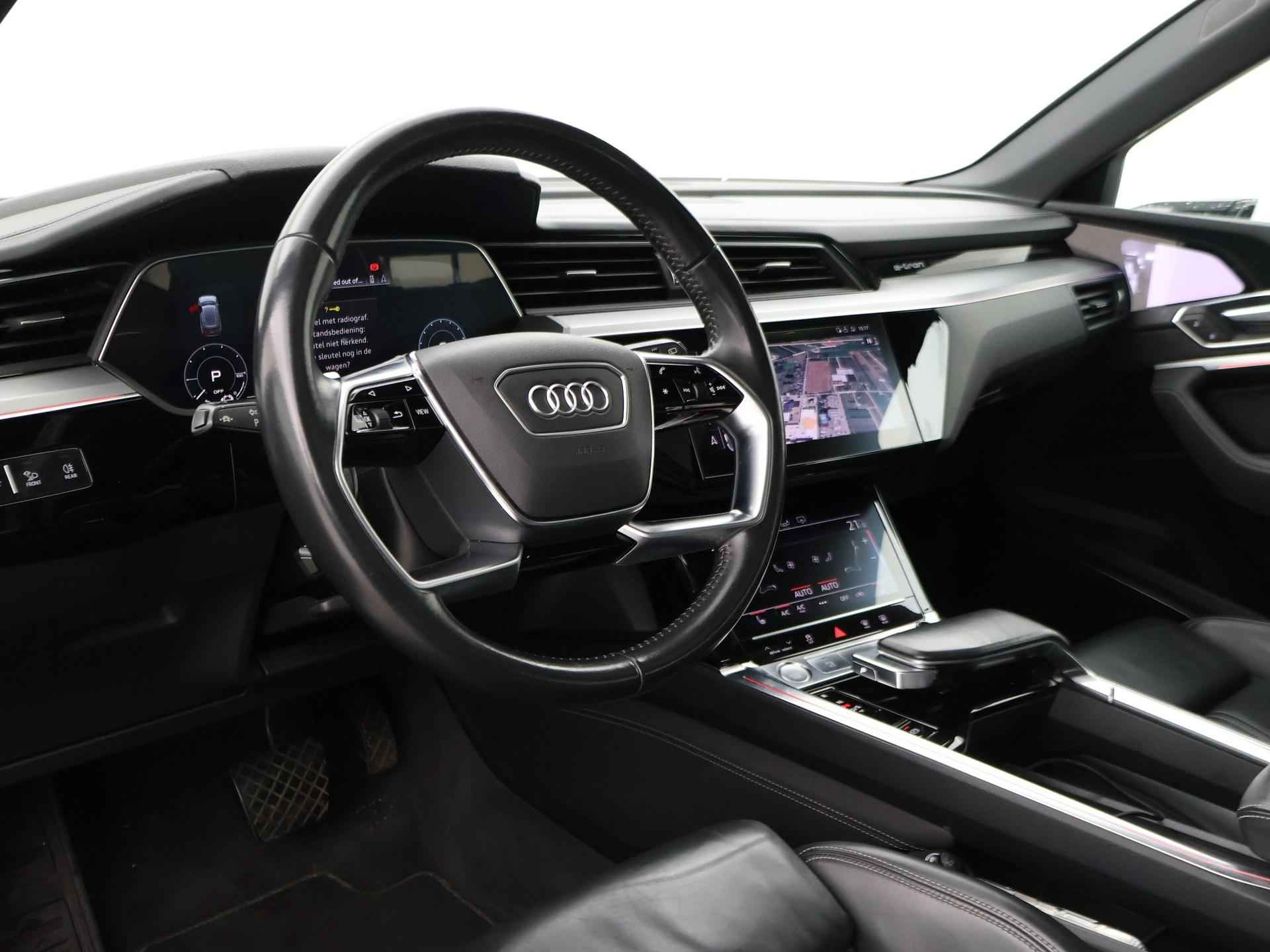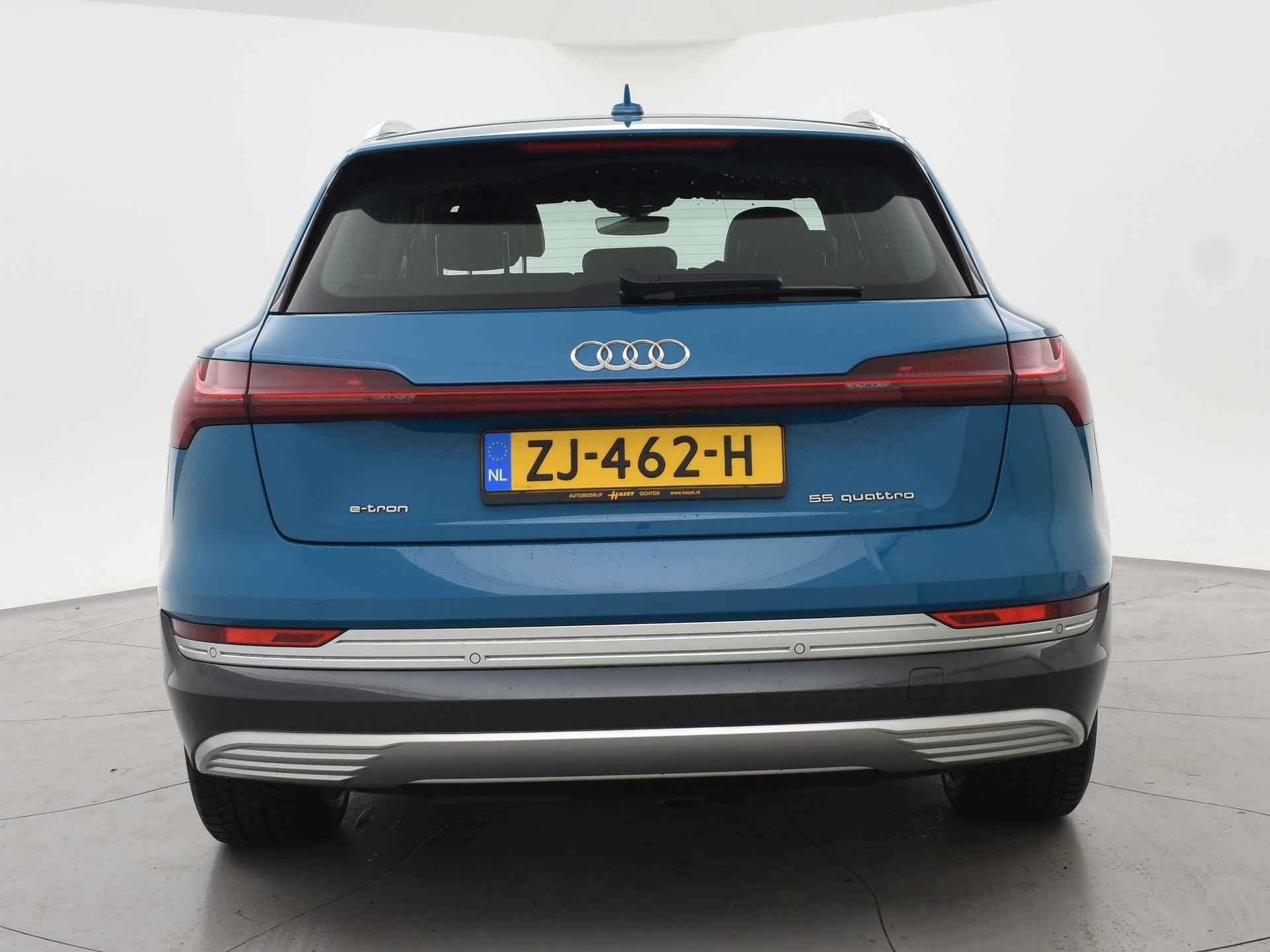 Edition One uitvoering - de introductie uitvoering van de E-Tron met zeer veel extra's en die het meest de introductiekleur Antiguablauw metallic uitgegeven is met oranje remklauwen origineel vanaf fabriek. E-Tron 55 408 PK Quattro, BTW verrekenbaar, prijs is inclusief BTW. Zwart volledig leder sportinterieur met stoelverwarming, 4-Corner Luchtvering met regelbare rijhoogte, Sfeerverlichting interieur met verschillende kleuren, Bang & Olufson premium sound, Panorama schuif/kanteldak, 360 graden surround view camerasysteem, Navigatie, Adaptive cruise control, Cameraspiegels, Parkeersensoren voor en achter, Elektrische stoelverstelling, Zwarte hemelbekleding, Keyless-entry en keyless-drive, Elektrische achterklep, Full LED koplampen, LED achterlichten, Chromen raamlijsten en dakrailing, Apple Carplay / Android Auto, 4-zone climate control, Elektronisch kinderslot. Bijzonderheden: Deze auto kan wel gewoon aan de laadpaal laden, maar niet aan de snelladers zoals Fastned. Dit komt door een isolatiestoring die het snelladen beveiligd. De oplossing hiervoor is ons niet bekend, wij verkopen de auto in de huidige staat.