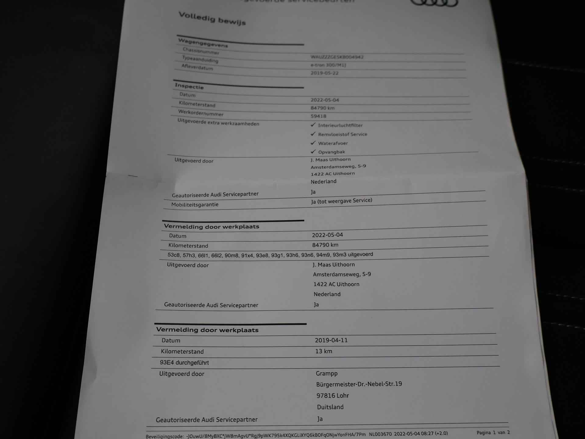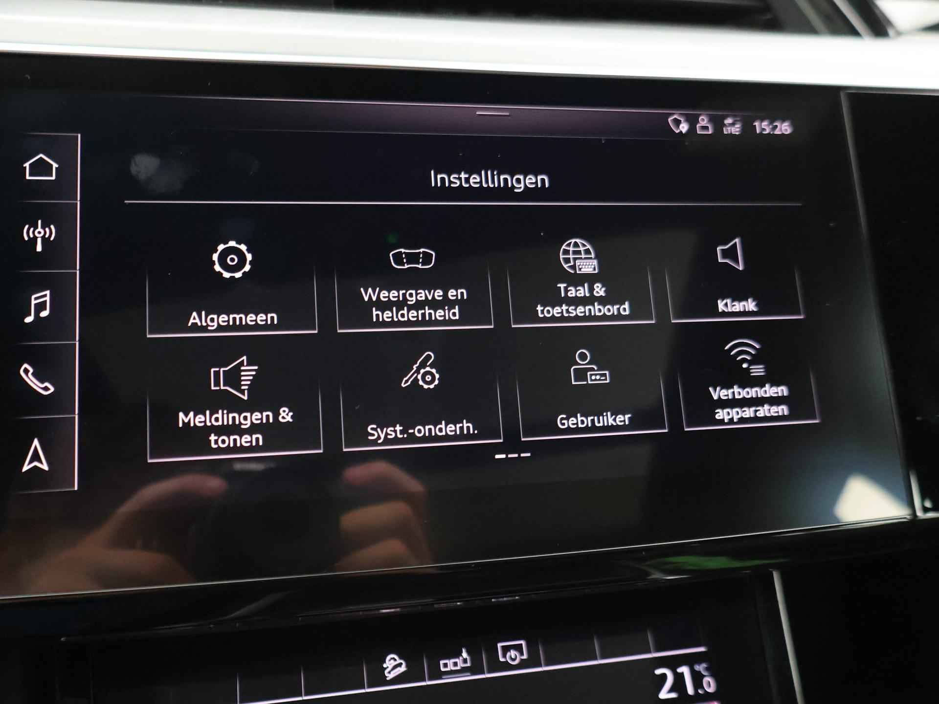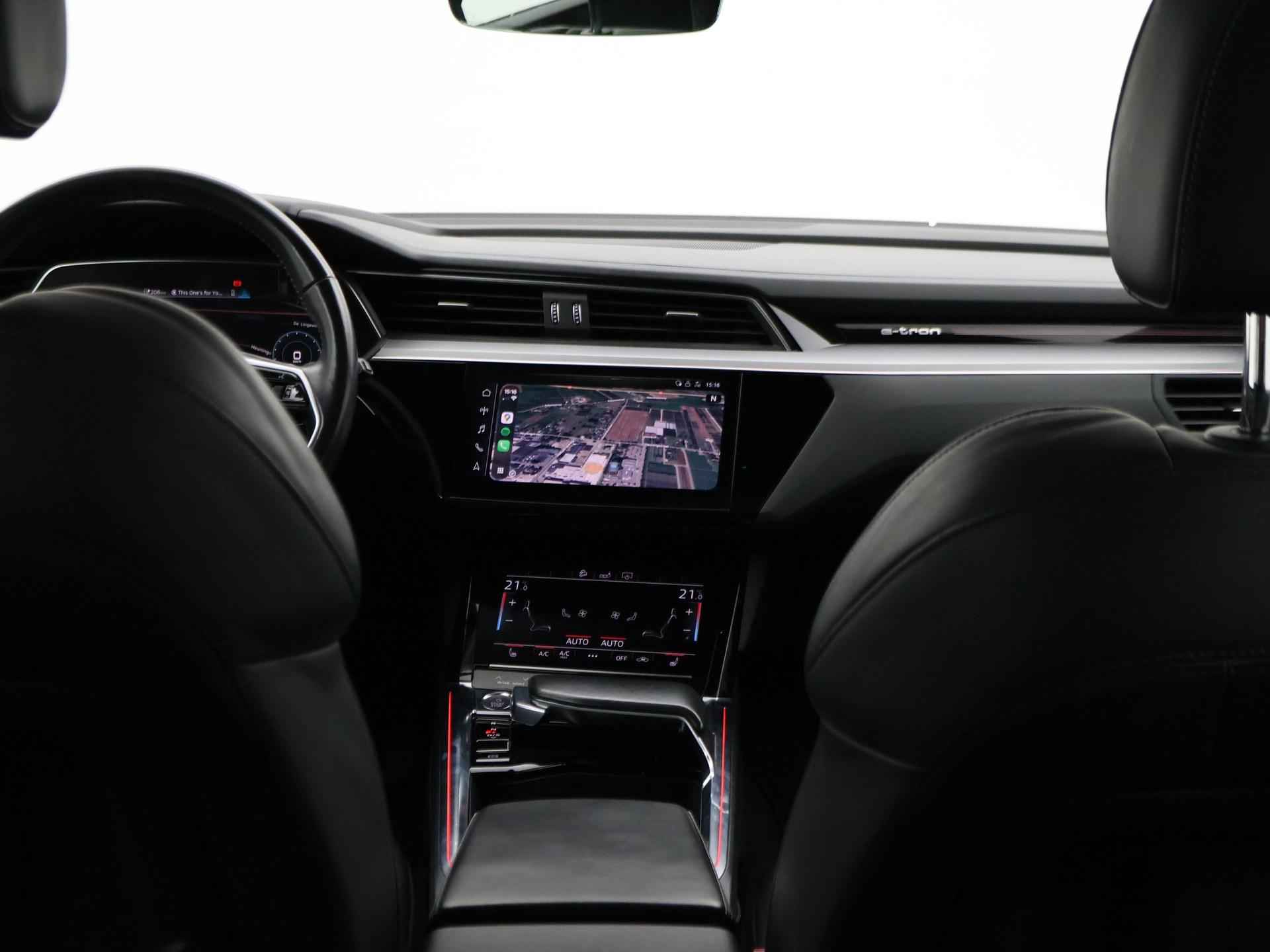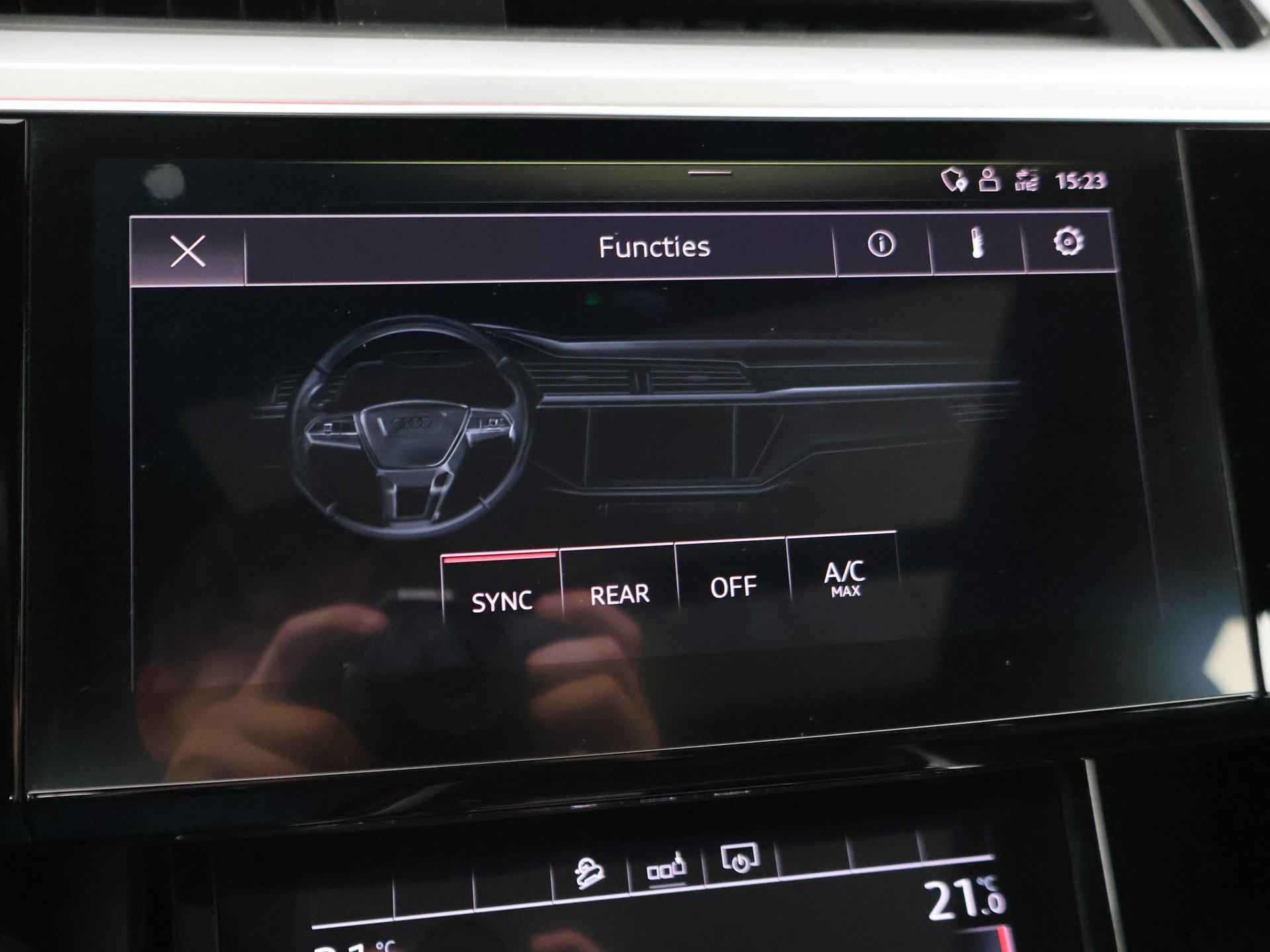 Edition One uitvoering - de introductie uitvoering van de E-Tron met zeer veel extra's en die het meest de introductiekleur Antiguablauw metallic uitgegeven is met oranje remklauwen origineel vanaf fabriek. E-Tron 55 408 PK Quattro, BTW verrekenbaar, prijs is inclusief BTW. Zwart volledig leder sportinterieur met stoelverwarming, 4-Corner Luchtvering met regelbare rijhoogte, Sfeerverlichting interieur met verschillende kleuren, Bang & Olufson premium sound, Panorama schuif/kanteldak, 360 graden surround view camerasysteem, Navigatie, Adaptive cruise control, Cameraspiegels, Parkeersensoren voor en achter, Elektrische stoelverstelling, Zwarte hemelbekleding, Keyless-entry en keyless-drive, Elektrische achterklep, Full LED koplampen, LED achterlichten, Chromen raamlijsten en dakrailing, Apple Carplay / Android Auto, 4-zone climate control, Elektronisch kinderslot. Bijzonderheden: Deze auto kan wel gewoon aan de laadpaal laden, maar niet aan de snelladers zoals Fastned. Dit komt door een isolatiestoring die het snelladen beveiligd. De oplossing hiervoor is ons niet bekend, wij verkopen de auto in de huidige staat.