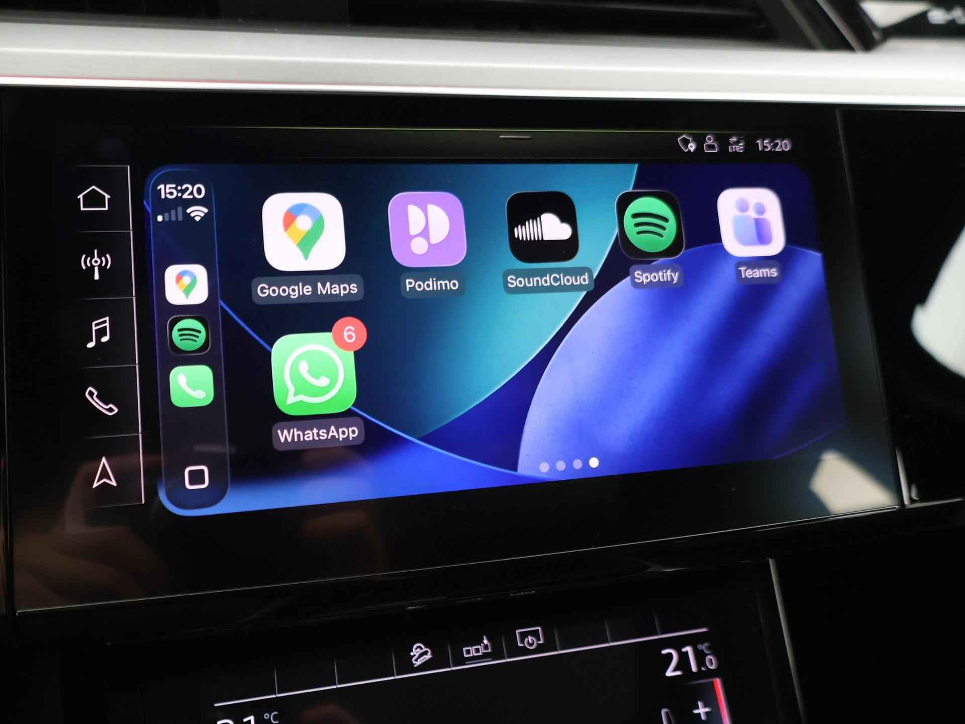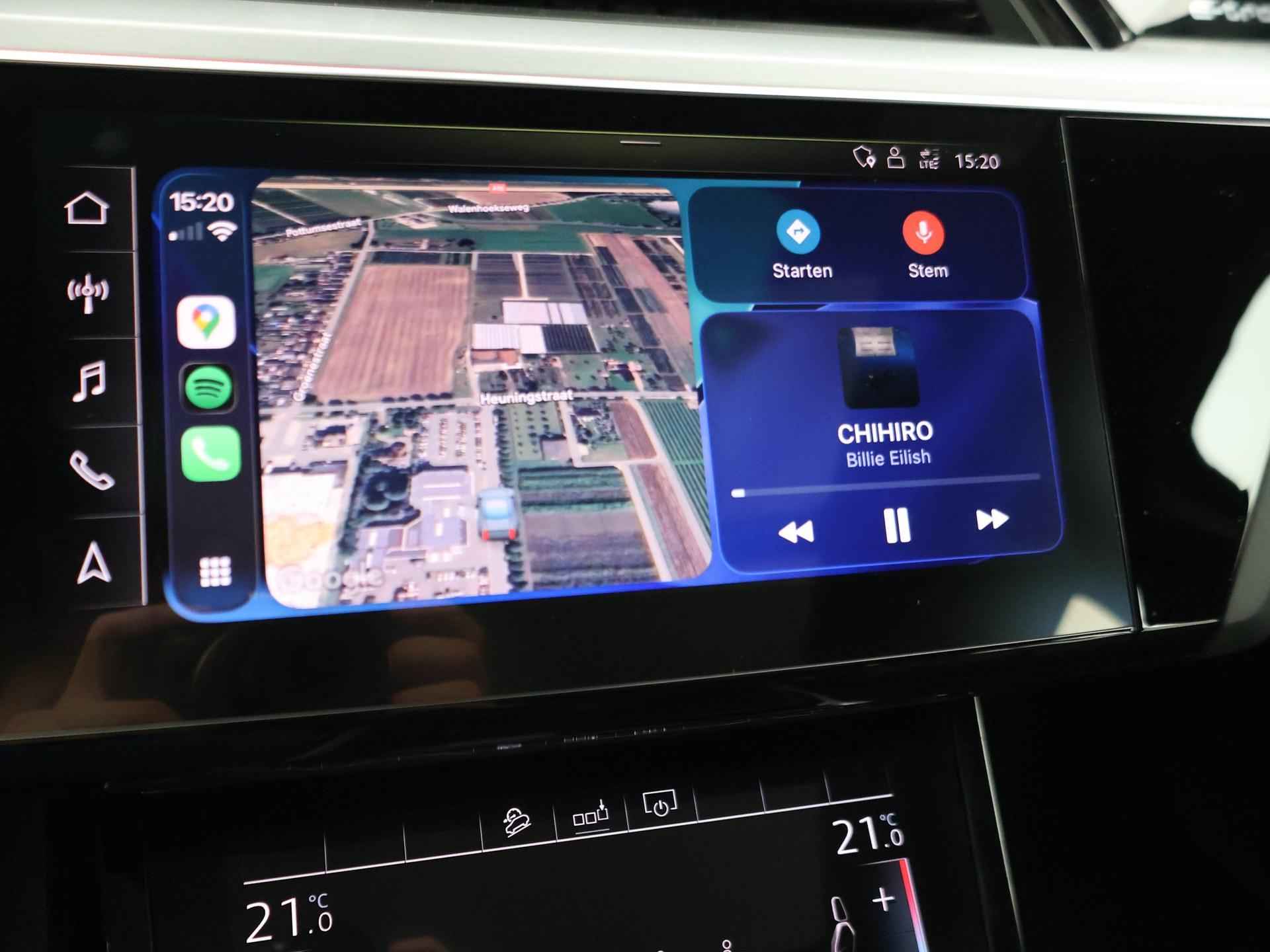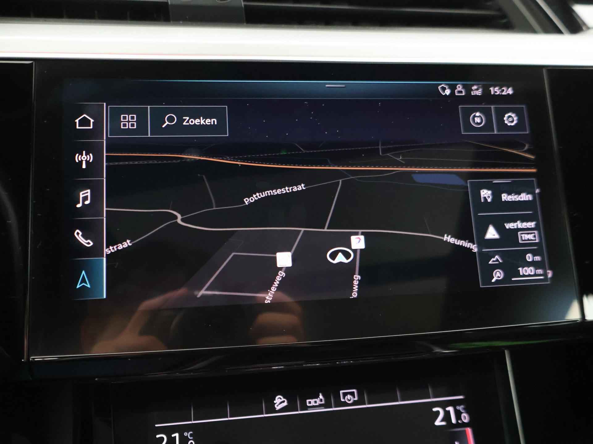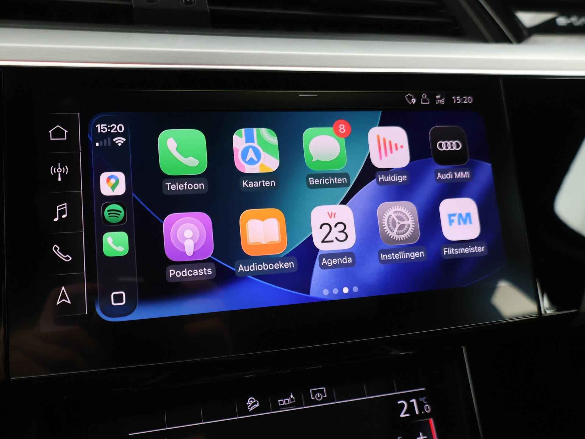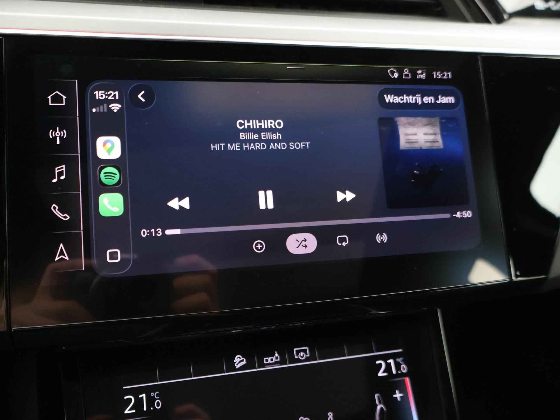 Edition One uitvoering - de introductie uitvoering van de E-Tron met zeer veel extra's en die het meest de introductiekleur Antiguablauw metallic uitgegeven is met oranje remklauwen origineel vanaf fabriek. E-Tron 55 408 PK Quattro, BTW verrekenbaar, prijs is inclusief BTW. Zwart volledig leder sportinterieur met stoelverwarming, 4-Corner Luchtvering met regelbare rijhoogte, Sfeerverlichting interieur met verschillende kleuren, Bang & Olufson premium sound, Panorama schuif/kanteldak, 360 graden surround view camerasysteem, Navigatie, Adaptive cruise control, Cameraspiegels, Parkeersensoren voor en achter, Elektrische stoelverstelling, Zwarte hemelbekleding, Keyless-entry en keyless-drive, Elektrische achterklep, Full LED koplampen, LED achterlichten, Chromen raamlijsten en dakrailing, Apple Carplay / Android Auto, 4-zone climate control, Elektronisch kinderslot. Bijzonderheden: Deze auto kan wel gewoon aan de laadpaal laden, maar niet aan de snelladers zoals Fastned. Dit komt door een isolatiestoring die het snelladen beveiligd. De oplossing hiervoor is ons niet bekend, wij verkopen de auto in de huidige staat.
