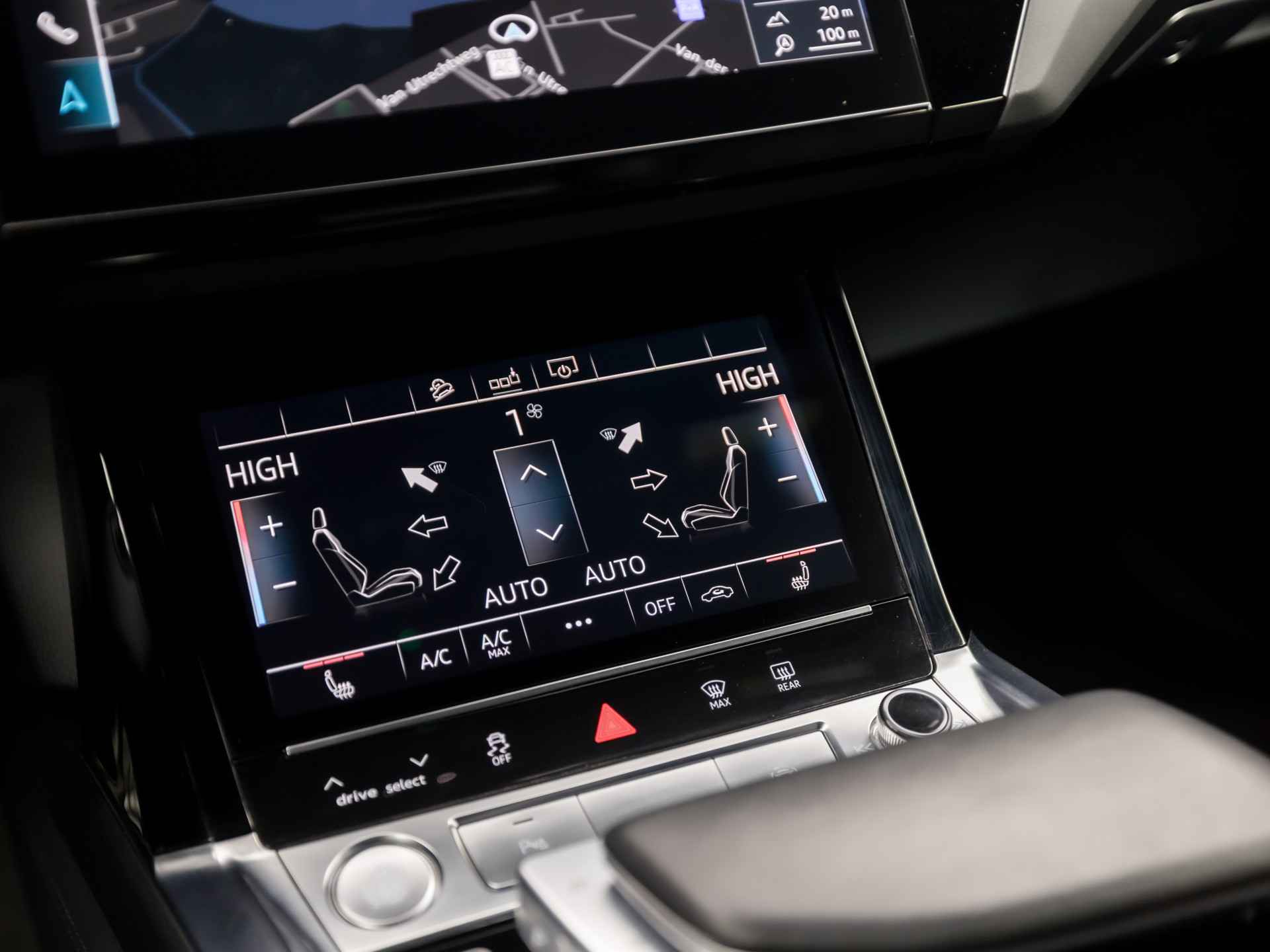 De nieuwste veiligheidssystemen komen in deze Audi e-tron samen. Ongemerkt buiten de rijstrook raken? Nee hoor, het Lane-keeping systeem waarschuwt en corrigeert. Veilig inhalen en invoegen wordt bevorderd door de actieve dodehoekdetectie. Onbedoeld bumperkleven is er niet bij, dankzij de forward collision warning. Die waarschuwt direct als een botsrisico met uw voorligger dreigt.