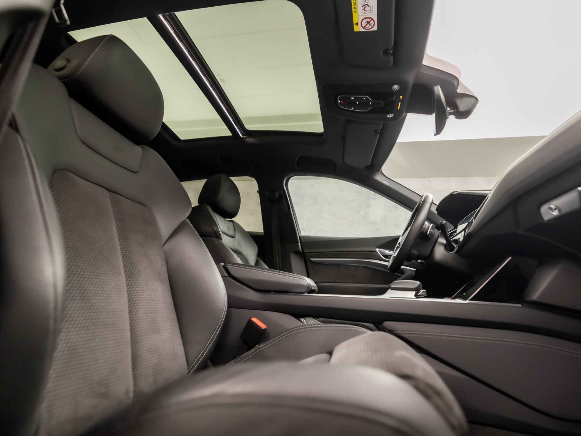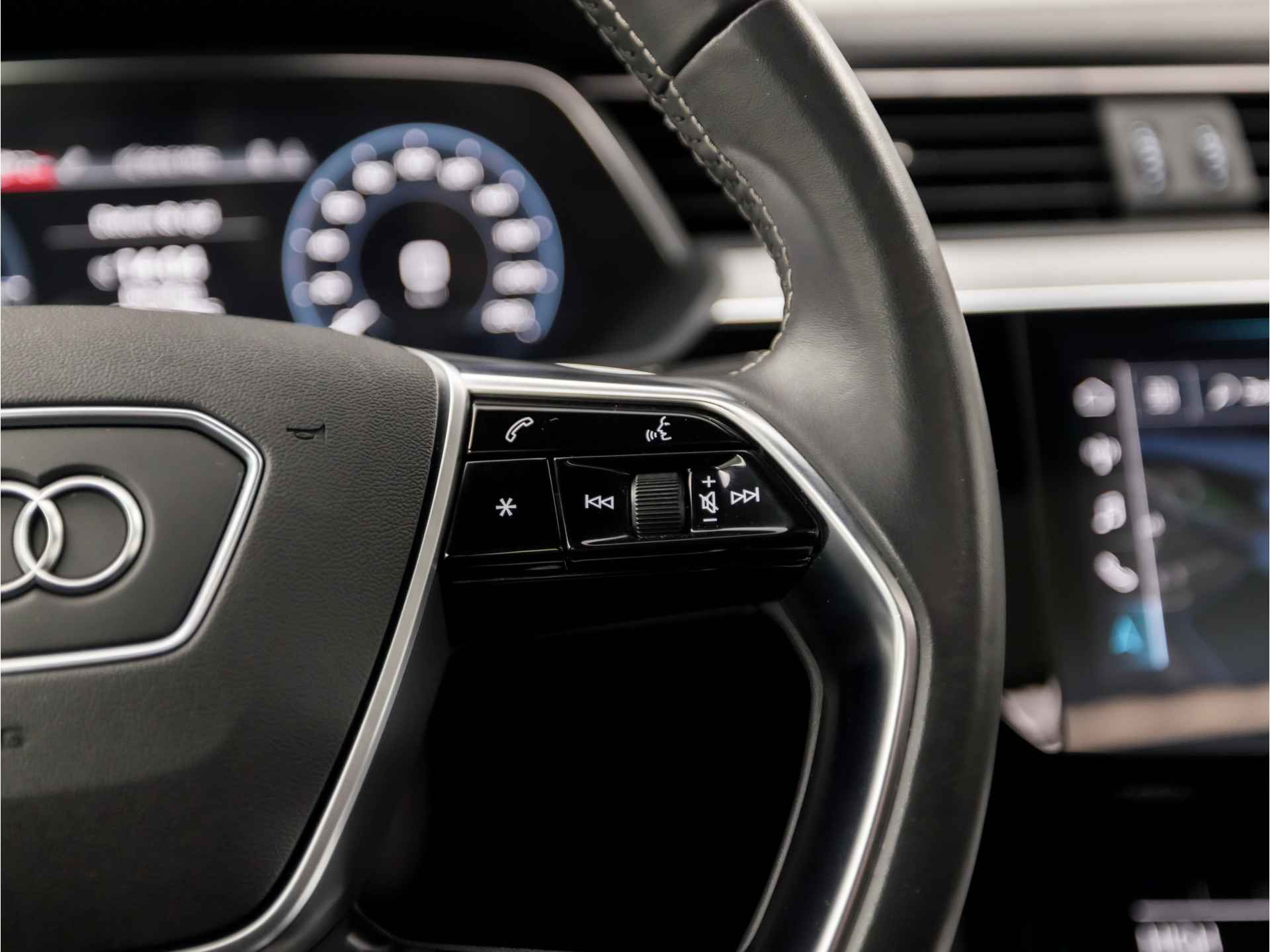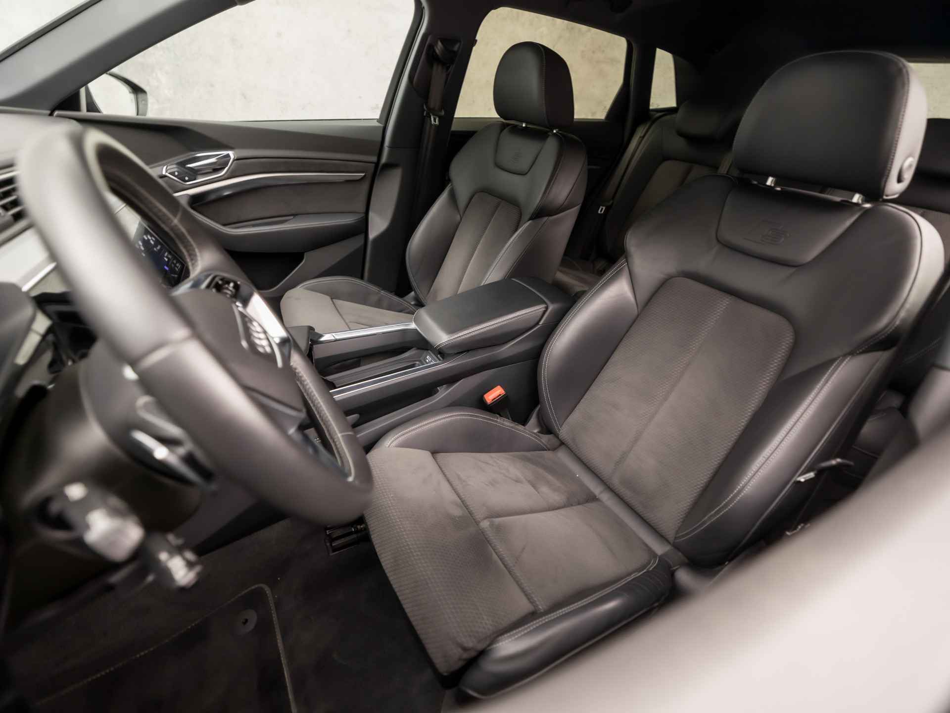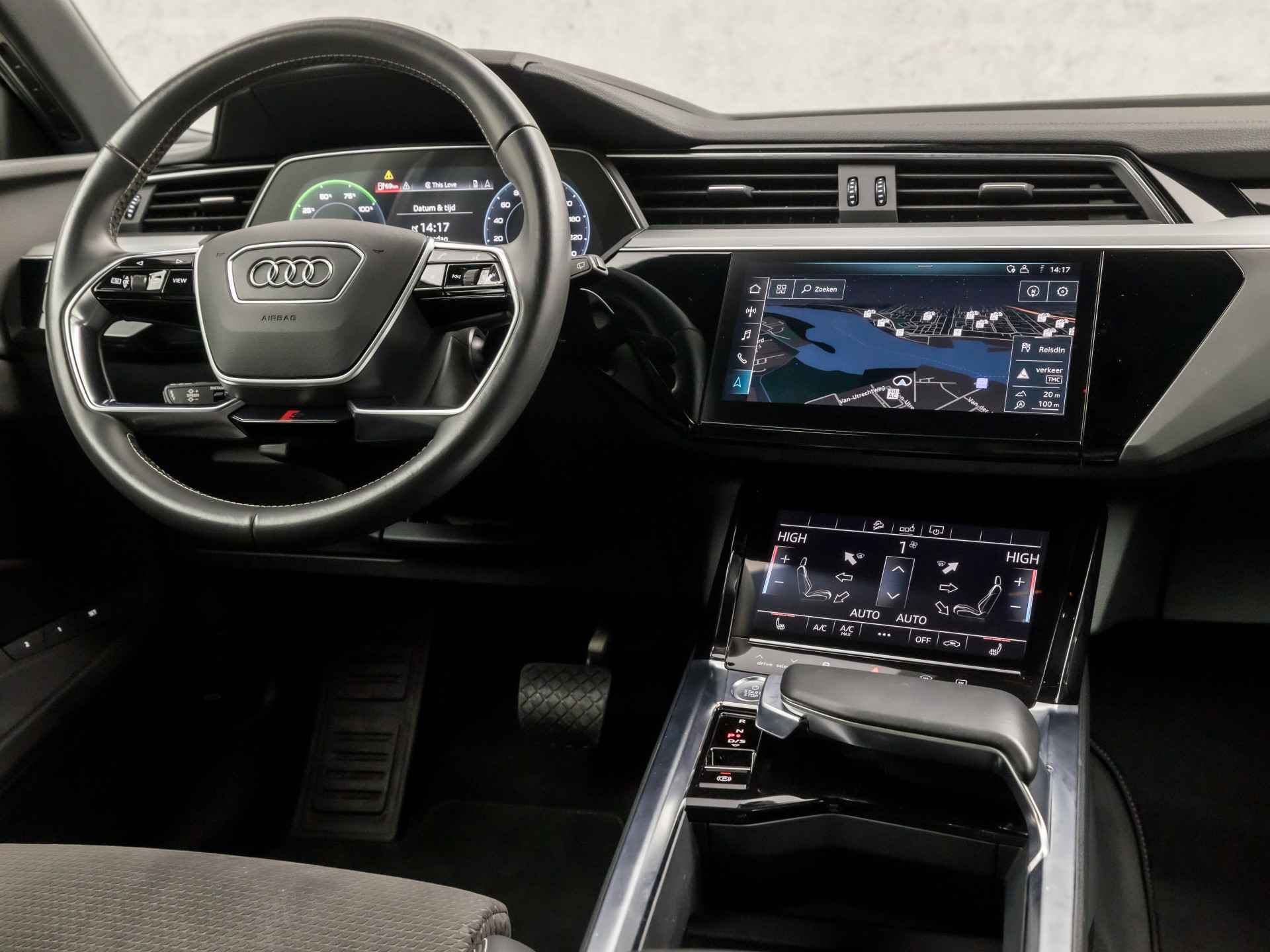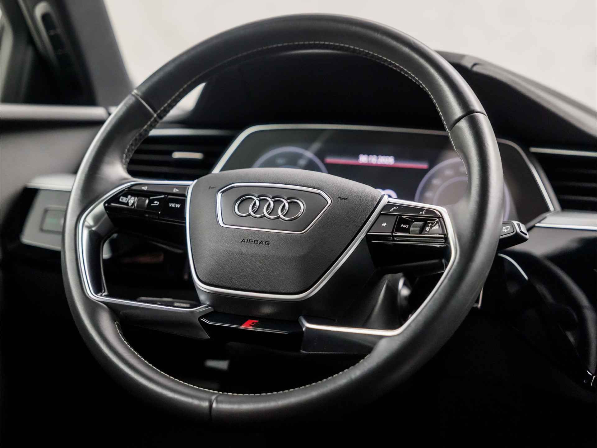 Elektrisch rijden is ontspannen rijden. Achter het stuur van deze Audi e-tron kunt u zich in alle rust concentreren op de weg. Schoon, stil en fiscaal vriendelijk: met de elektromotor is het zuinig zoeven! De elegante lijnvoering wordt versterkt door subtiele s-line styling details. De krachtige motor geeft deze Audi uitstekende prestaties. Automatische luchtvering absorbeert oneffenheden in het wegdek en vergroot het rijcomfort. Elke rit in deze Audi e-tron heeft een tikje meer, dankzij het lederen interieur. Neem plaats op de comfortabele stoelen. Dankzij de elektrische bediening en het geheugen is het eenvoudig om hierin de beste zitpositie te vinden. Het interieur baadt in daglicht dankzij het elektrisch bediende glazen panoramadak. Een handige voorziening op deze auto is de elektrische achterklep die u op afstand kunt openen. Xenonverlichting zorgt in het donker voor beter zicht. Bij de zeer complete uitrusting van deze auto behoren ook 20 inch lichtmetalen velgen, LED koplampen, warmtewerend glas, zwarte hemelbekleding, in delen neerklapbare achterbank en LED-achterlichten.