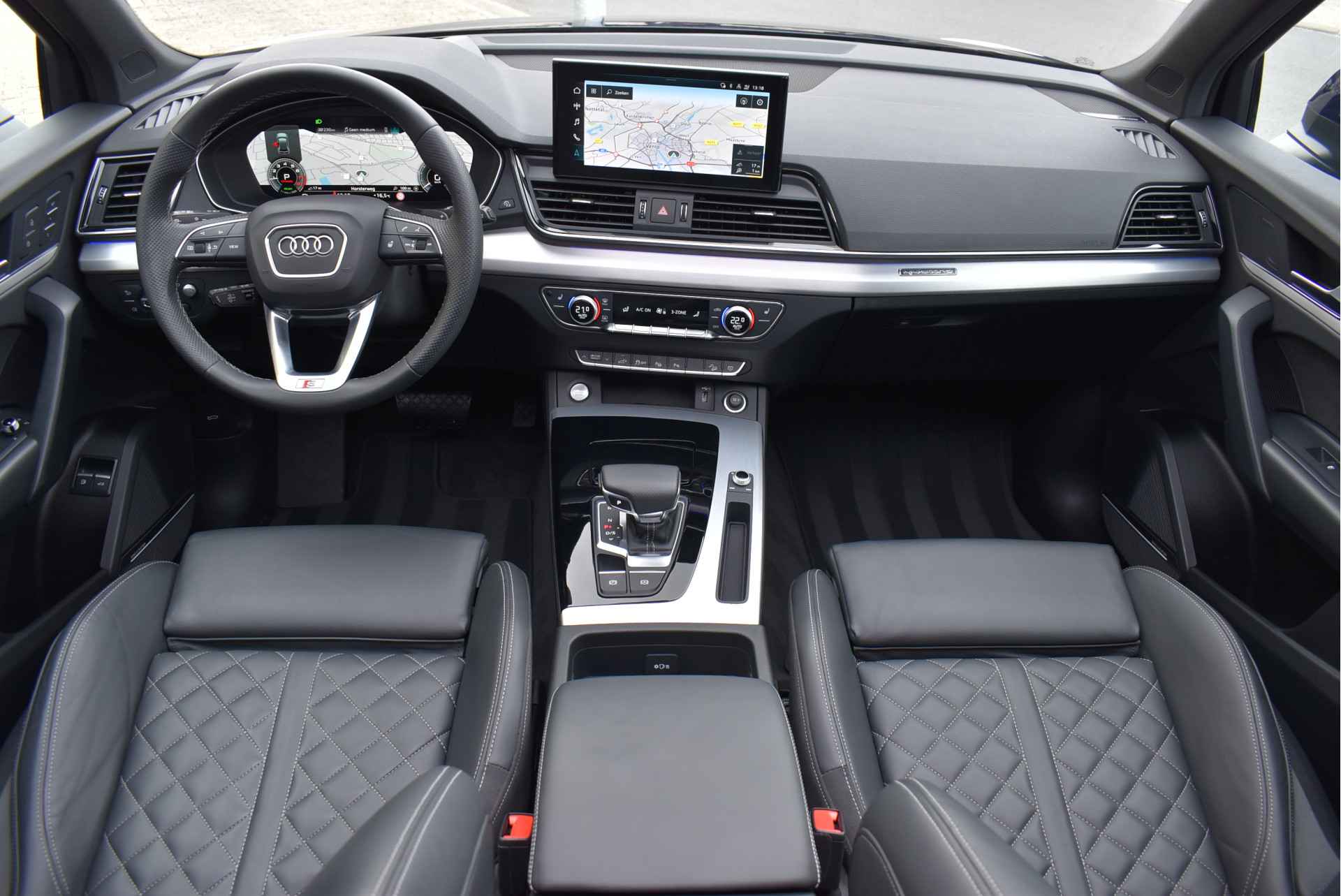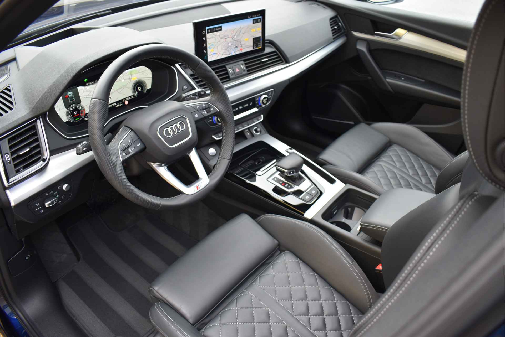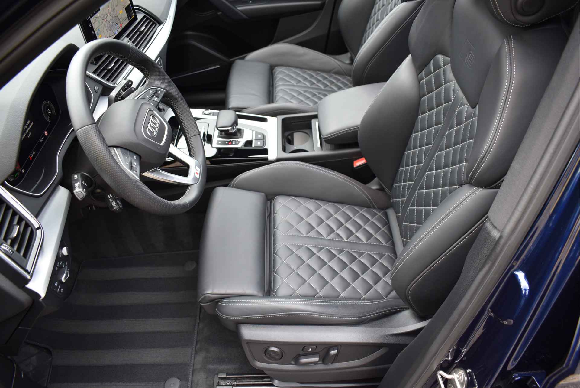 Model 2022 Unieke Audi Q5 55e Tfsi S-Line Competition 367 Pk Black Edition DLR Onderhouden 12-2021 met 78 Dkm Nevarra Blauw Metallic Opties: Matrix Led Koplampen (zandlopers) Black Optik Lederen RS-Sportstoelen met Massage (elektrisch verstelbaar met memory) S-Line Ext/Int Pakket Head-Up Display Virtual Cockpit Navigatie Full Map Keyless Entry/Start Stuurverwarming Sfeerverlichting in Kleur Instelbaar Zwarte Hemel Bang&Olufsen Soundsysteem Climate Control 3 Zone Stoelverwarming V+A Elektrische Achterklep Luchtvering met Automatische Niveau Regeling Parkeersensoren V+A 360 Camera DAB Radio Apple Carplay Spiegels Elektrisch Inklapbaar Elektrische Stuurkolom Bluetooth Telefoon Achteruitrijcamera Oled Achterlampen (zandlopers) Getint Glas ACC Adaptieve Cruise Control Lane Assistent Dodehoek Detectie 21 Inch Audi Sportvelgen