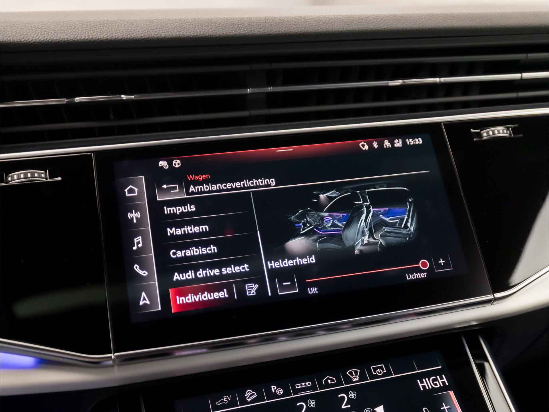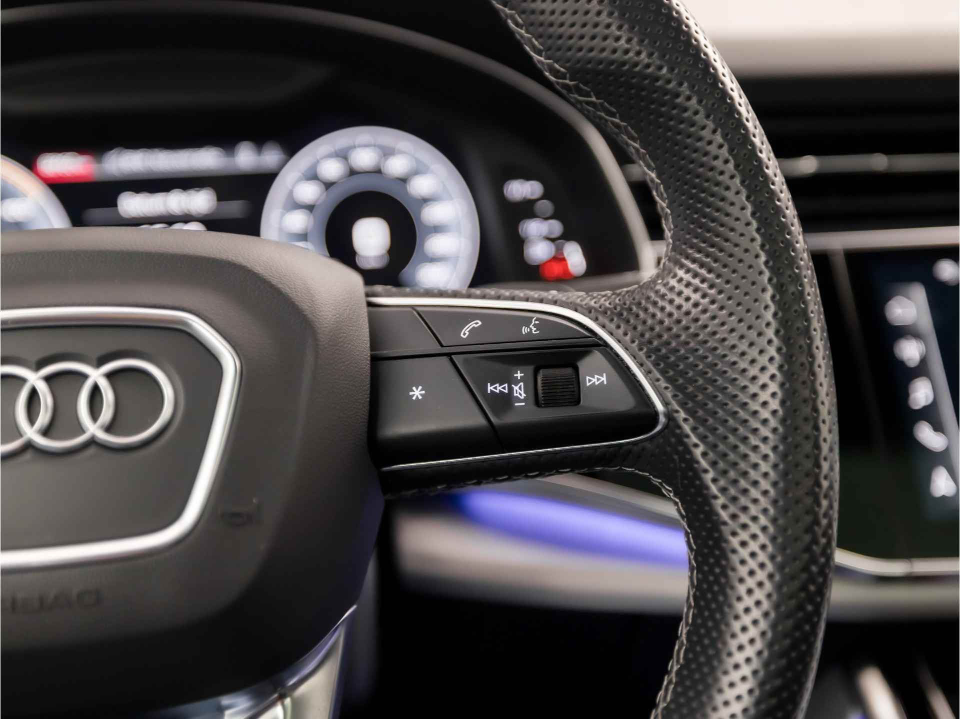 De nieuwste veiligheidssystemen komen in deze Audi Q8 samen. Onderweg zorgt verkeersborddetectie ervoor dat u geen waarschuwingsbord mist. Het Lane-keeping systeem zorgt voor een automatisch constante positie binnen de rijstrook. Afdwalen is uitgesloten. Botsingen met een voorligger gebeuren relatief vaak. De forward collision warning slaat tijdig alarm als dat risico ontstaat, zodat u kunt ingrijpen. Met voorzieningen als head-up display, hill hold functie, autonoom remsysteem en bandenspanningcontrolesysteem, bent u altijd veilig onderweg.