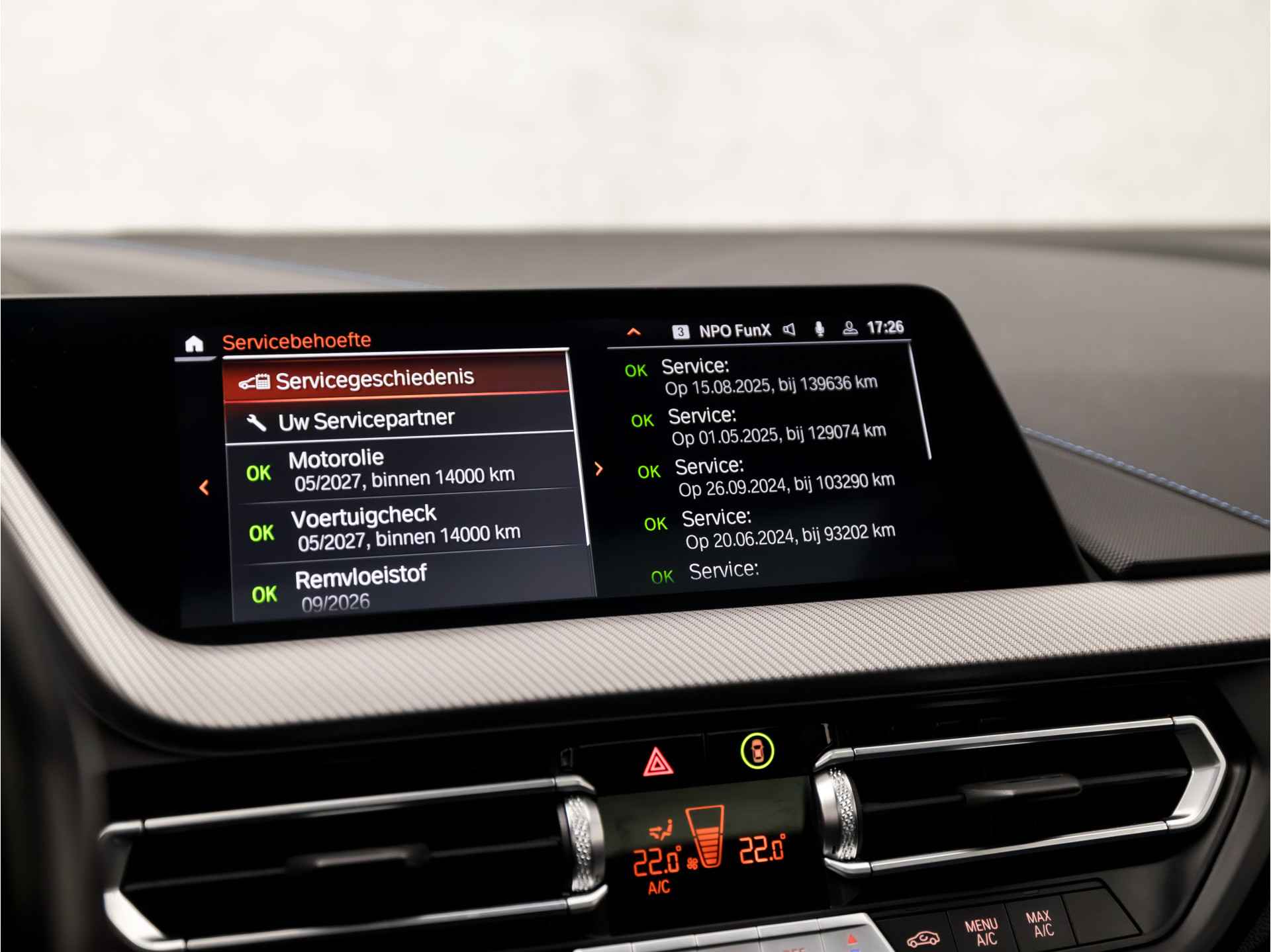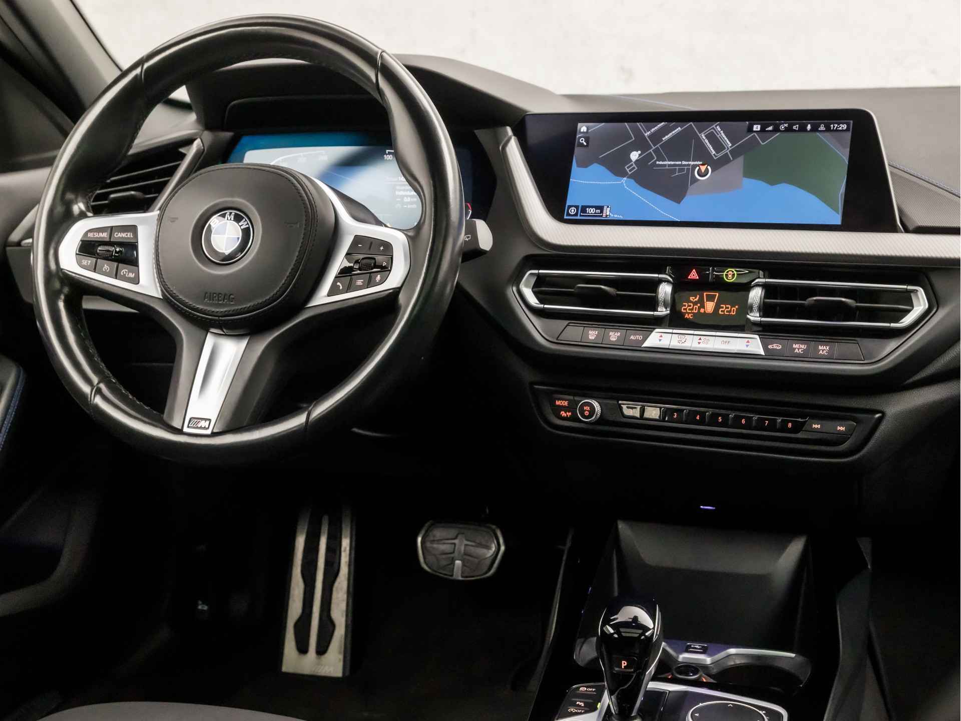 Altijd de benodigde functies in beeld? Het digitale dashboard zorgt ervoor. In één oogopslag weet u de complete systeemstatus van deze auto. Dankzij Connected Services. Een goede veiligheidsvoorziening is de spraakbediening en stuurbediening voor belangrijke functies. De auto is natuurlijk voorzien van een navigatiesysteem met harde schijf en het audio-installatiesysteem biedt glasheldere geluidskwaliteit dankzij DAB-ontvangst. De sensoren van de achteropkomend verkeer waarschuwing registreren wat er gebeurt in de dode hoeken en achter u. U krijgt meteen een waarschuwing als u een achterligger over het hoofd ziet. U verwacht natuurlijk automatische airconditioning in deze auto, en die is er dan ook. De BMW is standaard voorzien van: lederen sportstuur, parkeersensoren voor en achter, regensensor, cruise control, automatisch dimmende binnen- en buitenspiegels en isofix-aansluiting.