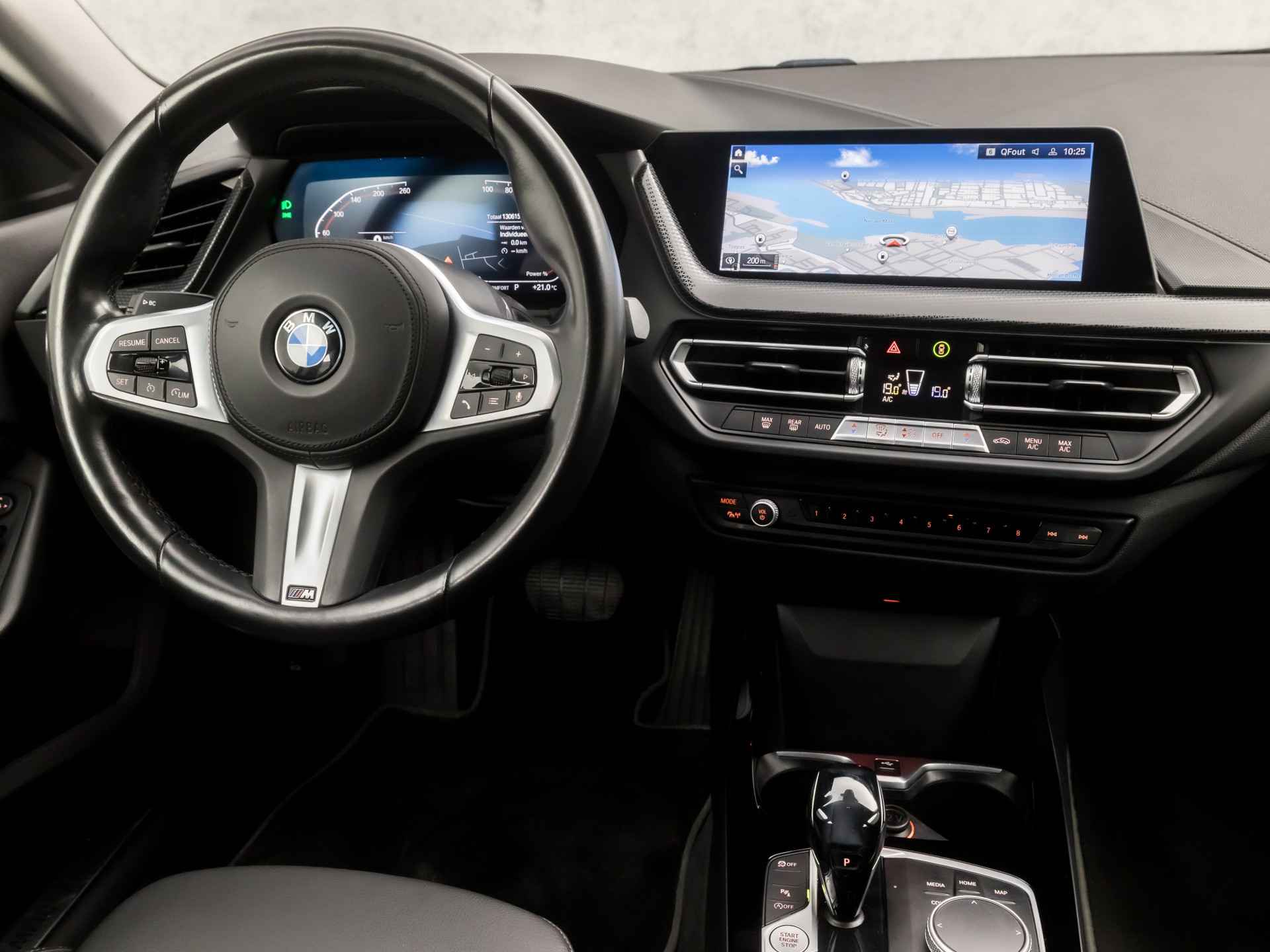 Het eigentijdse interieur wordt natuurlijk helemaal volmaakt met het digitale dashboard. Praat tegen deze auto en de auto doet wat u wilt dankzij de ingebouwde spraakbediening. Navigatie, onderhoudsstatus, vergrendeling, audio... de mogelijkheden van remote services zijn haast oneindig. Ook deze auto laat zich bedienen en analyseren via uw smartphone! Het navigatiesysteem zorgt ervoor dat u altijd de juiste en snelste route vindt. De achteropkomend verkeer waarschuwing is een mooie veiligheidsoptie, die middels sensoren in de gaten houdt wat er onderweg achter u gebeurt. Deze BMW is voorzien van automatische airconditioning, lederen sportstuur, DAB ontvangst, parkeersensoren voor en achter, regen- en lichtsensor en cruise control.