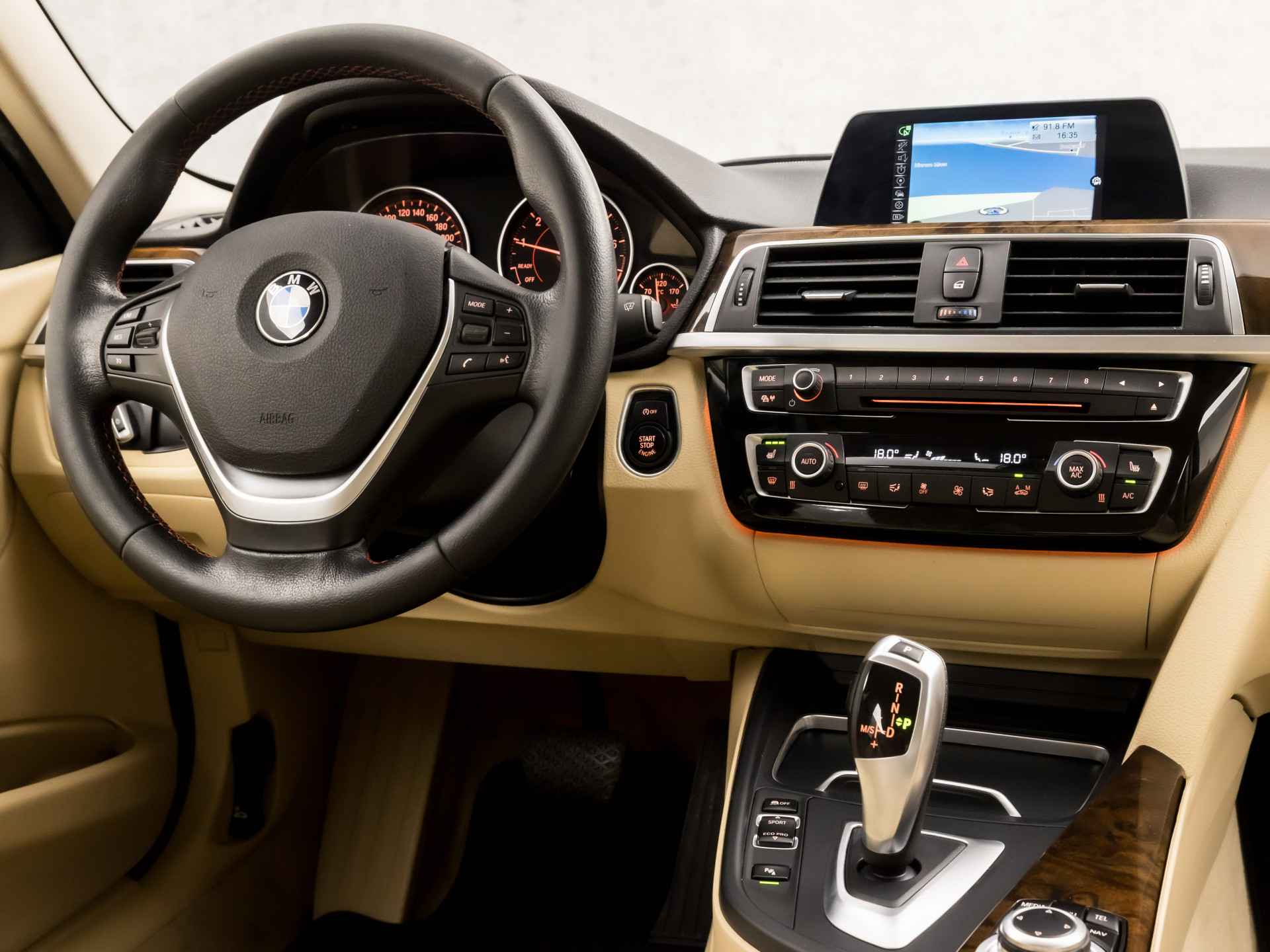 De ingebouwde Connected Services vertellen u via de app alles over de status van de auto. Locatie, onderhoudsstatus, brandstofpeil en nog veel meer! In deze 3-serie vindt u niet alleen schakelaars op het stuur om het audio-installatiesysteem te bedienen en het navigatiesysteem met harde schijf, maar er is ook spraakbediening. Automatische airconditioning regelt volautomatisch de temperatuur. U kiest de gewenste temperatuur en het systeem doet de rest. Parkeerplekken worden er niet ruimer op. Maar met de aanwezige parkeersensoren krijgt u deze BMW 3-serie zonder problemen op z'n plaats. Het luxeniveau in deze BMW is niet alleen gericht op comfort, maar ook op uw veiligheid. Tal van sensoren helpen u om de omgeving in de gaten te houden. De automatisch inschakelbare verlichting zorgt dat automatisch de verlichting wordt ingeschakeld als het donker wordt, wat bijvoorbeeld in tunnels erg handig is. En de regensensor zet de ruitenwissers aan zonder dat u eraan hoeft te denken. Wat u ook in deze auto kunt vinden zijn lederen sportstuur, cruise control, isofix-aansluiting, centrale deurvergrendeling met afstandsbediening en boordcomputer.