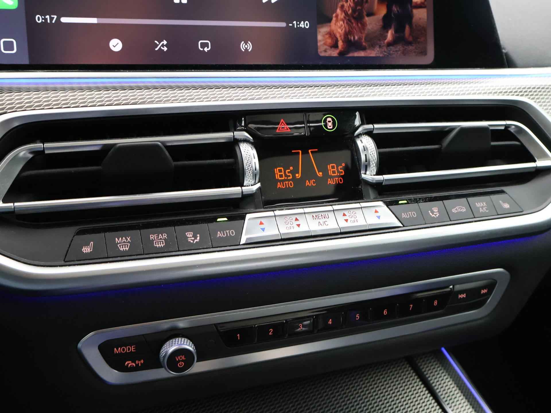 Alles M-Sport uitgevoerd: M-Sport Aerodynamica exterieurpakket, M-Sport interieurpakket met ook de M-sport gordels, M-Sport remmen met blauwe klauwen, 20 inch M-sport velgen en M-Sport adaptief onderstel. Tevens M-Sport kleur: Carbonschwarz metallic (kleur 416), Leder Versnasca zwart met bruin, Head-up display, Adaptive cruise control met actieve stuurassistentie Active Guard Plus, Driving Assistant Professional, Adaptieve LED koplampen, Sfeerverlichting interieur met verschillende kleuren, Shadow Line hoogglans zwarte exterieurlijsten, 360 graden Surround View camerasysteem, Apple Carplay / Android Auto draadloze appstreaming Google Maps, Flitsmeister, Spotify, Whatsapp etc, BMW Live Cockpit Professional digitale cockpit, HiFi luidsprekersysteem, Comforttoegang keyless, Privacy glass origineel vanaf fabriek, Zwarte hemelbekleding, Volledig elektrische achterklep (ook onderste deel), BMW M sportstuurwiel, BMW Display Key, Draadloze telefoonlader, Sportstoelen, LED mistlampen, Elektrische stoelverstelling met geheugen, Verkeersbordenherkenning, Dodehoek assistentie, Elektrisch verstelbaar stuurwiel.