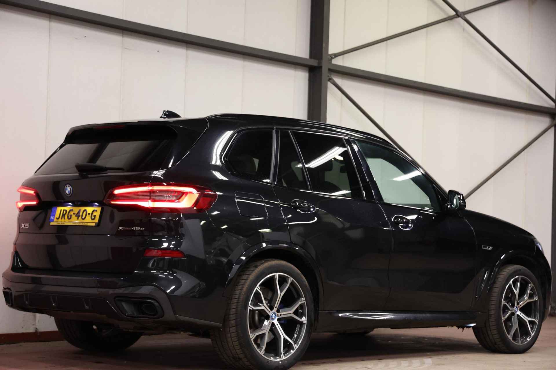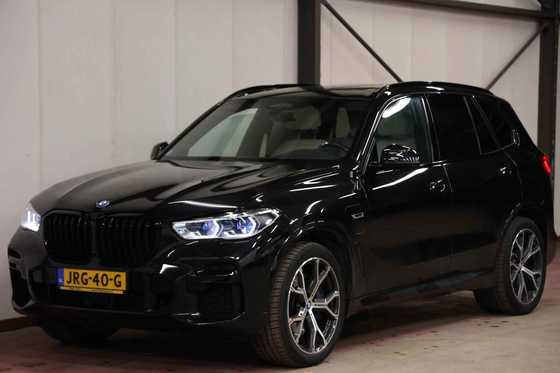 Zeer nette BMW X5 xDrive45e, uitgevoerd in Black Sapphire Metallic met een luxe Merino lederen interieur in Elfenbeinweiss.