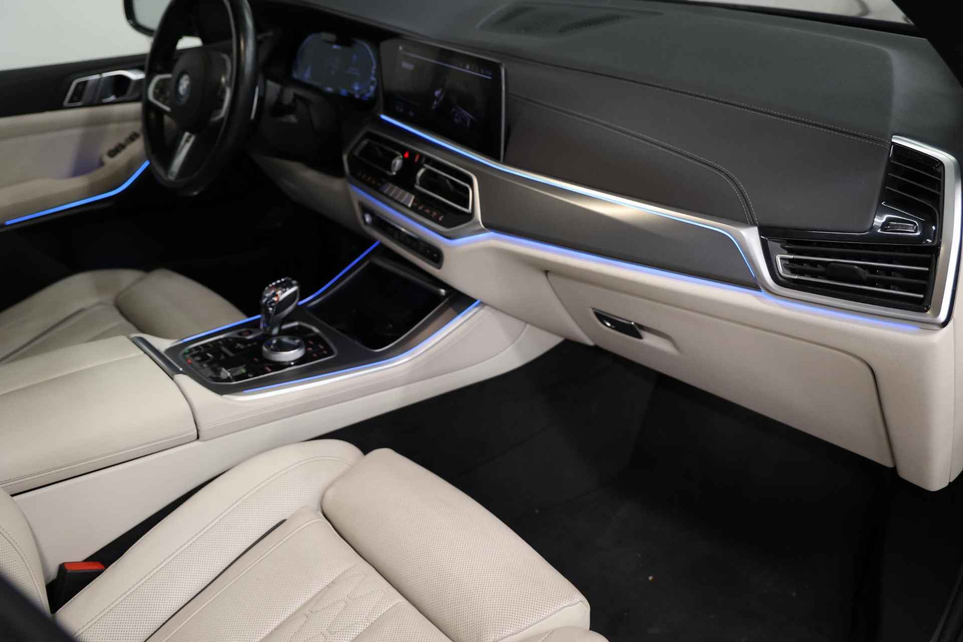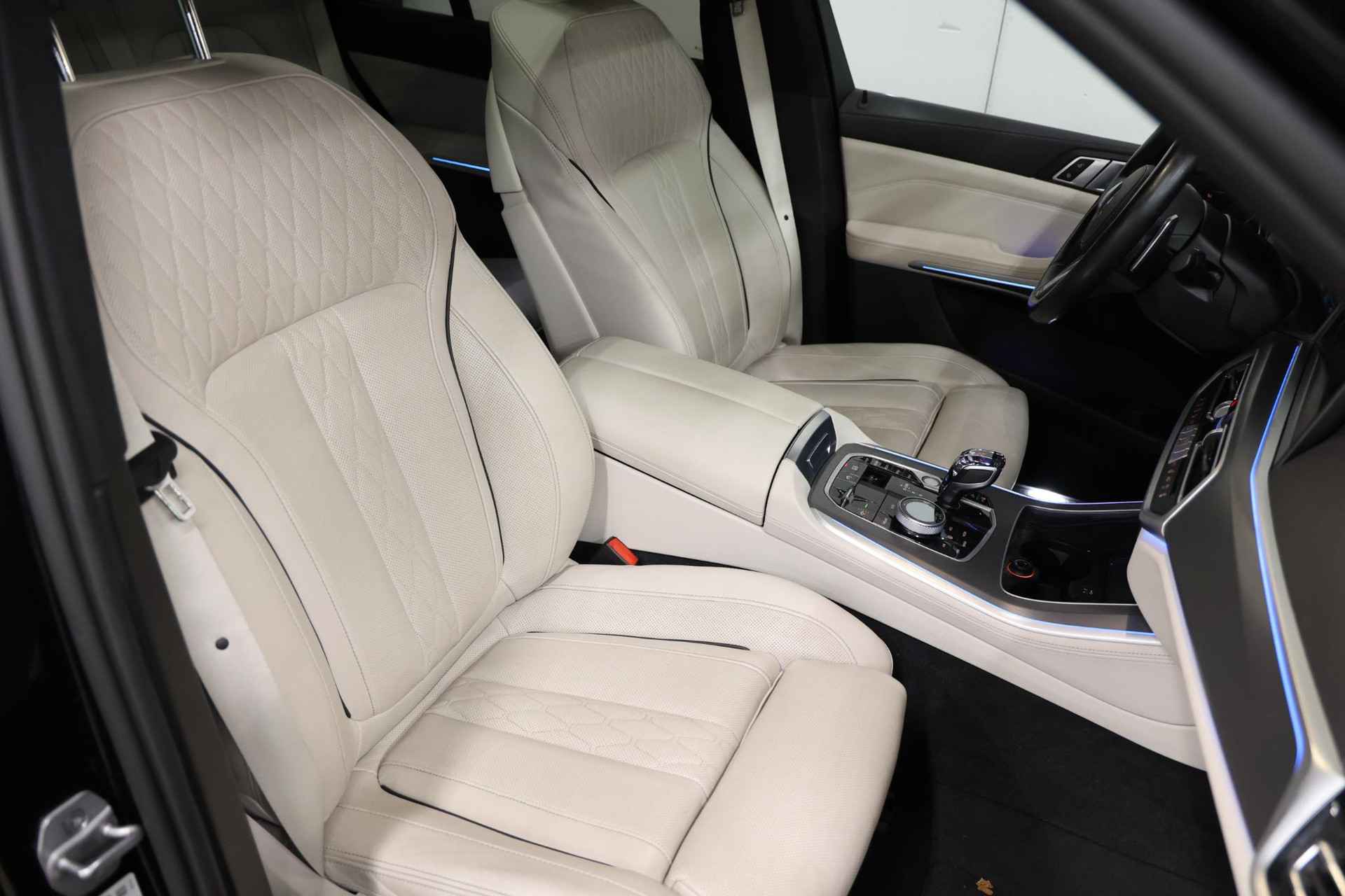 Deze wagen is onder meer uitgerust met massagestoelen, een Sky Lounge panoramadak, actieve achterasbesturing, een M Sport automatische transmissie, een separate achterkachel, een verwarmd stuurwiel, Head-Up Display, 2-assige luchtvering, een elektrisch inklapbare trekhaak, BMW Laser Light, Parking Assistant Plus, High-Beam Assistant, Active Guard Plus en actieve voetgangersbescherming.