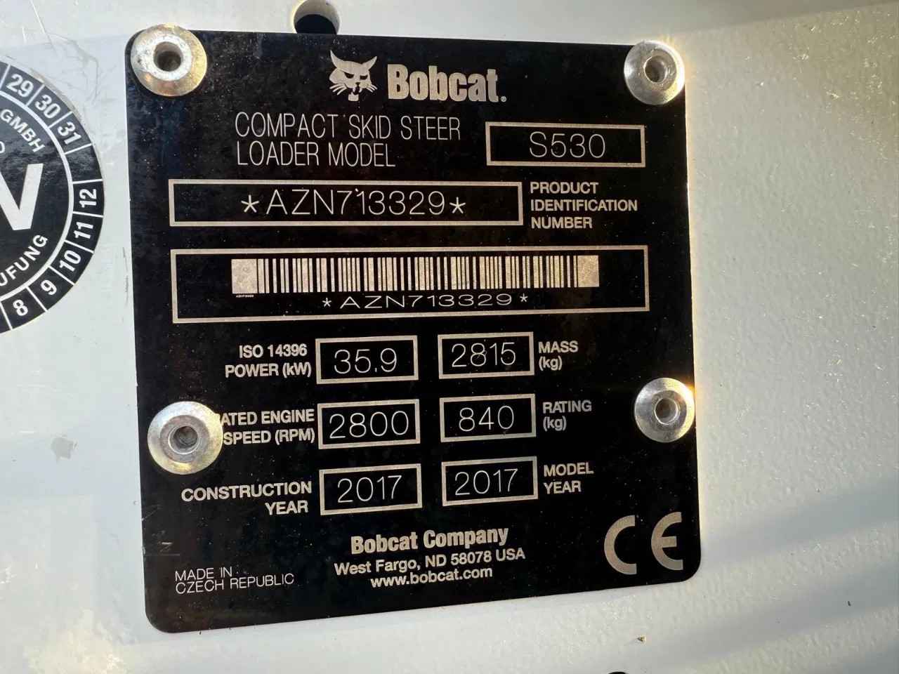 Bobcat S530 2017 5923 hours 2815 kg 35,9 kW Extra hydraulic function Quick coupler 1x Bucket 170cm