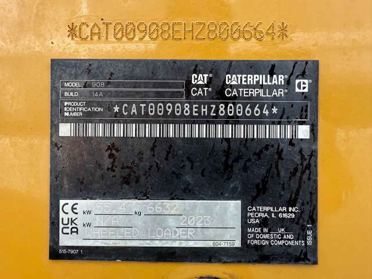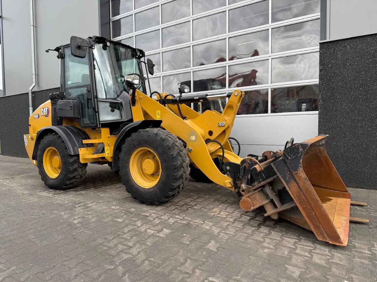 Caterpillar 908 2023 2666 hours 6632 kg 55,4 kw Extra hydraulic function Hydraulic quick coupler 1x forks 1x Bucket