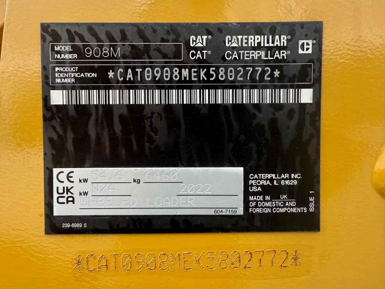 Caterpillar 908M 2022 1182 hours 6460 kg 54,6 kW Extra hydraulic function Hydraulic quick coupler 1x forks 1x Bucket