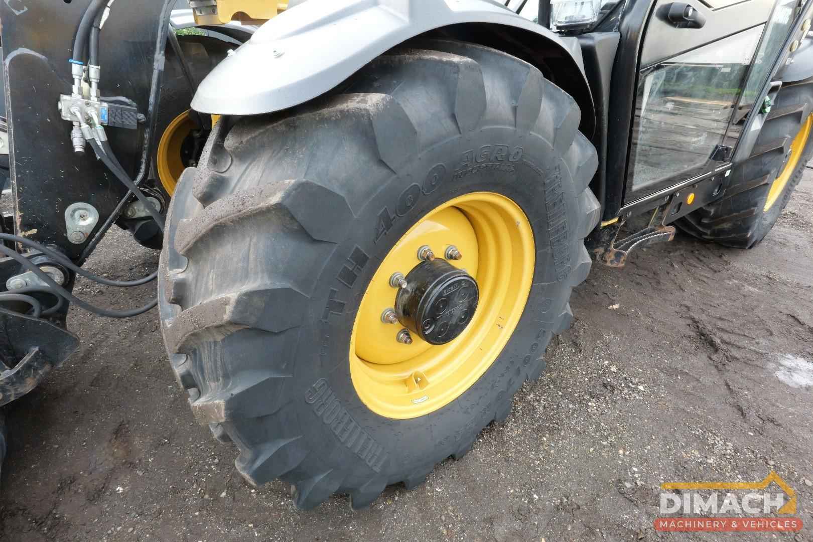 Conditie: De machine verkeert in een zeer goede staat en heeft zojuist een grote onderhoudsbeurt gehad. Onderhoud: Alle olie is vernieuwd, zowel op de assen als de hydrauliek en de motor. De machine is volledig klaar voor gebruik. Banden: Uitgerust met Trelleborg-banden, maat 500/70R 24 met nog 90% profiel. Prestaties: Een maximale rijsnelheid van 40 km/u. Comfort en Verlichting: Voorzien van airco en LED-verlichting. Uitrusting: Inclusief een bak met Manitou-opname van 220 cm breed en een hydraulische snelwissel.