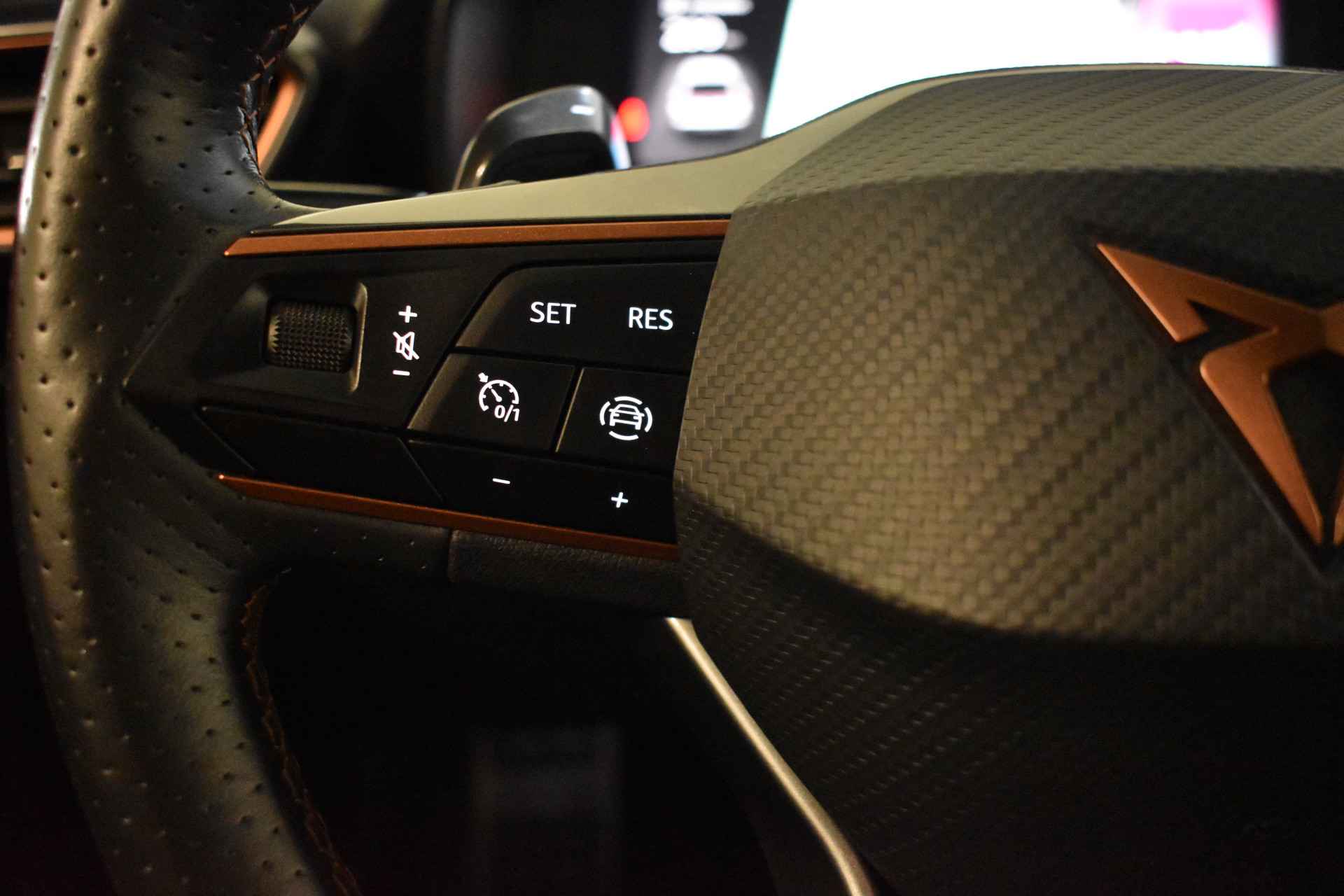 Compleet met vele opties en extra`s o.a: volledig digitaal instrumentenpaneel, entertainment systeem navigatie/bluetooth/audio, beats audio geluidsinstallatie, half leder interieur, sportstoelen, stoel verwarming, multifunctioneel CUPRA sport stuurwiel incl. stuurwiel verwarming, automatische airco, cruise-control, LED verlichting met LED koplampen, parkeer sensoren voor en achter, Parkeercamera, parkeerhulp automatisch inparkeren, buitenspiegels elektrisch inklapbaar, LED verlichting, interieur sfeer verlichting, zwarte hemelbekleding, 19inch lichtmetalen velgen,