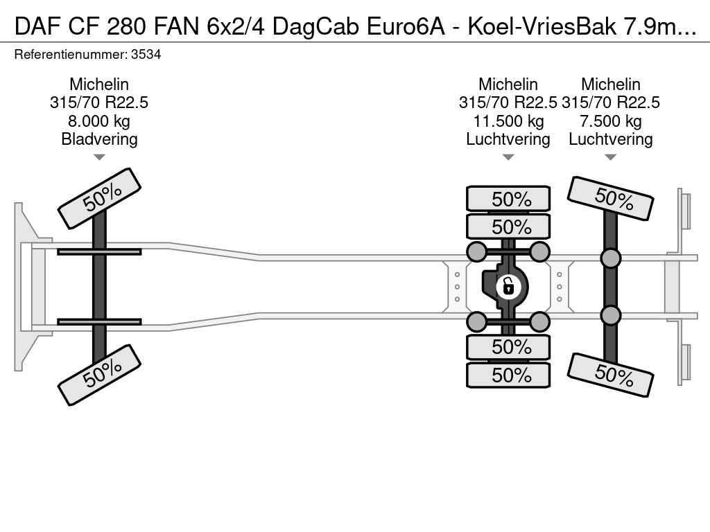 280 FAN 6x2/4 DagCab Euro6A - Koel-VriesBak 7.9m + Carrier Supra 1150MT + Laadklep 2000kg