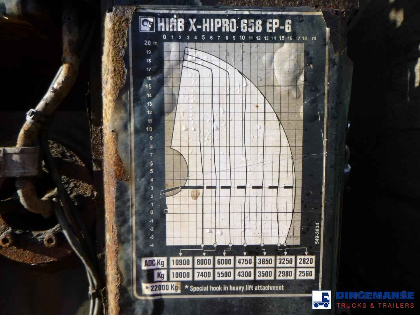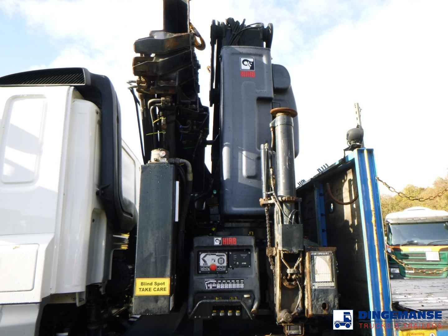NON DUTY FREE VEHICLE, REQUIRES CUSTOMS CLEARANCE // RIGHT-HAND-DRIVE // Hiab X-Hipro EP 6 loading crane, Year of construcion 2016, 6 Hydraulic extensions, Max reach 16.90 meter, Loading capacity 10000 at 5.10 meters, 2560 at 16.90 meters, Hook, Radio control, 4 support legs // Truck 8x2, Euro 6, Adblue, Manual gearbox with 8 gears, Diff lock Steel front suspension, Air rear suspension, VBG hitch, platform dimensions 790x250 cm Loading height 135 cm, Twistlocks for 20 ft, Sleep cabin, 1 bed, Air conditioning, Digital tachograph, RIGHT-HAND DRIVE, Shipment dimensions 1220x250x385 cm