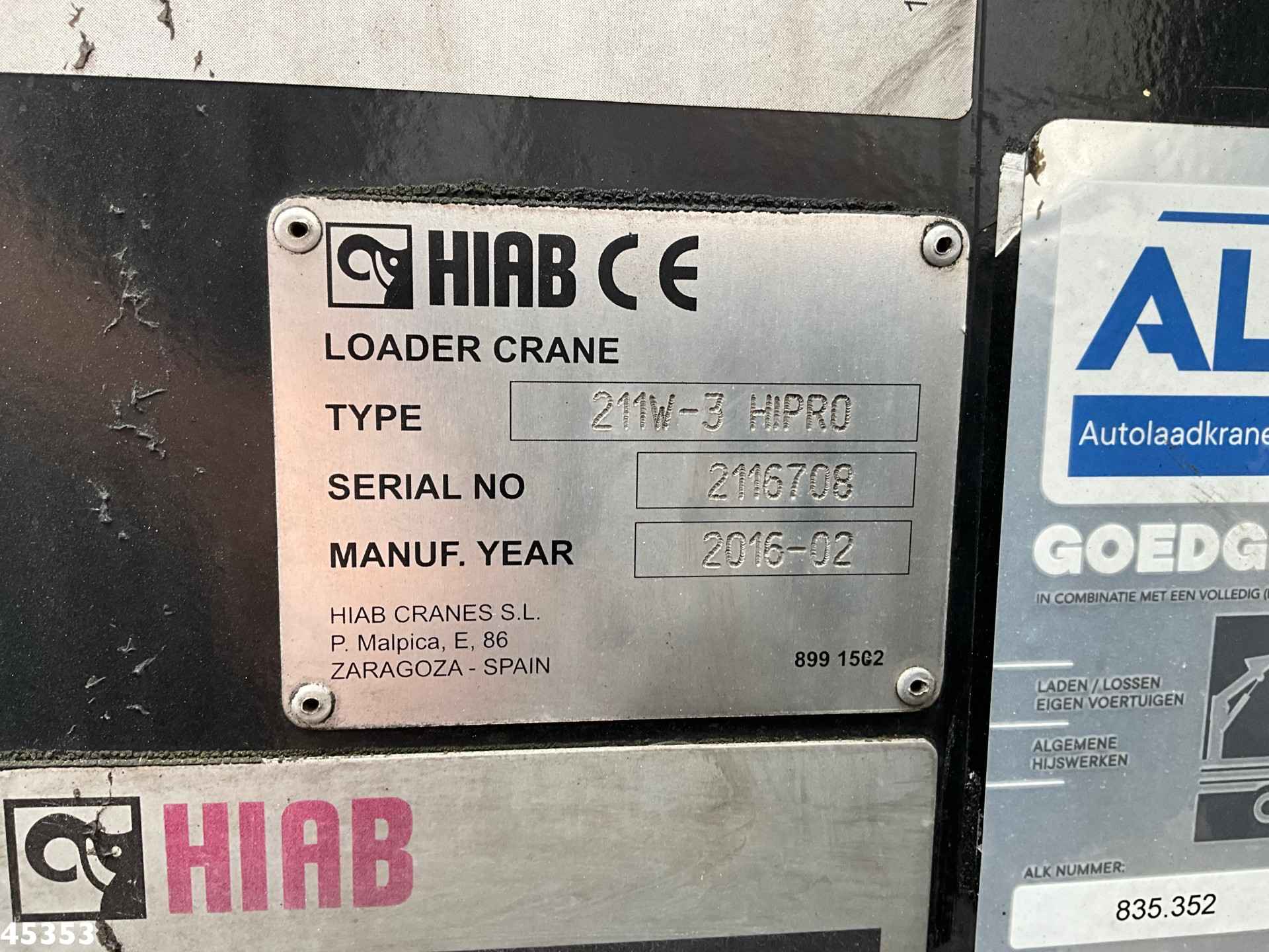 - Hiab 21 Tonmeter laadkraan (type: 211 B-W 3 Hipro)