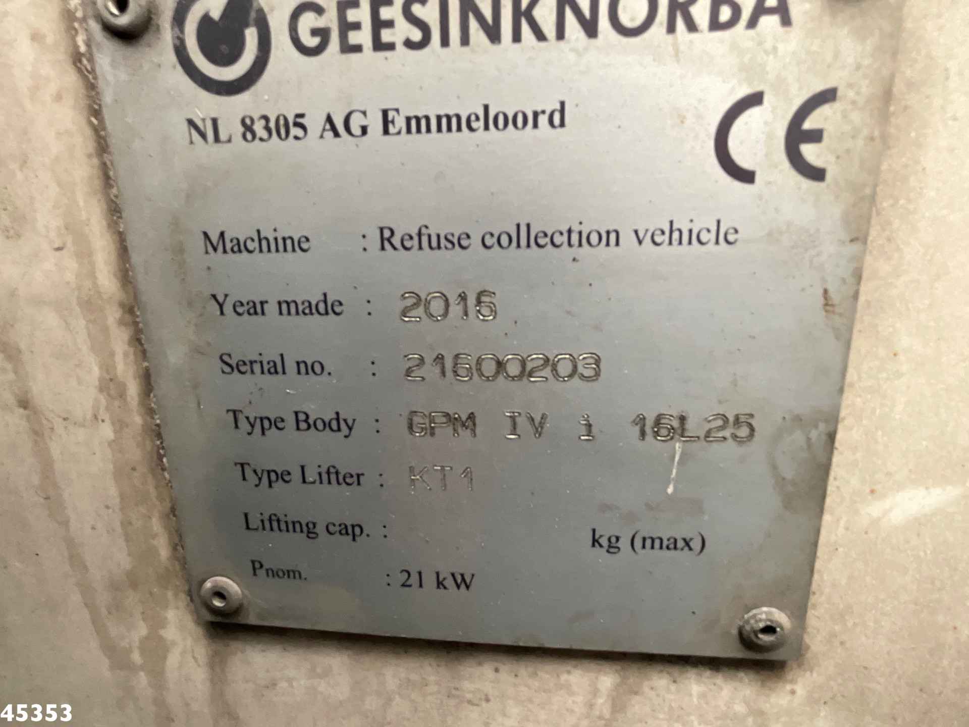 - Opbouw: Geesink (type: GPM IV i 16L25 KT1), 16m³