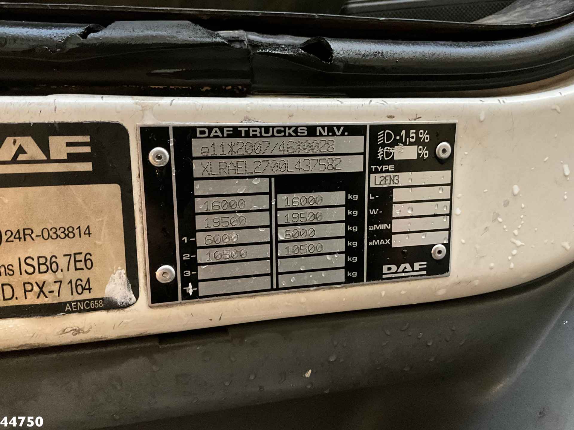 - Afmetingen kipper (inwendig), lengte 505 cm x breedte 213 cm x hoogte 166 cm