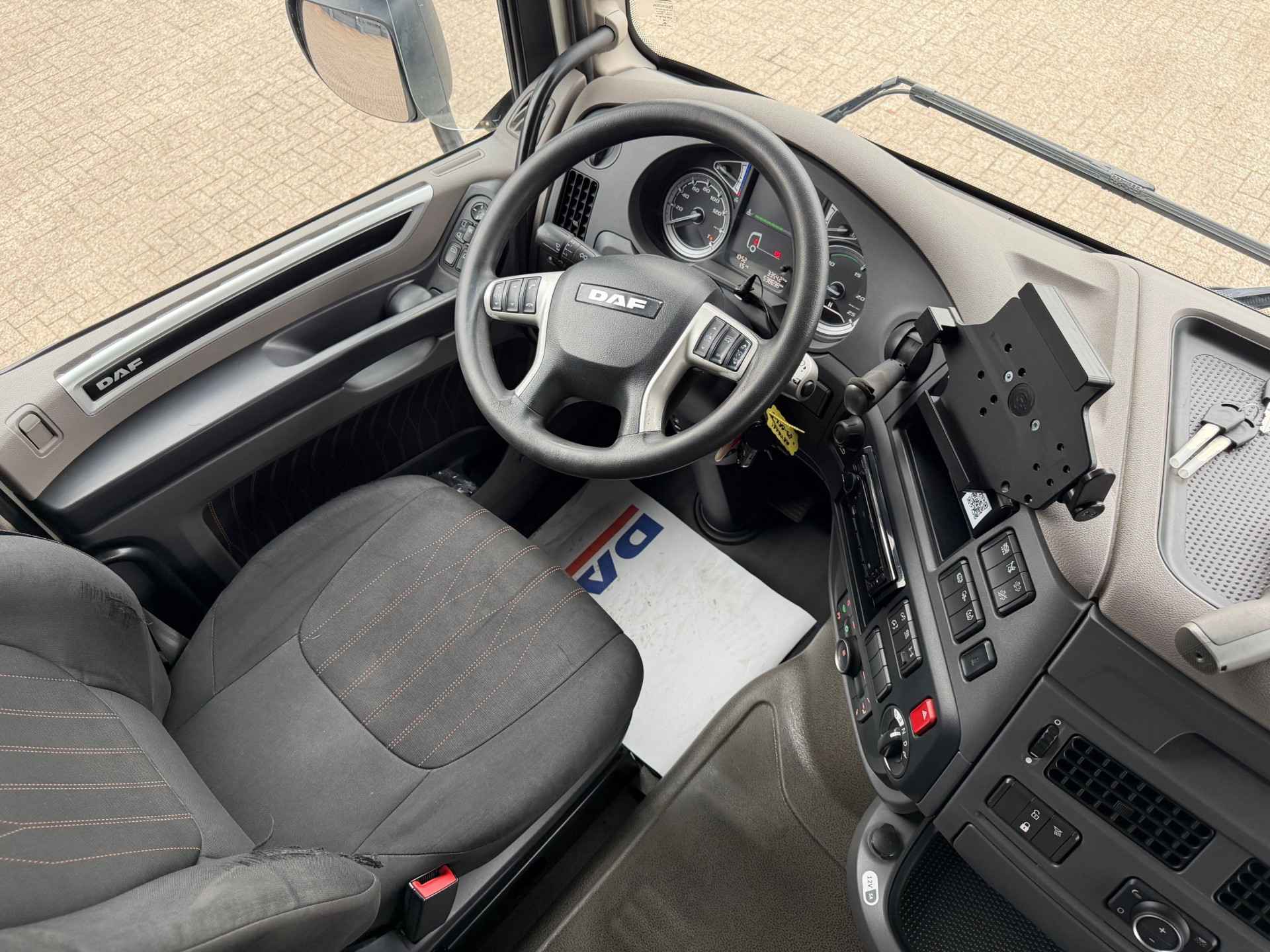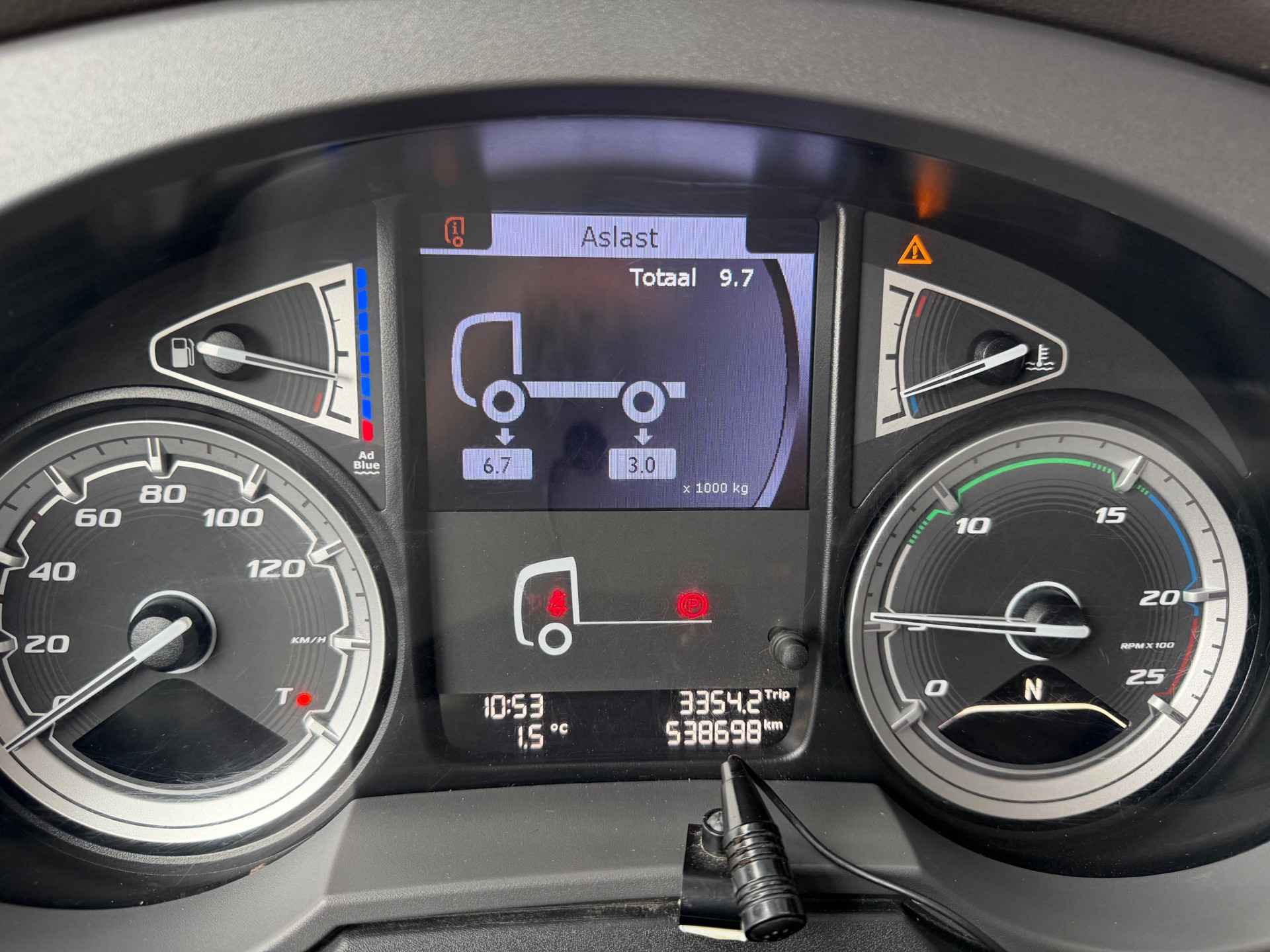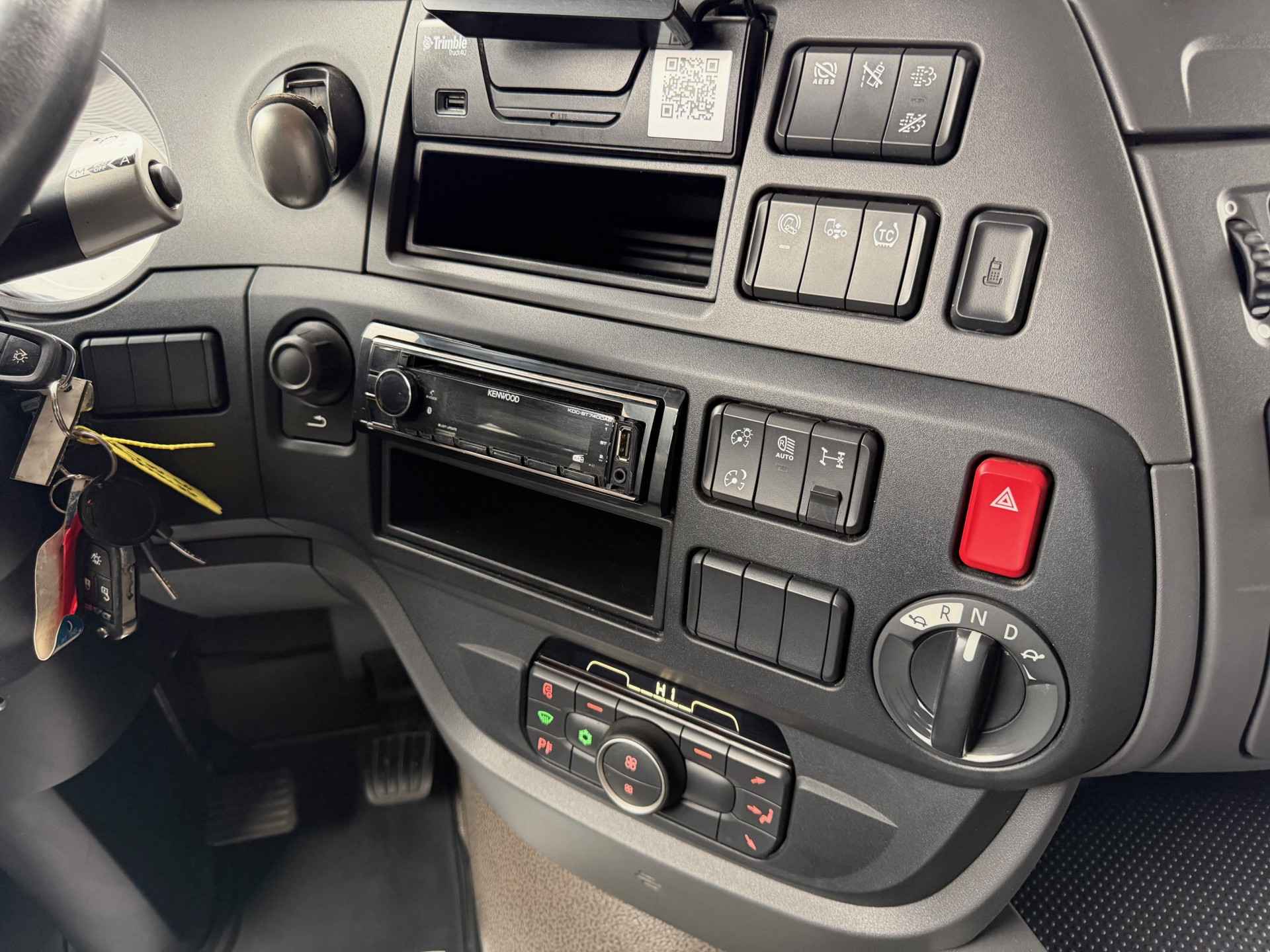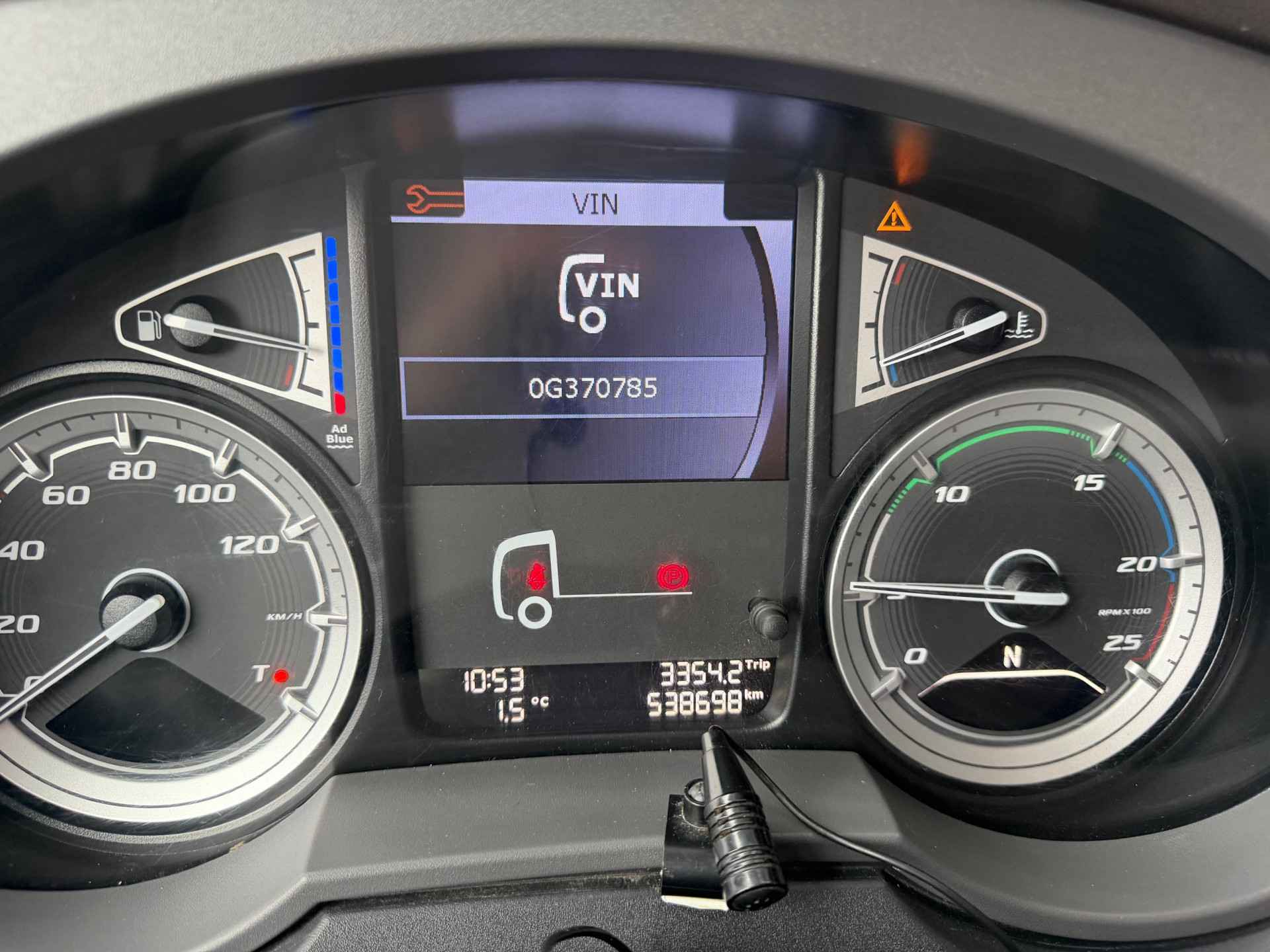 Toepassingscondities 00105 type FT 00130 4x2E 01563 voertuig 07932 Voertuigserie XFH 01792 Civiele uitvoering 01212 Motorprojectuitvoering 10.673/74 01401 productie Fully Built Up (FBU) 03840 Trekker 00013 Normale versie 06010 On-road-voertuig 09003 Applicatieklasse 0 09985 Standaard geluidsniveau 09041 Cabinebreedte 2550 mm 06586 Projectuitvoering 10.308 04930 Standaard voertuigspecificatie 00805 Maximale omgevingstemperatuur 38 graden 09945 Luchtfilter met enkelvoudig element 02412 Luchtinlaat hoog 07777 Geen voorbereiding voor motorverwarming 03647 Luchtinlaat hoog 06612 Geen anti-stofschild 08219 Zonder koelwaterfilter 01010 Zonder oliekoeler versnellingsbak 07450 On-road-software 04080 Geen tachograaf-activatie 07182 Verwarmd brandstofvoorfilter 08592 Brandstofvoorfilter 09860 Geen connector motortoerentalregeling op chassis 09670 Geen CAN-connector 08183 RDS-nummer 662 07903 VDS-code: TEH430 04218 Voertuigassemblage Eindhoven Aandrijflijn 07100 Standaard transport, Full-versie 07600 Motor MX-13 03600 Uitlaatemissie Euro 6 00340 Motorterugregeling 09835 Basismotor Normal Duty 04801 Motor 355 kW (483 pk) 07110 Eco-performance 01553 Motorstop na stationair draaien, 5 minuten 07641 Waterpomp, tweetraps 07102 Geautom. versn.bak, TraXon, 12 versnellingen 02313 Versnellingsbak prise-directe 07955 Versnellingsbak TraXon, 12 versnellingen, 12TX2210 07690 Versnellingsbak TraXon 08430 Bediening versnellingsbak TraXon 07604 Overbreng.verh. versn.bak 16,69-1,00 02030 Aandrijfas, Normal Duty 02871 Geautomat. vers.bak met handm. bed. - Full-versie 09360 Zonder koppelingsbescherming 01555 Zonder naafreductie 09303 Achterasverhouding 2,21 03721 ASR 01870 OBD, Euro VI stap D 03630 Motorvermogen tot en met 355 kW, MX-13 01797 12 versnellingen TraXon 12TX2210 DD, 16,69-1,00 01737 MX-13-motor, 355 kW/483 pk Embl. op cabine: 480 Cabine-interieur 01846 Stuur links (LHD) 09270 Soft grip-stuurwiel, kleur zwart 03601 Veiligheidsgordels, zwart 04840 Dakluik eenmalig gebruik voorber. voor standkoeler 09948 Geen standairco 07733 Chauffeursstoel: Luxury Air 03402 Voorbereiding voor luchtpistool 07740 Bijrijdersstoel: basis 07130 Bijrijdersstoel vast 08880 Portierbekleding: zacht geweven materiaal 07151 Kleur afwerking cabine-interieur Dark Sand 08660 Decoratie cabine-interieur Delta zwart 01974 Geen rolgordijn bijrijderszijde 07773 Standverwarming (water) 06197 Timer voor standverwarming 01245 Airconditioning 09660 Handbediend dakluik 06784 Matras onderste bed Xtra Comfort 01177 Bagagedrager 09603 Onderbed met lade 65 liter 01079 Automatische temperatuurregeling en airco 08771 Vangnet bij bovenste bed/bagagedrager 06340 Gordijnen, met scheidingsgordijn 09541 Met armsteun chauffeursstoel 06539 Koellade 02080 Geen armsteun bijrijdersstoel 08160 Twee contactsleutels 02851 Accessoirevoeding: standaard + 2x 40 A 06675 Geen PL-verlichting in cabine 07608 ECAS-afstandsbediening met uitgebreide functies 06716 standverwarming 06738 Standverwarming, water 06717 zonder standverwarming lucht 09731 Automatische temperatuurregeling 02288 Standverwarming met restwarmtepomp en timer Chassis 00858 Wielbasis 3,80 m 03891 Wielbasis 3,80 m / achteroverbouw 0,75 m 06379 Langsligger 6,0 mm, zonder versterking 06490 Onderrijbeveiliging vóór (FUP) 06330 Spatschermen achter 01179 Standaard opstelling componenten 07728 Bordes met opstap, extra lang plus 07050 Opstap bordes, links 01046 Eenkringsstuurinrichting 00952 Euro-stuurcertificaat 06332 Antispatwatermatten 07053 Werklamp, LED 03161 Accubak horizontaal, rechts 07790 Accubak aan zijkant chassis 08641 Aluminium luchtketels 07061 Tank voor AdBlue® 90 l, op linkerspatscherm 02500 Tank voor AdBlue® 90 liter 07510 Tank voor AdBlue® boven spatscherm 03174 Brandstoftank 1x845 liter met opstap 07970 Brandstoftank links 09633 Brandstoftank aluminium, hoogte 620 mm 04021 Opstap voor bordes in brandstoftank 02009 Zonder reservewieldrager 09390 enkele brandstoftank 03623 Zonder wielkeggen 04649 Zonder achterlichtsteunen 04220 EAS-unit aan de rechterzijde 03322 Achterlicht met lampen 07190 DPF aan de rechterzijde 06610 Uitlaatpijp horizontaal, laag 03051 Hor. accubak rechts, geen reservewieldrager 09867 Onderrijbeveiliging vóór, hoogte 365 mm 00391 Langsligger 260/6,0 mm, zonder versterking 03473 Alu. brandstoftank 845 l met opstap, hoogte 620 mm Wielophanging en assen 01448 enkele vooras 01452 enkele achteras 09927 Totaalaantal voor- en achterassen: 2 07444 Geen E-tron hydraulische stuurinrichting 01800 Achteras SR1344 01778 Achteraslast 13,00 t 09858 Toespoor vooras standaard 08191 Aslastbewaking 04769 1ste arm hoogte 84.5mm 09805 Camberafstelling voor normaal wegoppervlak 09823 Eerste vooras 163N 01954 Vooraslast 8,00 t 03278 1ste arm lengte 270 06746 vooras standaard 02168 ECAS 03421 Achterwielophanging met stabilink 01591 Paraboolvering voor 01372 Luchtvering achter 06128 Eén rijhoogtestand, standaard hoogte 08805 Zonder hefinrichting 00220 bladvering voor 00281 luchtvering achter 02472 Vóór: 8,00 t, paraboolvering, 163N 03575 Achter: 13,00 t, luchtvering, SR1344 08039 Vooras 1, 8000 kg, bandenlastindex 156 08115 Achteras 1, 13.000 kg, bandenlastindex 149 Opbouw en voorbereidingen voor het opbouwen 09200 Chassisvoorbereiding standaard 00761 Zonder connector motortoerentalregeling 08425 Geen aftermarketschakelaars 07820 Geen sign. en waarsch. vd opbouw vaste bedrading 06691 Applicatieconnector aan de voorzijde van de cabine 09560 Geen CAN-functies in applicatieconnector 08120 Geen laadkleptoepassing 09650 Geen opbouwmodule 04920 Geen ECAS op eindaanslag bij ingeschakelde PTO 09044 Geen ECAS tijdelijk uitgeschakeld bij PTO AAN 09760 Zonder connector voor motortoerentalregeling Kleuren 03708 Chassis kleur grijs 01162 Cabinekleur H3279 Brilliant White 07143 Hoog dak niet in kleur 07620 Deurgreep en sierrand zwart 07244 Kleur hoekspoilers: Brilliant White 07802 Opstaptreden en wing Stone Grey 07481 Onderste opstap cabine Brilliant White 06157 Koplamppaneel en bumper: Brilliant White 0