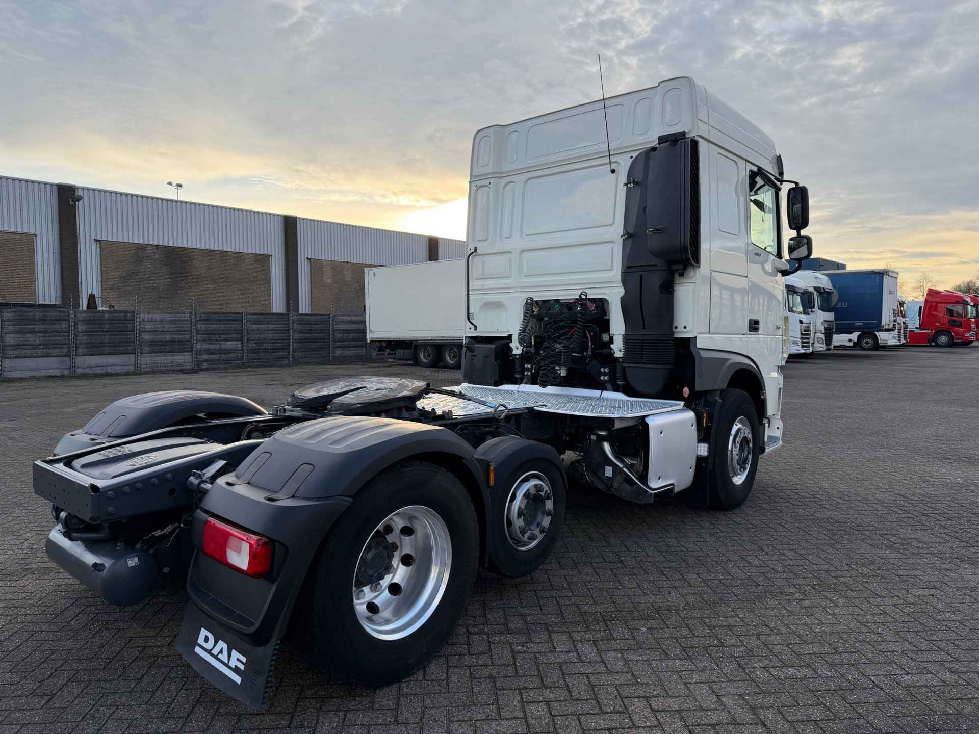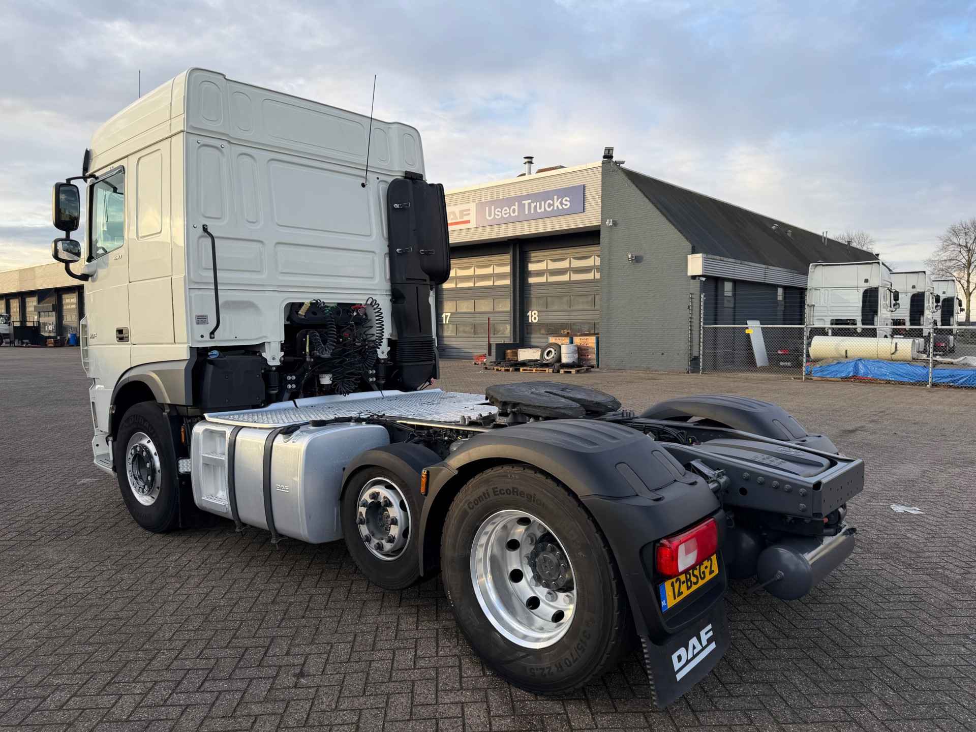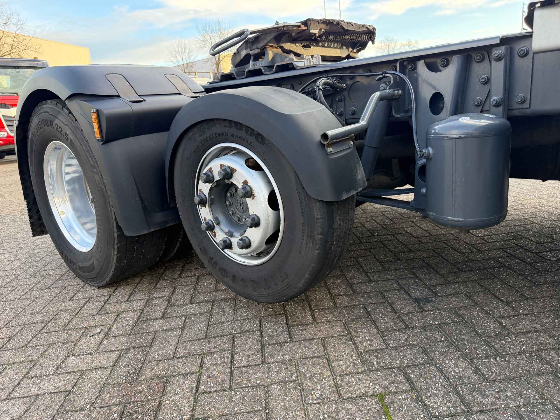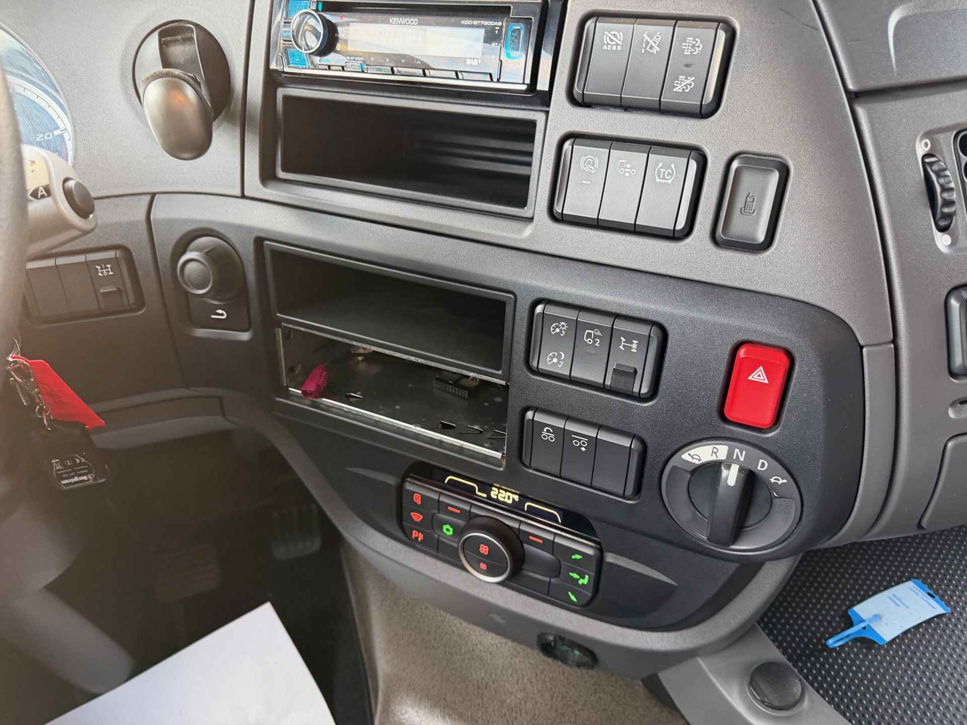 Toepassingscondities 04283 type FTP 04278 6x2P 01563 voertuig 07932 Voertuigserie XFH 01792 Civiele uitvoering 01212 Motorprojectuitvoering 10.673/74 01401 productie Fully Built Up (FBU) 03840 Trekker 00013 Normale versie 06010 On-road-voertuig 09003 Applicatieklasse 0 09985 Standaard geluidsniveau 09041 Cabinebreedte 2550 mm 06586 Projectuitvoering 10.308 04930 Standaard voertuigspecificatie 00805 Maximale omgevingstemperatuur 38 graden 09945 Luchtfilter met enkelvoudig element 02412 Luchtinlaat hoog 07777 Geen voorbereiding voor motorverwarming 03647 Luchtinlaat hoog 06612 Geen anti-stofschild 08219 Zonder koelwaterfilter 01010 Zonder oliekoeler versnellingsbak 07450 On-road-software 04080 Geen tachograaf-activatie 07180 Geen brandstofvoorfilter 08591 Geen brandstofvoorfilter 09860 Geen connector motortoerentalregeling op chassis 09670 Geen CAN-connector 08194 RDS-nummer 664 07911 VDS-code: TGH430 04218 Voertuigassemblage Eindhoven Aandrijflijn 07100 Standaard transport, Full-versie 07600 Motor MX-13 03600 Uitlaatemissie Euro 6 00340 Motorterugregeling 09835 Basismotor Normal Duty 04801 Motor 355 kW (483 pk) 07110 Eco-performance 01553 Motorstop na stationair draaien, 5 minuten 07641 Waterpomp, tweetraps 07102 Geautom. versn.bak, TraXon, 12 versnellingen 02313 Versnellingsbak prise-directe 07955 Versnellingsbak TraXon, 12 versnellingen, 12TX2210 07690 Versnellingsbak TraXon 08430 Bediening versnellingsbak TraXon 07604 Overbreng.verh. versn.bak 16,69-1,00 02030 Aandrijfas, Normal Duty 02871 Geautomat. vers.bak met handm. bed. - Full-versie 09360 Zonder koppelingsbescherming 01555 Zonder naafreductie 09303 Achterasverhouding 2,21 03721 ASR 01870 OBD, Euro VI stap D 01994 Wegrijhulp 15,0 t 03630 Motorvermogen tot en met 355 kW, MX-13 01797 12 versnellingen TraXon 12TX2210 DD, 16,69-1,00 01737 MX-13-motor, 355 kW/483 pk Embl. op cabine: 480 13776 Met mechanische differentieelblokkering Cabine-interieur 01846 Stuur links (LHD) 09270 Soft grip-stuurwiel, kleur zwart 03601 Veiligheidsgordels, zwart 04840 Dakluik eenmalig gebruik voorber. voor standkoeler 09948 Geen standairco 07733 Chauffeursstoel: Luxury Air 03402 Voorbereiding voor luchtpistool 07740 Bijrijdersstoel: basis 07130 Bijrijdersstoel vast 08880 Portierbekleding: zacht geweven materiaal 07151 Kleur afwerking cabine-interieur Dark Sand 08660 Decoratie cabine-interieur Delta zwart 01974 Geen rolgordijn bijrijderszijde 07773 Standverwarming (water) 06197 Timer voor standverwarming 01245 Airconditioning 09660 Handbediend dakluik 06784 Matras onderste bed Xtra Comfort 01177 Bagagedrager 09603 Onderbed met lade 65 liter 01079 Automatische temperatuurregeling en airco 08771 Vangnet bij bovenste bed/bagagedrager 06340 Gordijnen, met scheidingsgordijn 09541 Met armsteun chauffeursstoel 06539 Koellade 02080 Geen armsteun bijrijdersstoel 08160 Twee contactsleutels 02851 Accessoirevoeding: standaard + 2x 40 A 06675 Geen PL-verlichting in cabine 07608 ECAS-afstandsbediening met uitgebreide functies 06716 standverwarming 06738 Standverwarming, water 06717 zonder standverwarming lucht 09731 Automatische temperatuurregeling 02288 Standverwarming met restwarmtepomp en timer 12979 Raambediening: elektrisch 13603 Pollenfilter Chassis 00859 Wielbasis 3,85 m 04266 Wielbasis 3,85 m / achteroverbouw 0,99 m 06379 Langsligger 6,0 mm, zonder versterking 06490 Onderrijbeveiliging vóór (FUP) 06330 Spatschermen achter 01179 Standaard opstelling componenten 07728 Bordes met opstap, extra lang plus 07050 Opstap bordes, links 01046 Eenkringsstuurinrichting 00952 Euro-stuurcertificaat 06332 Antispatwatermatten 07053 Werklamp, LED 03531 Accubak in de achteroverbouw 07791 Accubak in de achteroverbouw 08640 Stalen luchtketels 07061 Tank voor AdBlue® 90 l, op linkerspatscherm 02500 Tank voor AdBlue® 90 liter 07510 Tank voor AdBlue® boven spatscherm 04165 Brandstoftank 1x 605 liter met opstap 07970 Brandstoftank links 09634 Brandstoftank aluminium, hoogte 700 mm 04021 Opstap voor bordes in brandstoftank 02009 Zonder reservewieldrager 09390 enkele brandstoftank 03623 Zonder wielkeggen 04649 Zonder achterlichtsteunen 04220 EAS-unit aan de rechterzijde 03322 Achterlicht met lampen 07190 DPF aan de rechterzijde 06610 Uitlaatpijp horizontaal, laag 03094 Accu's in achteroverbouw, geen reservewieldrager 09867 Onderrijbeveiliging vóór, hoogte 365 mm 00391 Langsligger 260/6,0 mm, zonder versterking 04209 Alum. brst.tank 605 l met opstap, hoogte 700 mm. Wielophanging en assen 01418 voor-+ naloopas 01452 enkele achteras 09928 Totaalaantal voor- en achterassen: 3 07444 Geen E-tron hydraulische stuurinrichting 01800 Achteras SR1344 04254 Achteraslast 11,50 + 4,40 t 02047 Aslastbegrenzer 11,5 t 09858 Toespoor vooras standaard 04228 Aslastverhouding 11,5/4,4 08191 Aslastbewaking 04769 1ste arm hoogte 84.5mm 09805 Camberafstelling voor normaal wegoppervlak 03070 Eerste vooras 165N 01954 Vooraslast 8,00 t 03278 1ste arm lengte 270 06746 vooras standaard 04107 Tweede vooras 09N044 02168 ECAS 03421 Achterwielophanging met stabilink 04094 Handbediende regeling hefinrichting 01591 Paraboolvering voor 01372 Luchtvering achter 06128 Eén rijhoogtestand, standaard hoogte 02806 hefinrichting 00220 bladvering voor 00281 luchtvering achter 04813 Vóór: 8,00 t, paraboolvering, 165N 03775 Achter: 11,50 + 4,40 t, luchtvering, SR1344 08039 Vooras 1, 8000 kg, bandenlastindex 156 08147 Vooras 2, 4400 kg, bandenlastindex 136 08078 Achteras 1, 11.500 kg, bandenlastindex 145 Kleuren 03708 Chassis kleur grijs 01162 Cabinekleur H3279 Brilliant White 07143 Hoog dak niet in kleur 07620 Deurgreep en sierrand zwart 07244 Kleur hoekspoilers: Brilliant White 07802 Opstaptreden en wing Stone Grey 07481 Onderste opstap cabine Brilliant White 06157 Koplamppaneel en bumper: Brilliant White 07246 Spiegelkappen zwart bij cabinekl. Brilliant White 31491 Zonder kenmerk: kleur dakspoiler 31496 Zonder kenmerk: Kleur van fenders 07323 Luchtinlaat, greep en spiegelkappen zwart 00755 Onderste opstap BW, opstapbak me