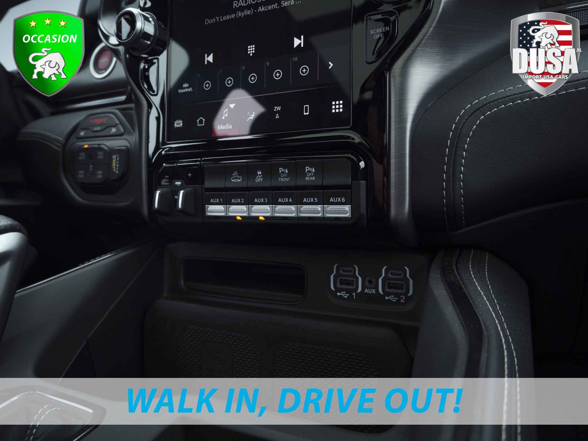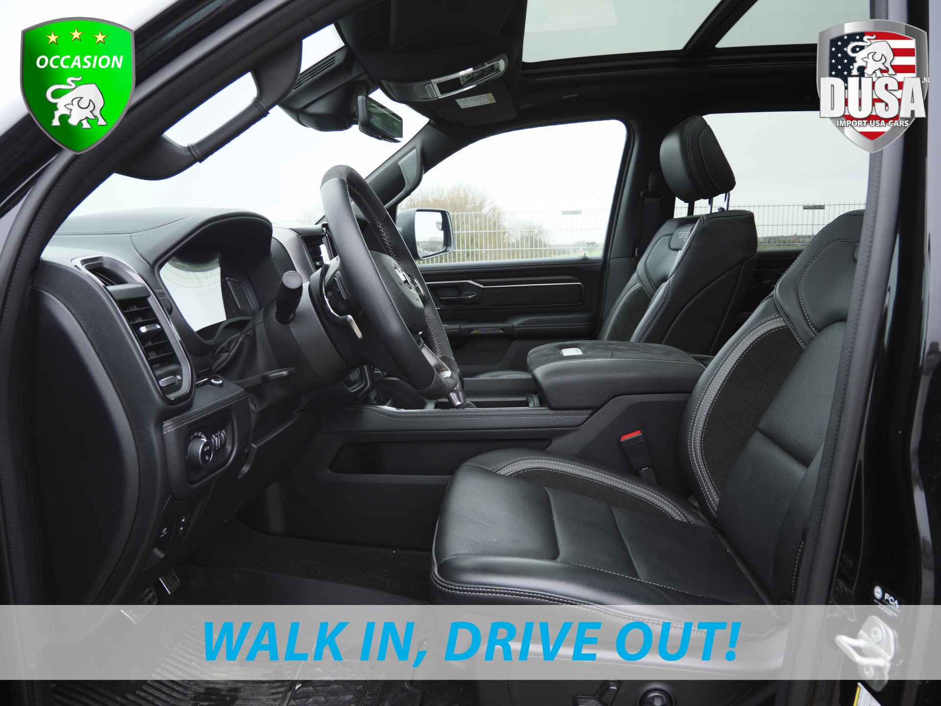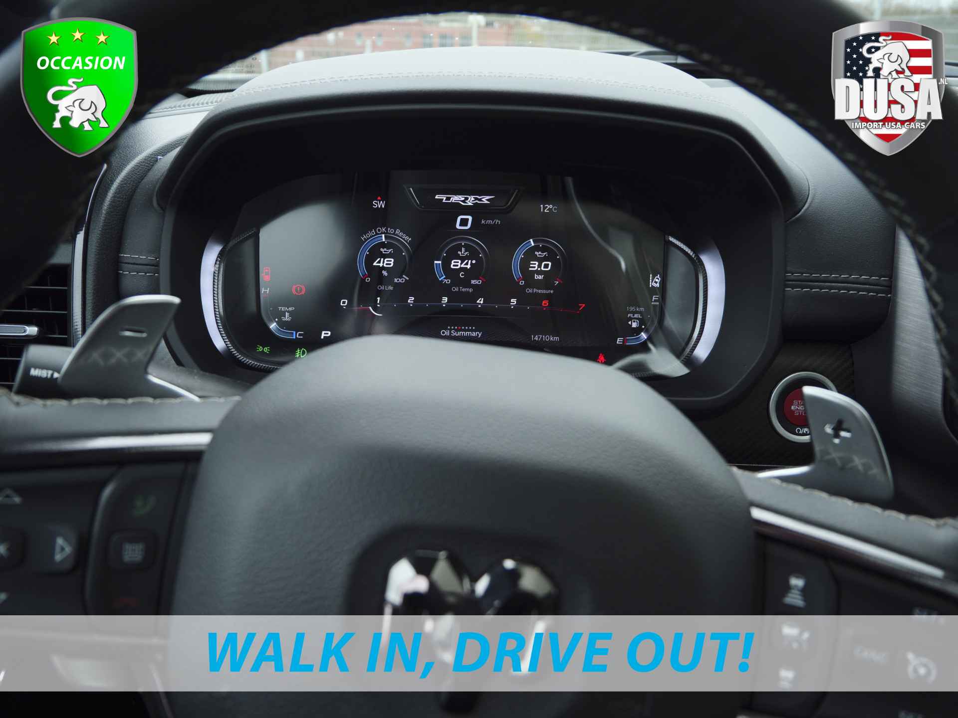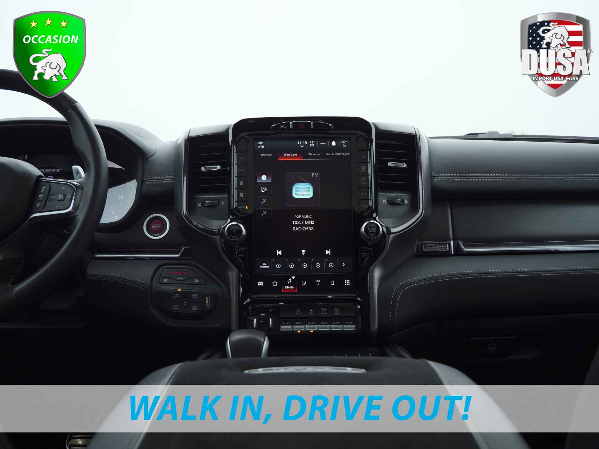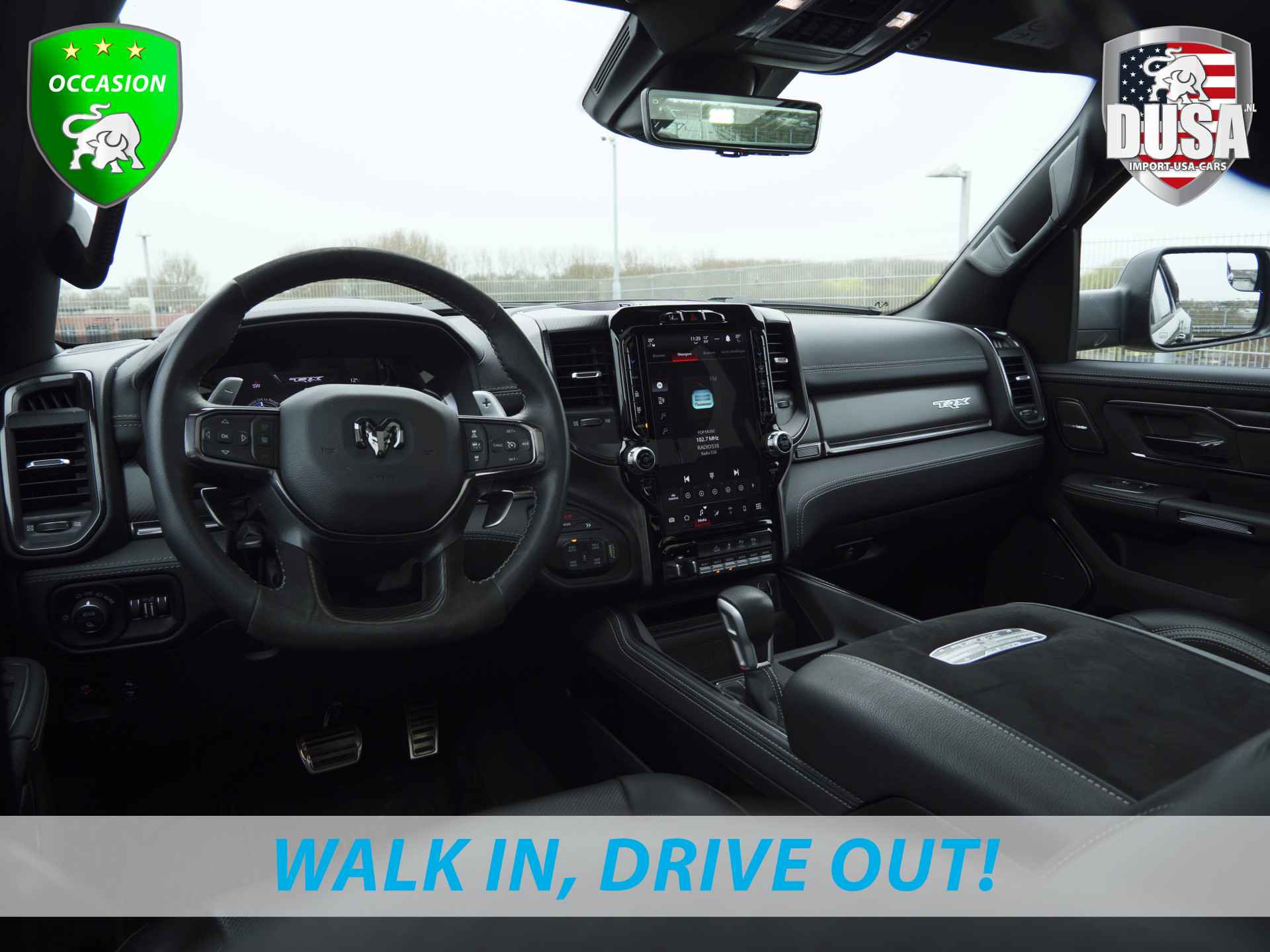Deze zeer gunstig geprijsde RAM TRX is zonder overdrijven echt een fantastische occasion. Deze auto uit 2024 heeft nauwelijks gereden, met een tellerstand van slechts 14000 kilometer. Dankzij de achtcilinder benzinemotor en de automatische transmissie, is het autorijden snel en comfortabel. Houdt u van een luxe uitstraling? Dan is het lederen interieur een heel aantrekkelijke extra! De verwarmbare voorstoelen zijn een heerlijke extra optie, waarmee u uzelf en uw bijrijder een groot plezier doet. Wat een licht geeft dat glazen elektrisch bedienbare panoramadak. Ook op de achterbank kunnen passagiers zichzelf snel opwarmen dankzij de achterbankverwarming. Tot de voorzieningen van deze auto behoren 20 inch lichtmetalen velgen, LED koplampen, geluidsisolerende ramen, in delen neerklapbare achterbank, treeplanken en LED-achterlichten.