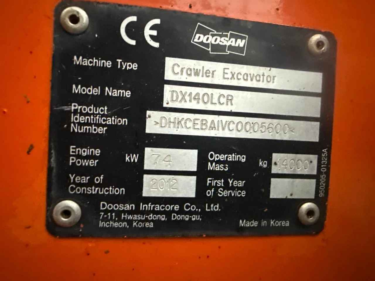 Doosan DX140LCR 2012 5330 hours 14000 kg 74 kW Extra hydraulic function Hydraulic quick coupler MS10 1x Bucket 80cm