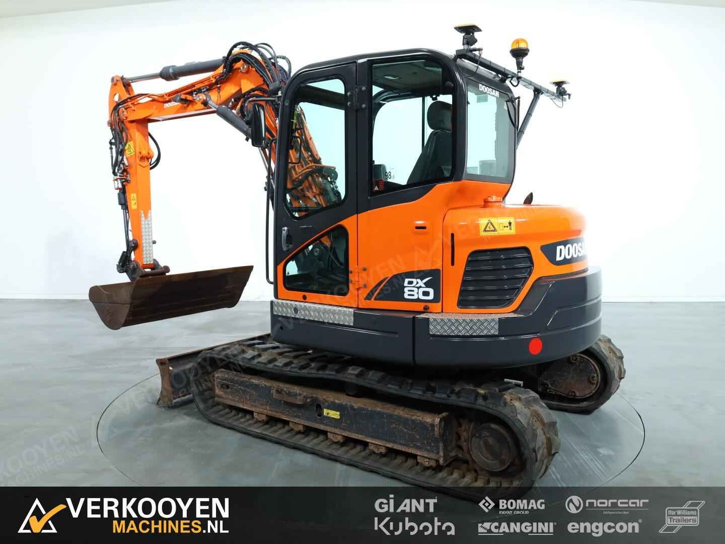 Algemeen Status: Gebruikt Opties Standaard voorzien van: Werkverlichting Extra opties: Zwaailamp Rijwerk Aandrijving: Rupsen Gebruikte Doosan DX80R + Topcon GPS X53i 3D GPS systeem
