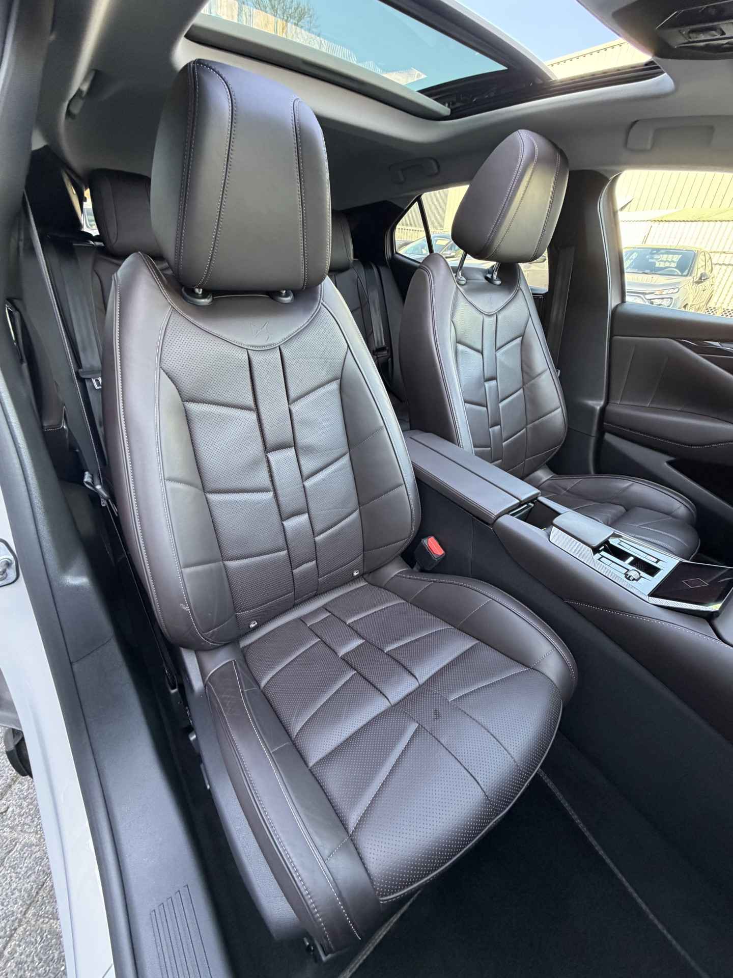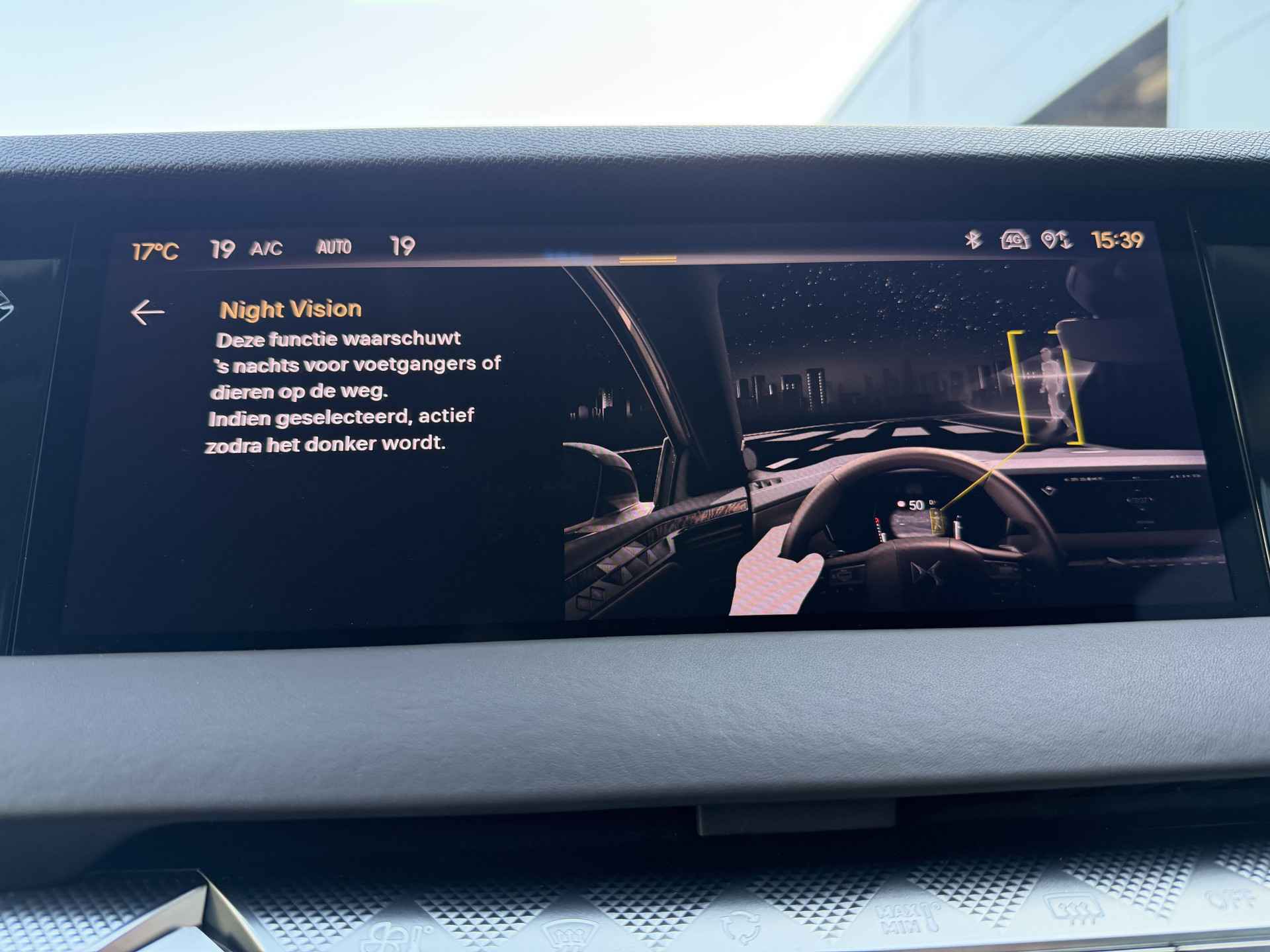 Deze DS is voorzien van verschillende intelligente veiligheidsvoorzieningen. Ze kijken tijdens het rijden als het ware met u mee, ze signaleren potentieel gevaarlijke situaties en in een aantal gevallen kunnen ze ook ingrijpen. U verliest de weg geen seconde uit het oog. De dashboardinfo wordt in uw zichtveld geprojecteerd door de head-up display. Dat de auto steeds meer taken van de bestuurder overneemt, merkt u bijvoorbeeld aan het systeem voor verkeersbord-detectie in deze auto. Keep your lane? Het Lane-keeping systeem zorgt er automatisch voor. Dankzij veiligheidsvoorzieningen als dodehoekdetectie, nachtzichtassistentie, hill hold functie, vermoeidheidsherkenning, autonoom remsysteem en bandenspanningcontrolesysteem, bent u steeds veilig onderweg.