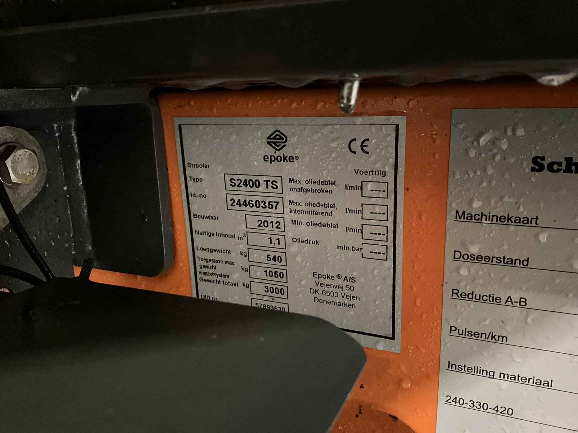 - Epoke (type S 2400 TS) zoutstrooier - Inhoud 1,1 m³ - Inhoud zoutoplossing circa 2 x 500 Liter - Inclusief controle unit t.b.v besturing vanuit cabine - Trekhaak - Dissellengte 130 cm - Ex-gemeente zoutstrooier!