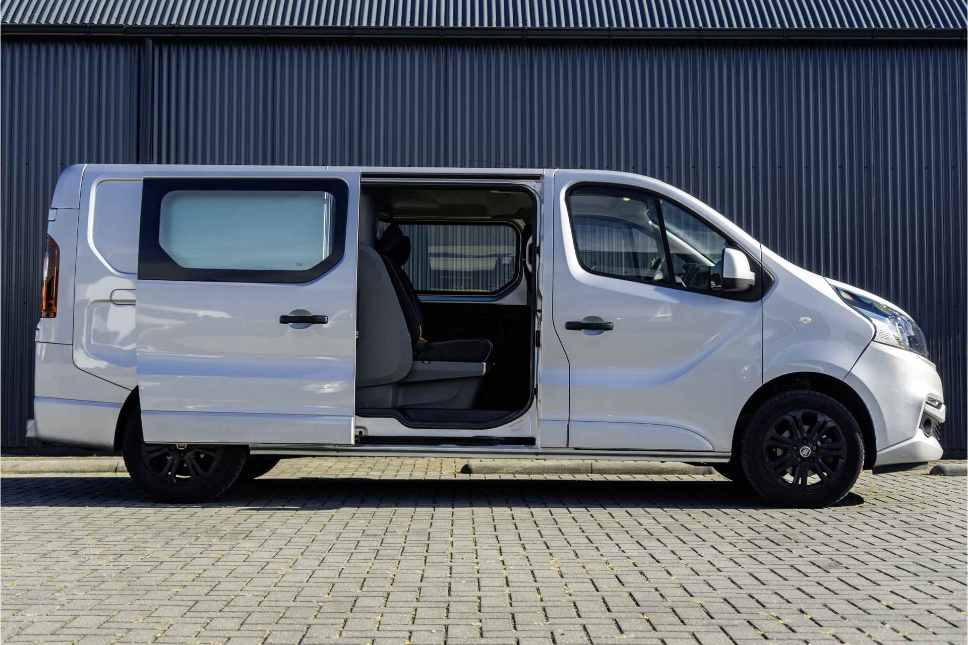 NAP: Logisch. Bandenprofiel: Voor 5 mm en Achter 6 mm. Aantal sleutels: 2. Deze sportief ogende en luxe verlengde Fiat Talento is de ideale keuze voor wie ruimte en comfort nodig heeft. Met een dubbele cabine biedt deze Talento plaats aan maar liefst 5 personen, perfect voor zowel werk als privégebruik. De auto heeft slechts 98,614 verreden kilometers en wordt geleverd met een logisch verklaarbare Nationale Autopas, wat zijn betrouwbaarheid onderstreept.