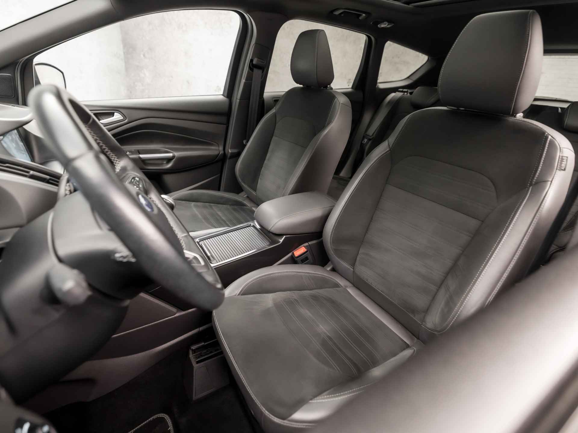 U rijdt gemakkelijk, comfortabel en zonder zorgen met deze Ford Kuga. Het is een auto van het bouwjaar 2017. De krachtige benzinemotor van deze auto is gekoppeld aan een handgeschakelde zesversnellingsbak. In de guurste maanden is de meegeleverde stoelverwarming een absolute weldaad! Het glazen panoramadak zorgt voor een onovertroffen uitzicht. Als u de stuurverwarming inschakelt, geniet u van weldadige warmte voor uw handen en vingers. Bij de rijke uitrusting horen ook 18 inch lichtmetalen velgen, sportonderstel, halflederen bekleding, LED-dagrijverlichting, zwarte hemelbekleding en donker getint glas achter.