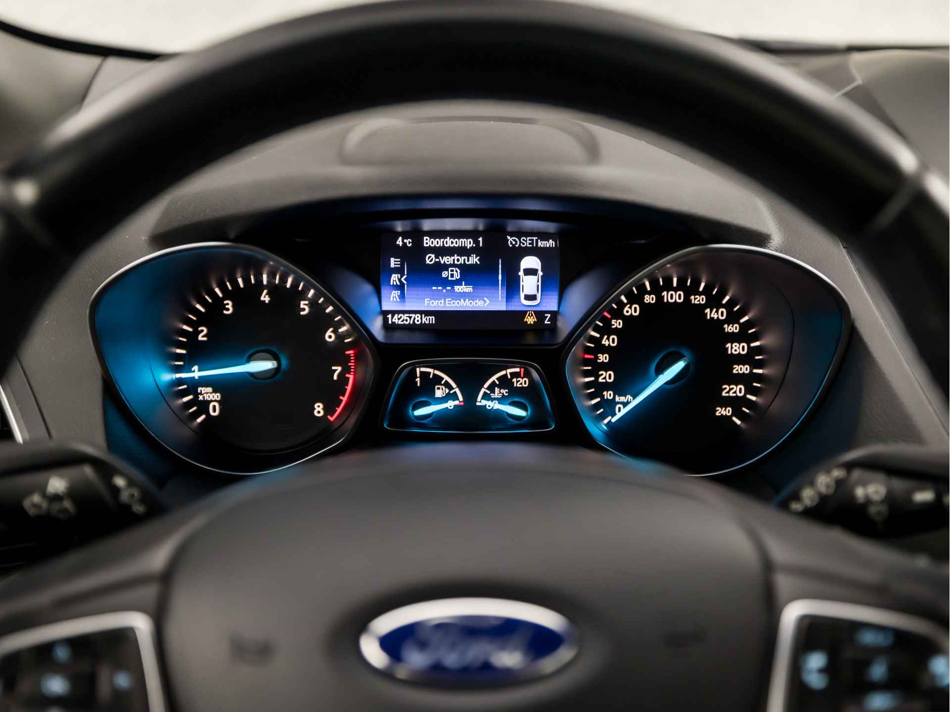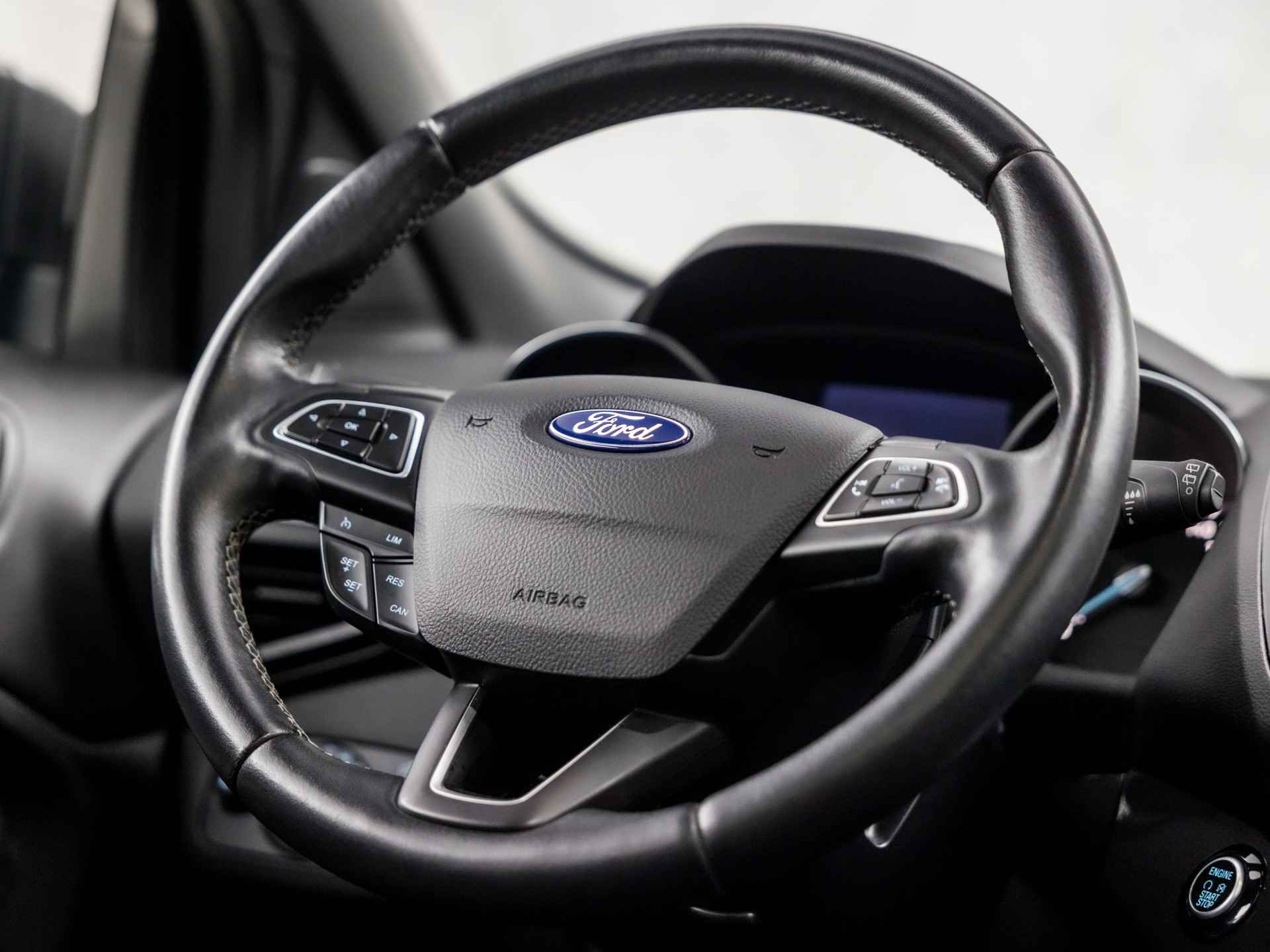 Als u regelmatig met een aanhanger of een fietsendrager op pad bent, is de afneembare trekhaak een praktische extra. Tijdens de rit bedient u het audio-installatiesysteem en het navigatiesysteem met de knoppen op het stuur of met uw stem. Automatische airconditioning verwarmt of koelt het interieur met een druk op de knop. Inparkeren zonder angst voor schade. De parkeersensoren helpen u om moeiteloos in de kleinste parkeervakken te manoeuvreren. De auto neemt u werk uit handen doordat hij zelf veel in de gaten houdt. Een regensensor en een automatisch inschakelbare verlichting nemen waar wanneer de ruitenwissers en het licht aan moeten. De Ford is standaard voorzien van: cruise control, automatisch dimmende binnenspiegel, isofix-aansluiting, centrale deurvergrendeling met afstandsbediening, bagage afdekhoes en boordcomputer.
