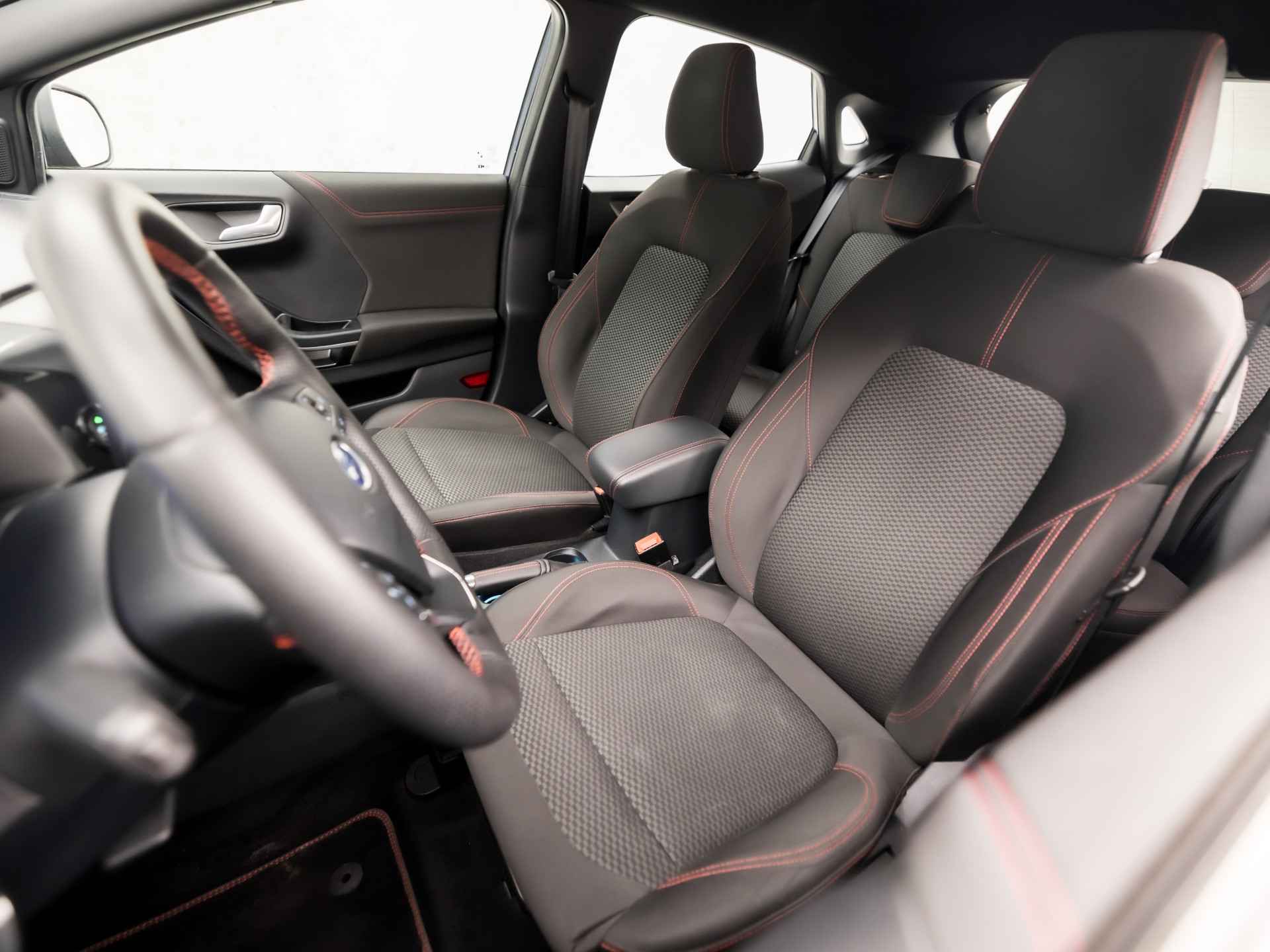 Pragmatisch en veilig als deze auto is, beschikt hij over diverse veiligheidssystemen. De actuele snelheidslimiet, een inhaalverbod en andere verkeersborden. De verkeersborddetectie ondersteunt u tijdens elke rit. Deze Ford Puma is ook behulpzaam als het gaat om een rechte koers. Het Lane-keeping systeem signaleert en corrigeert als u onbedoeld de rijstrooklijnen dreigt te overschrijden. Veel aanrijdingen bestaan uit kop-staartbotsingen. De forward collision warning reduceert dat risico aanzienlijk. In deze Ford vinden we verder een hill hold functie, brake assist en bandenspanningcontrolesysteem.