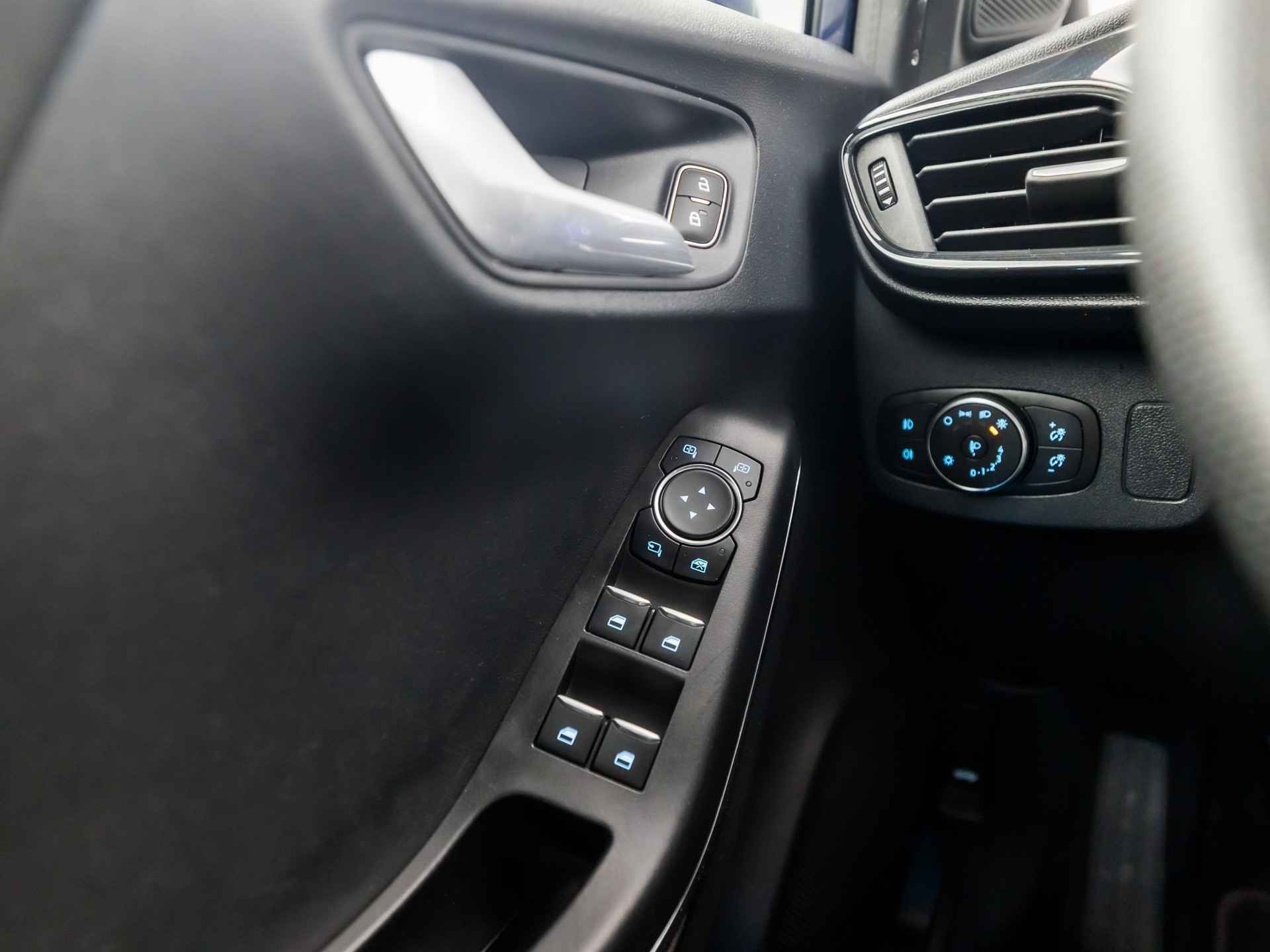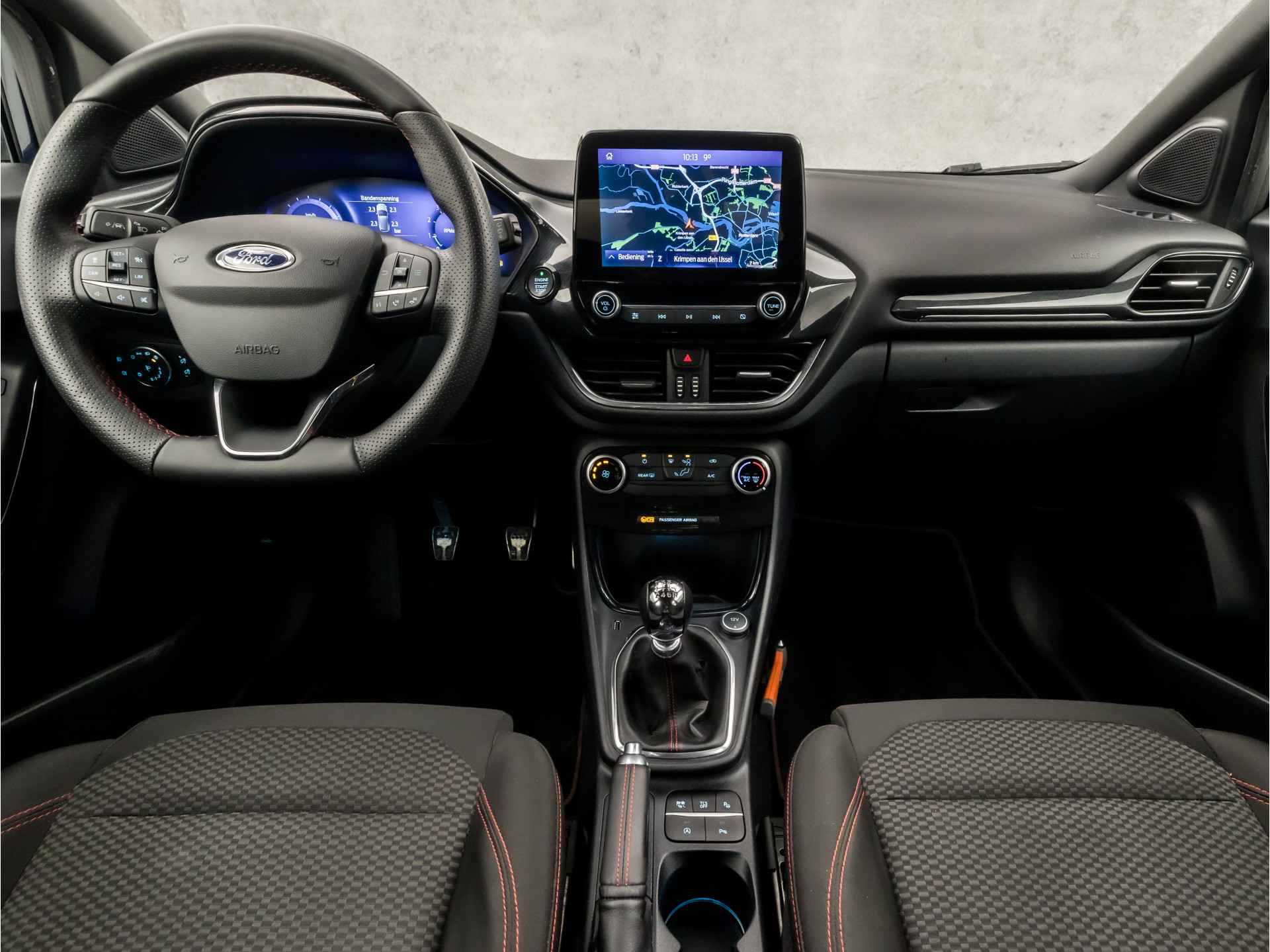 Het digitale dashboard geeft alle up-to-date info en functies voor een slimme en veilige rit. De achteruitrijcamera brengt precies in zicht wat zich achter u bevindt en toont een glashelder beeld op hoge resolutie. Een geluidssignaal waarschuwt hoeveel ruimte u nog heeft. Met adaptive cruise control houdt deze auto automatisch afstand tot uw voorligger. De speciale app verbindt met Connected Services, die de status van vitale functies bijhoudt en waarschuwt als u bijvoorbeeld moet tanken, de bandenspanning moet controleren of olie moet bijvullen. In deze auto beschikt u natuurlijk over een navigatiesysteem. Het audio-installatiesysteem met DAB-radio biedt glasheldere geluidskwaliteit. U bedient dit veilig, via het stuurwiel of met spraakbediening. Ook is de Ford uitgerust met: WIFI-hotspot, achteropkomend verkeer waarschuwing, climate control, draadloos opladen, sportstuurwiel en keyless entry.
