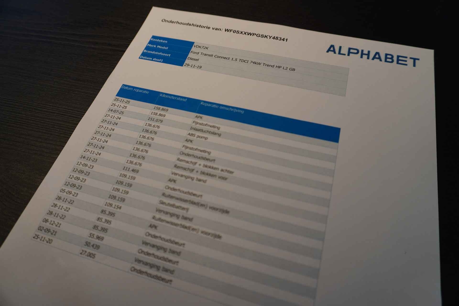 Daarnaast is deze Connect voorzien van een onderhoudshistorie.