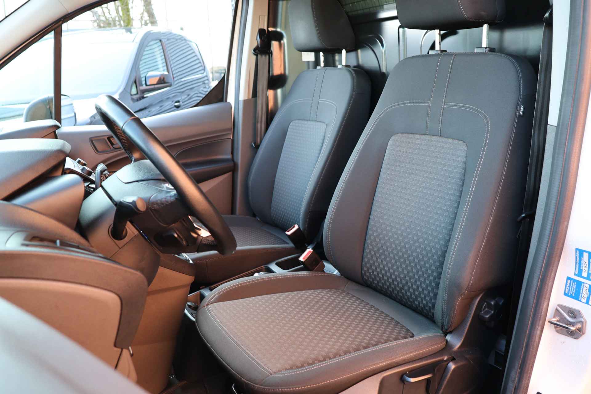 Ook over uw schouder ziet u onderweg niet alles wat er aan de achterzijde gebeurt. Daarom heeft deze Ford Transit Connect een achteropkomend verkeer waarschuwing. Knoppen voor audio-aanpassingen zijn onder direct handbereik met de audiobediening op het stuur. Met de DAB-ontvanger luistert u naar glasheldere digitale radio. De parkeersensoren waarschuwen wanneer u te krap inparkeert of dat ene paaltje niet hebt gezien. Natuurlijk is er ook cruise control aan boord, waarmee u meer ontspannen en zuiniger rijdt. Met airconditioning, centrale deurvergrendeling met afstandsbediening, boordcomputer en verstelbaar stuur is deze auto helemaal compleet.
