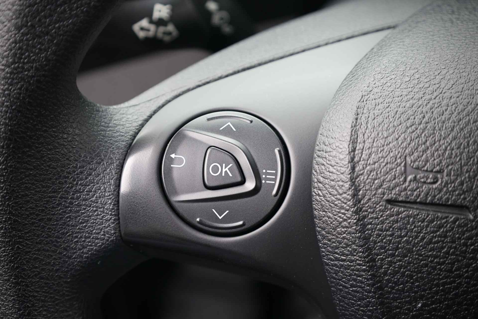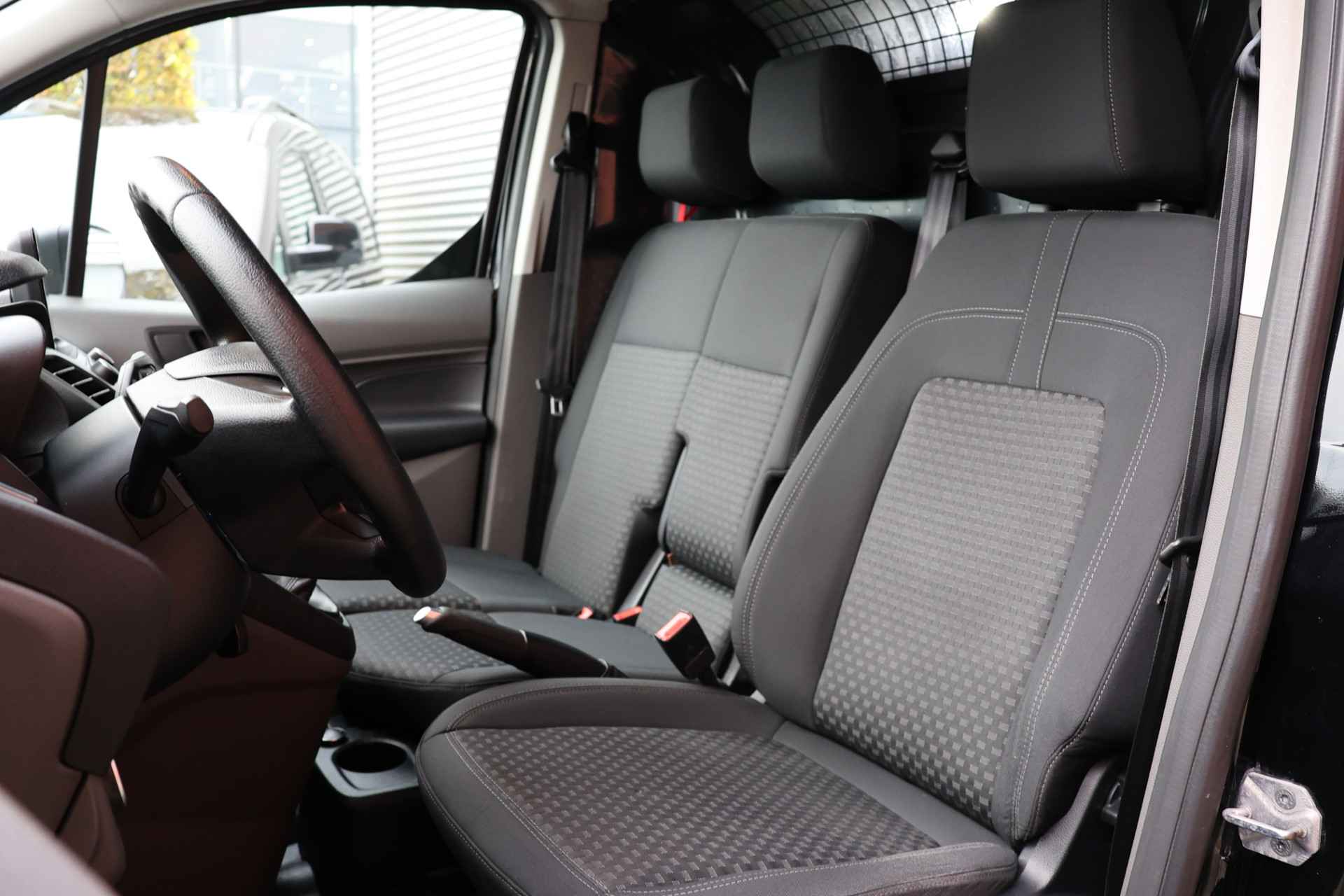 Met de achteruitrijcamera ziet u wat er achter de auto gebeurt. Zo rijdt u moeiteloos achteruit. In deze Transit Connect vindt u niet alleen schakelaars op het stuur om het navigatiesysteem te bedienen en het audio-installatiesysteem met DAB-ontvangst, maar er is ook spraakbediening. Deze auto heeft airconditioning aan boord. En deze auto heeft ook centrale deurvergrendeling met afstandsbediening, boordcomputer en verstelbaar stuur als standaard uitrusting.