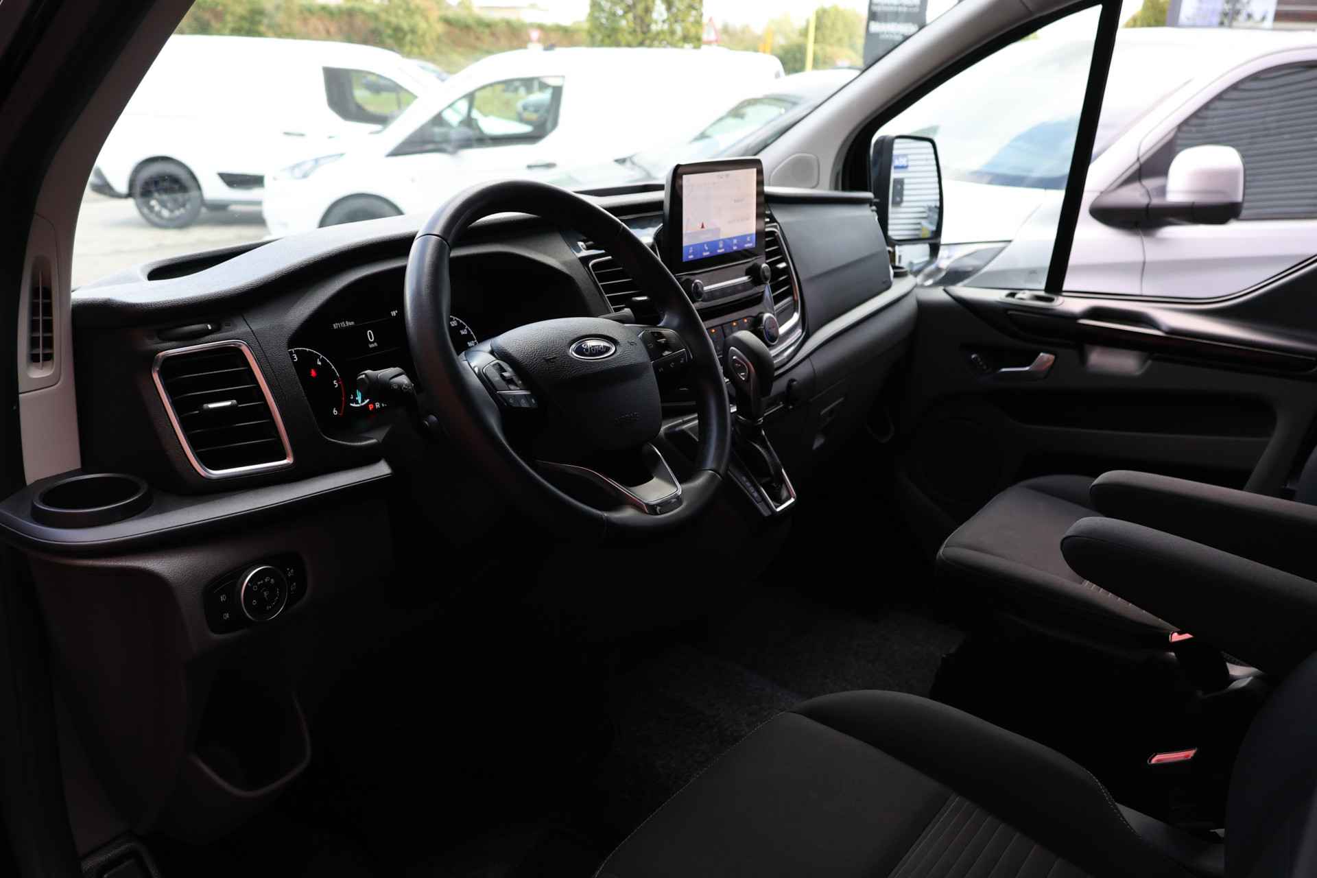 Hij is stijlvol en comfortabel, deze Ford Transit Custom, en hij is ontworpen om u veilig en comfortabel te laten rijden onder alle omstandigheden. De aandrijving van deze Ford wordt verzorgd door een viercilinder dieselmotor en een automatische transmissie. 's Winters komen de verwarmbare voorstoelen heerlijk van pas. De schuifdeur achter is fijn voor in- en uitstappen en de grotere ramen bieden veel meer uitzicht. Bij de rijke uitrusting horen ook 16 inch lichtmetalen velgen, LED-dagrijverlichting, trailer assistent, donker getint glas achter en verstelbare lendensteunen.