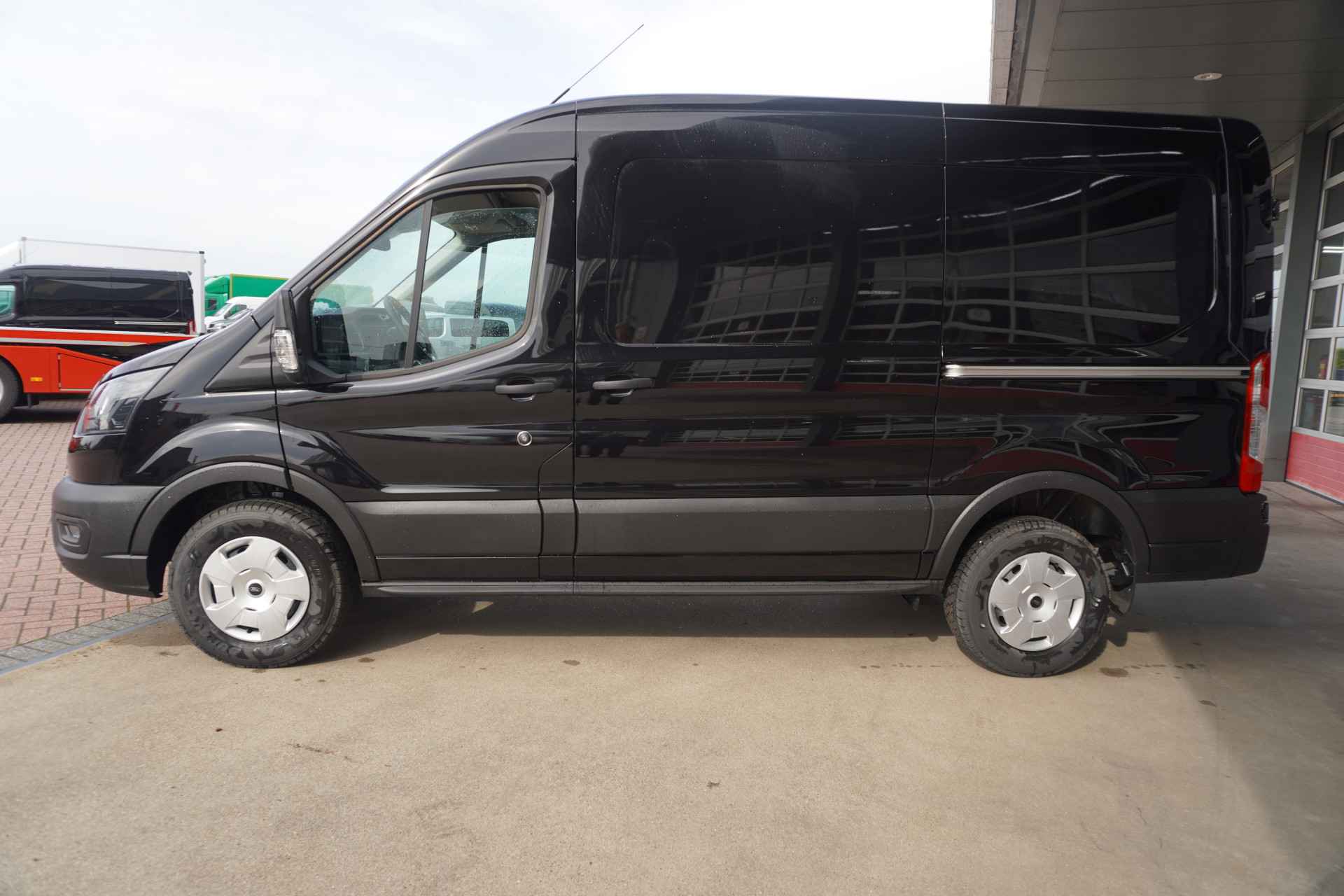 Kleur Zwart 4 op voorraad, Facelift model Go Further, een kreet die bij u past? Dan is deze Ford zeker een nadere blik waard! Met zijn dieselmotor en automatische transmissie is dit een prima auto voor nog vele kilometers. Onverhoeds de deur opengooien is een risico voor passerend verkeer. De schuifdeur aan de zijkant is dus gemakkelijker én veiliger. U zult verrukt zijn van de digitale wereld van mobiliteit; het digitale dashboard projecteert alles wat u nodig heeft om uw rit aangenaam en veilig te maken. Nooit meer problemen bij achteruitrijden of inparkeren. De achteruitrijcamera houdt alles in de gaten! Zoals u van zo'n jonge auto mag verwachten, zijn hier ook de geavanceerde remote services aanwezig. Simpelweg met een app op uw smartphone controleert u op afstand de status van de auto en bedient u diverse functies. Altijd en overal verbonden: dat kan dankzij de ingebouwde WIFI-hotspot. De automatische airconditioning zorgt onder alle omstandigheden voor een prettige temperatuur. Ook WIFI-hotspot, DAB ontvangst, regensensor, cruise control, lederen stuur en centrale deurvergrendeling met afstandsbediening zijn aan boord. De intelligente veiligheidssystemen in deze auto waken continu over uw veiligheid. De actuele snelheidslimiet, een inhaalverbod en andere verkeersborden. De verkeersborddetectie ondersteunt u tijdens elke rit. Het Lane-keeping systeem garandeert dat u zich niet onverhoeds buiten de lijnen van de rijstrook begeeft. De sensor van het forward collision warning-systeem registreert permanent de afstand tot voorliggers en grijpt in als een botsing dreigt. Ook helpen het hill hold functie, autonoom remsysteem en bandenspanningcontrolesysteem, uw rit tot een veilige rit te maken. Wilt u deze auto zelf ervaren? Neem dan contact op met een van onze medewerkers. U rijdt gemakkelijk, comfortabel en zonder zorgen met deze Ford Transit. Hij heeft een dieselmotor en een automatische transmissie. Zelfs bij weinig parkeerruimte krijgen passagiers via de schuifdeur voldoende mogelijkheid om in en uit te stappen. Het digitale dashboard is qua lay-out en zichtbaarheid superslim ingedeeld. Alle functies in één keer in beeld! Parkeer en kijk niet om! De achteruitrijcamera doet dat voor u. Communiceren met uw auto? Dat gaat via remote services. Met uw smartphone maakt u waar dan ook contact om allerlei functies te checken of te activeren. Gemakkelijk en veilig is de spraakbediening voor het audiosysteem. Daarbij kunt u het ook bedienen met de knoppen op het stuur. Met automatische airconditioning hoeft u alleen de gewenste temperatuur in te stellen. Het systeem doet de rest. En deze auto heeft ook WIFI-hotspot, regensensor, cruise control, lederen stuur, centrale deurvergrendeling met afstandsbediening en boordcomputer als standaard uitrusting. Als bestuurder van deze Ford bent u nooit alleen. U wordt onderweg bijgestaan door technologische hulpmiddelen die samen met u de weg in de gaten houden. Als het nodig is, grijpen ze zelfs in, door te remmen of bij te sturen. Een belangrijke bijdrage aan de veiligheid onderweg levert de verkeersbord-detectie. Indien u onbedoeld de rijstrook lijkt te verlaten, reageert het Lane-keeping systeem meteen en corrigeert. Forward collision warning waarschuwt bij een dreigende aanrijding en vermindert de gevolgen van een ongeval. De veiligheid van deze auto wordt verder verhoogd door hill hold functie, autonoom remsysteem en bandenspanningcontrolesysteem. Wilt u met deze Ford Transit een proefrit maken? Bel of mail ons dan nu voor een afspraak.