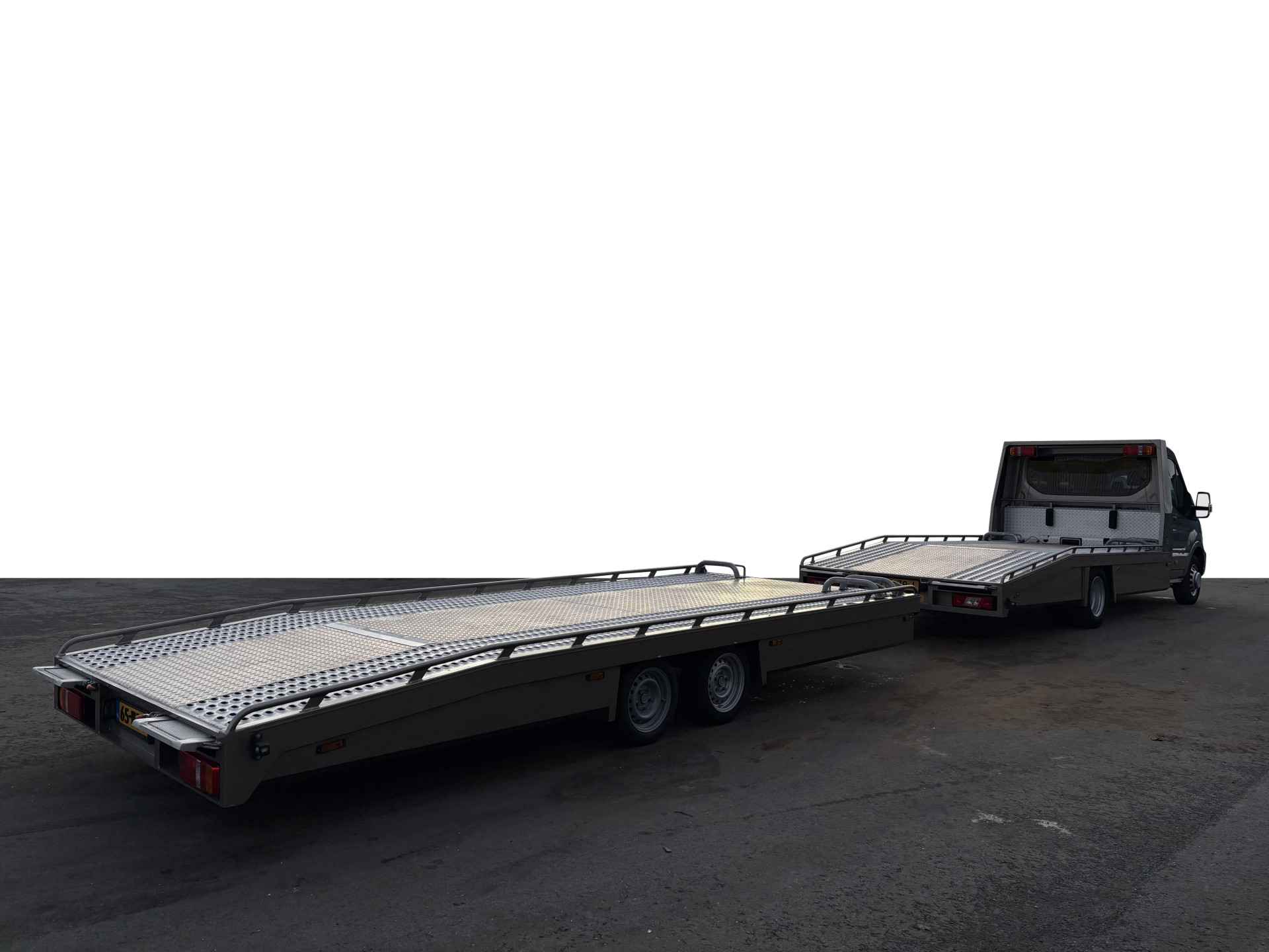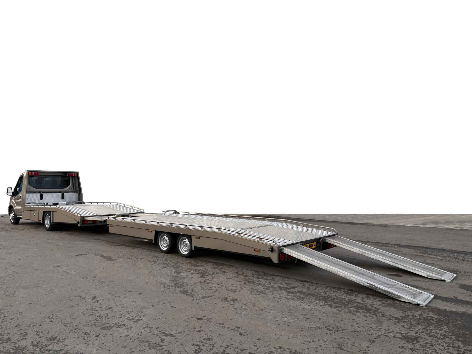 Zeer nette oprijwagen met een keurige aanhanger die allebeide nog in nieuwstaat verkeren!!
