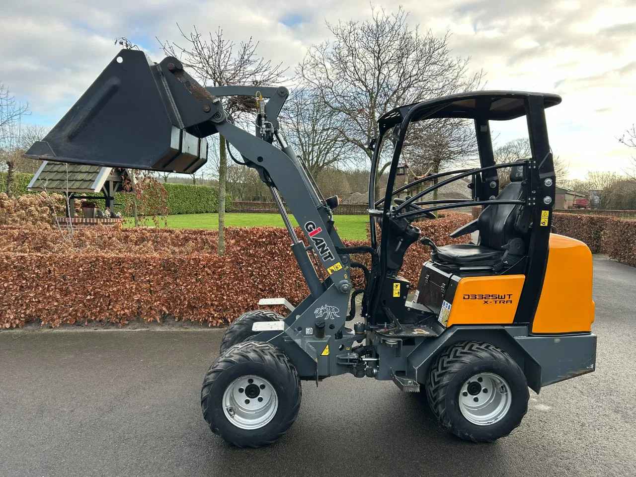 Mooie Giant D 332 SWT X-tra -met hydraulische snelwissel -met extra functie op de mast -met werkverlichting -met trekhaak -met bak -met palletlepels -met kenteken Prijs is ex. btw. Inruil mogelijk van o.a.: Weidemann, Giant, Schaffer, Knikmops, Fuchs, Kubota, Bobcat, JCB, Takeuchi, Wacker Neuson, enz.