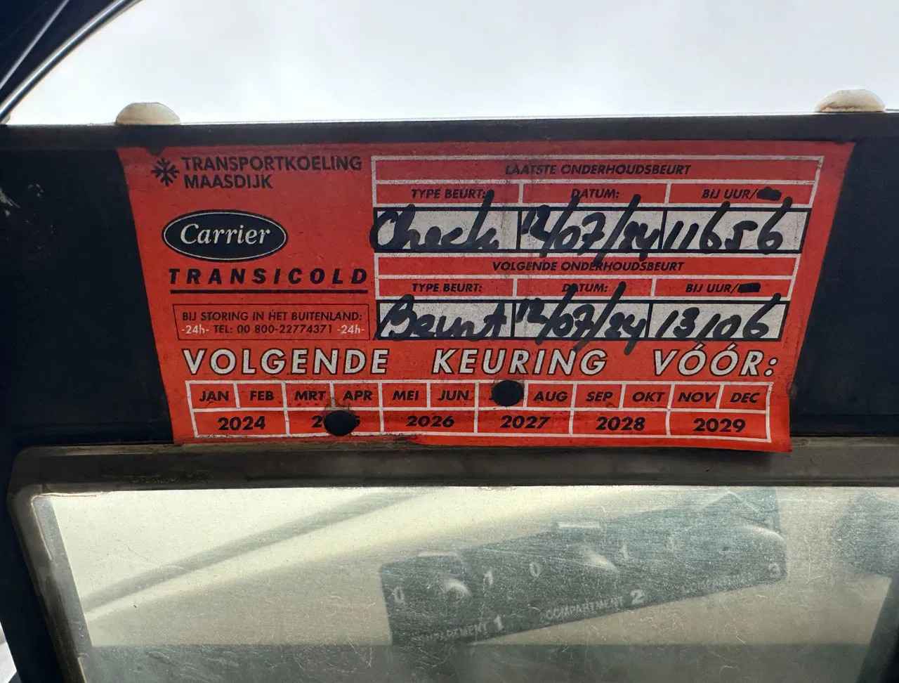 AFMETINGEN INWENDIG: LINKS (grote deel) = 161 cm breed RECHTS (kleine deel) = 84 cm breed HOOGTE onder schot = 220 cm Merk koel unit: Carrier